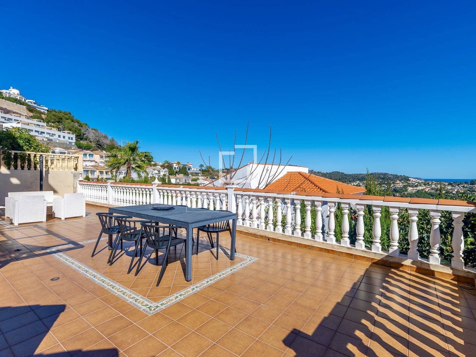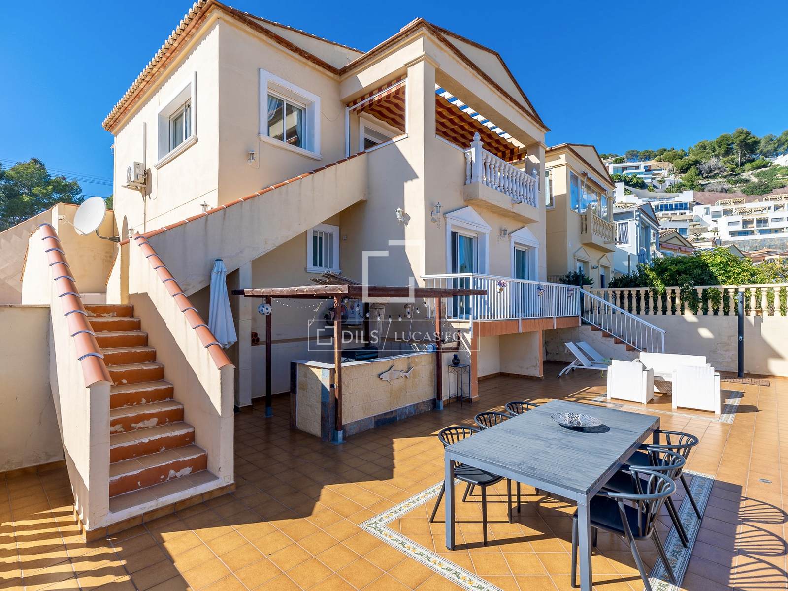 Discover this detached villa located in Calpe, on the Costa Blanca. The property offers a comfortable and bright layout , with well-connected spaces and pleasant open views that include the sea on the horizon, providing a feeling of spaciousness and tranquility.