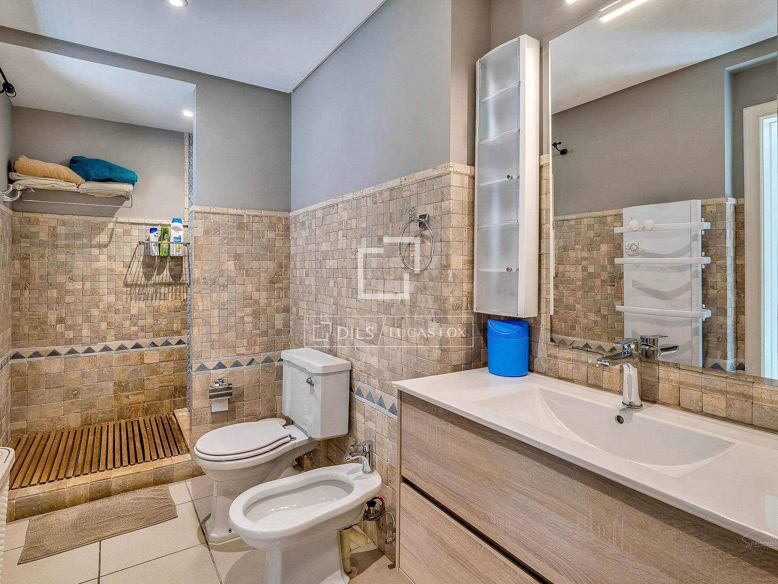 The lower level is designed as a guest area and offers two independent access points: one from inside the main house and another directly from the garden. It comprises three additional bedrooms, a bright living room, a shower room, a kitchen, and access to a charming enclosed lounge. This level also includes a large storage room with a laundry area.