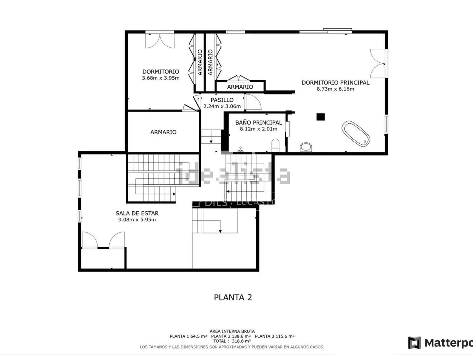 - Main bedroom with built-in wardrobes, walk-in wardrobe, bathroom en-suite and outdoor terrace access