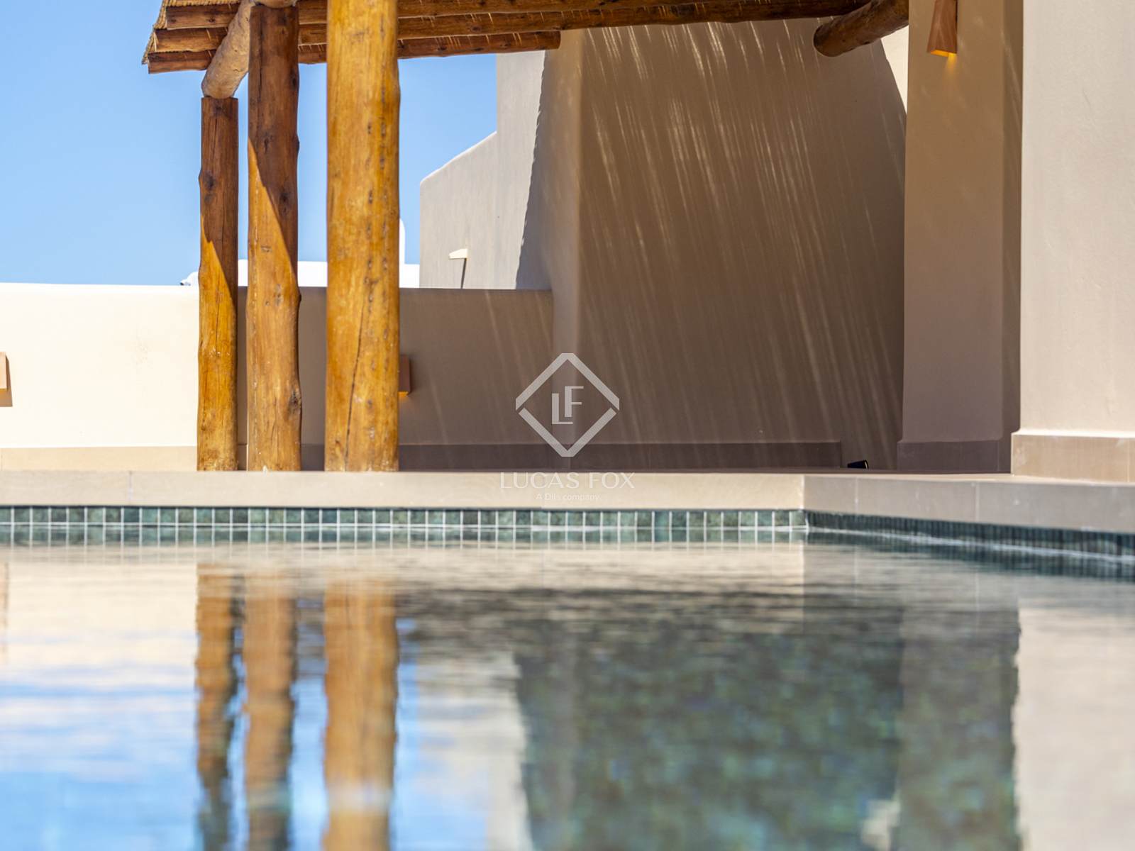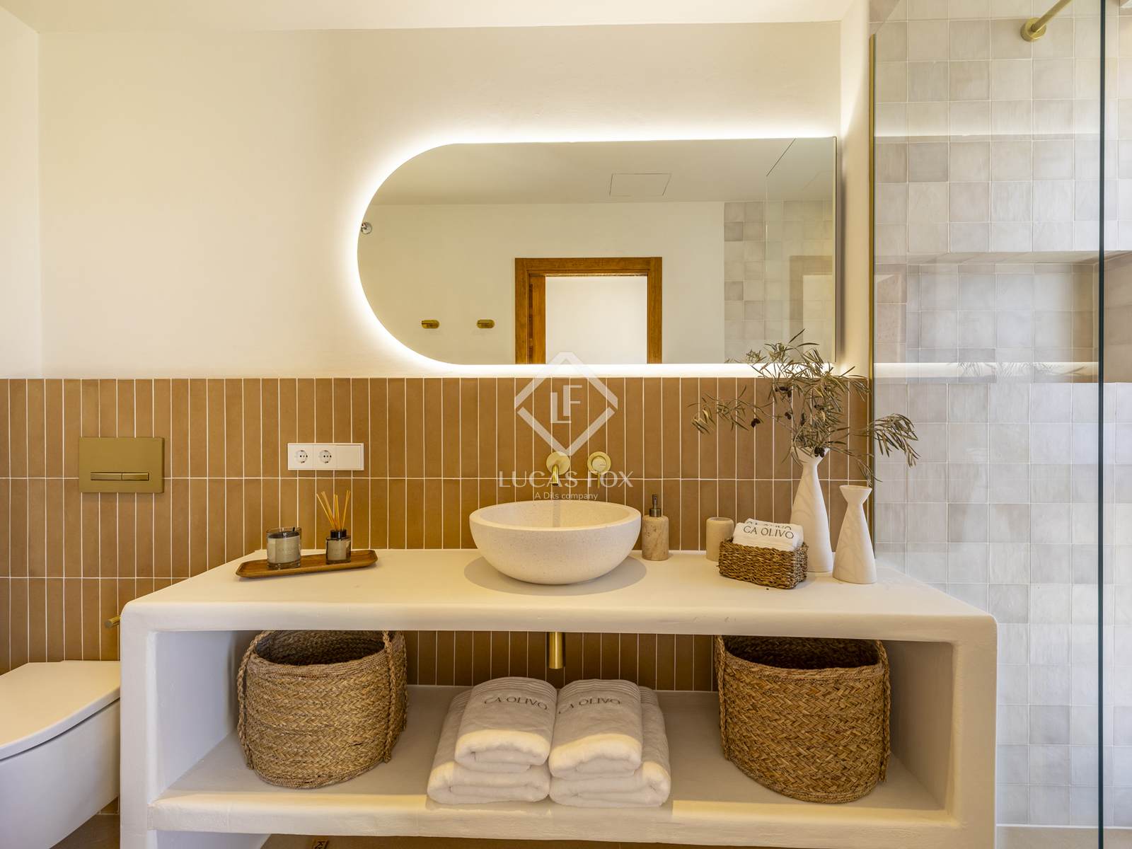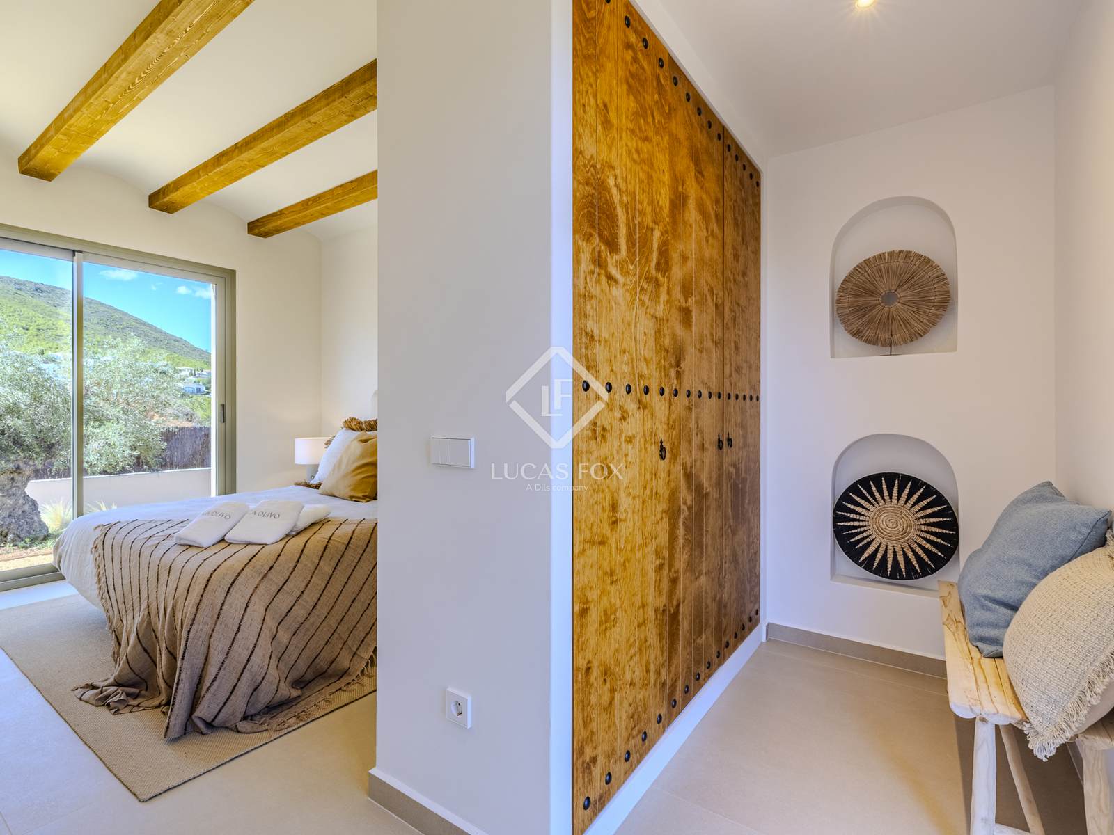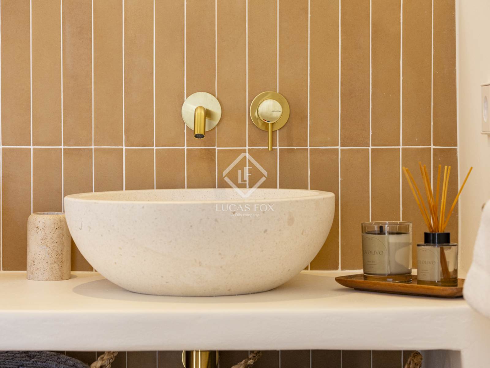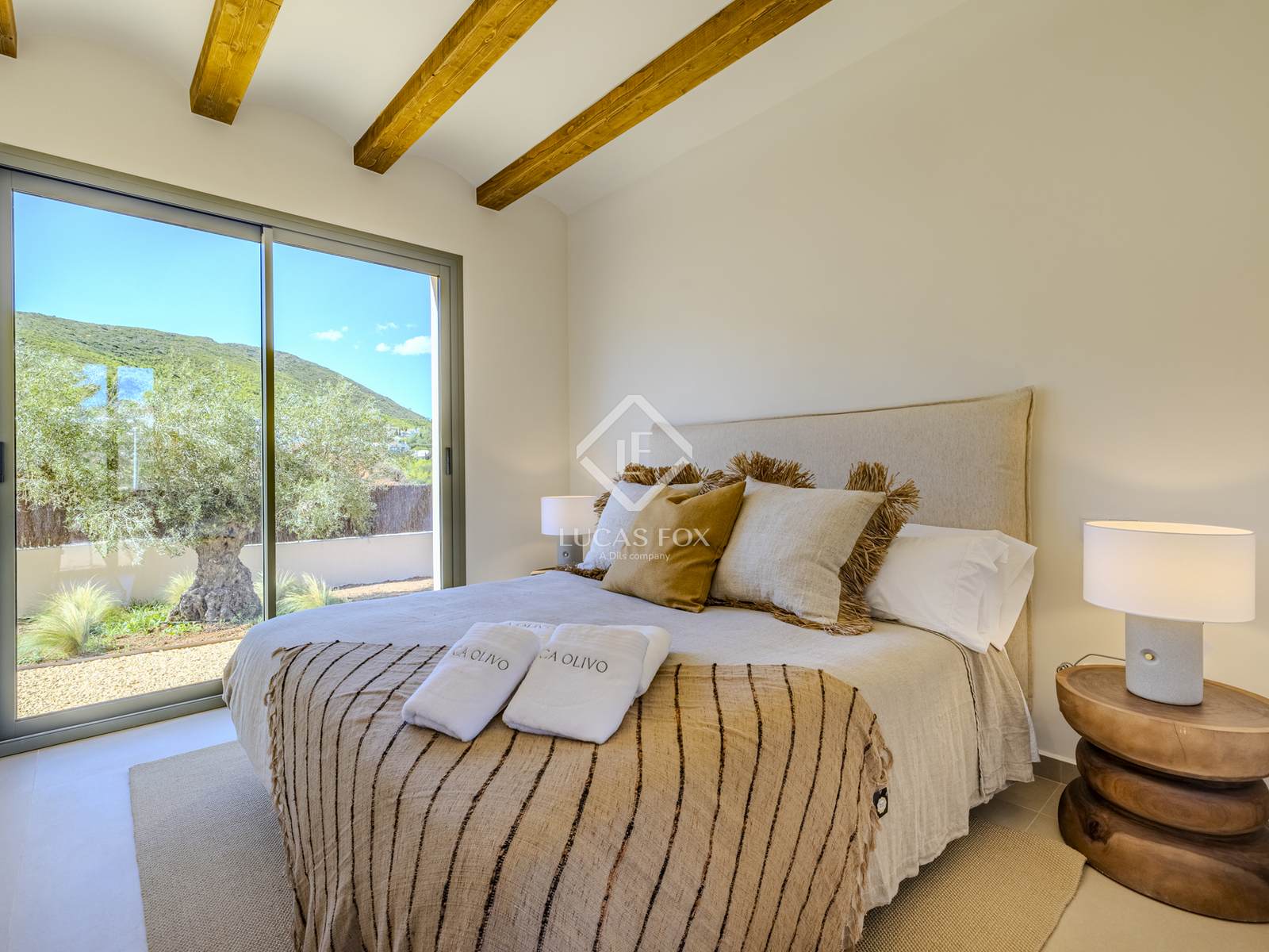 The construction of Ca Los Olivos, has a southwest orientation. Inspired by Mediterranean and Ibiza styles, it is characterized by its rounded corners, exposed beams, and vaulted ceilings adorned with beams, echoing the curves of the Mediterranean landscape. Its clay tile roof and large windows equipped with shutters ensure optimal natural light, making this home a haven of tranquillity.