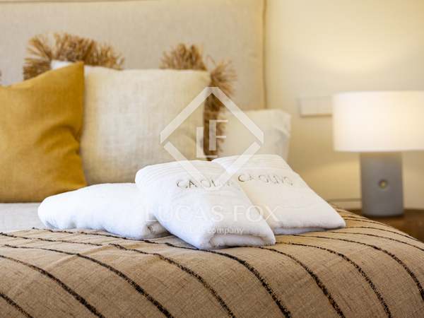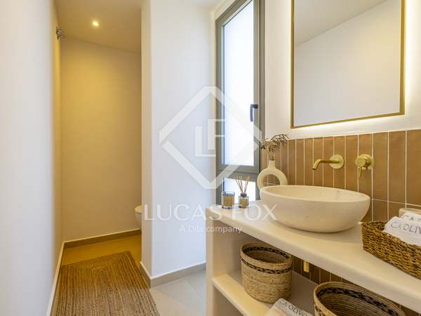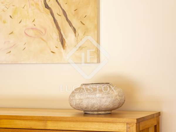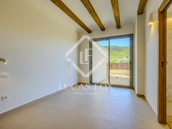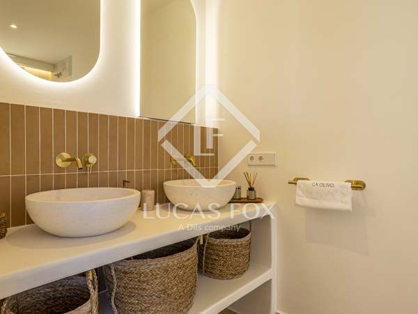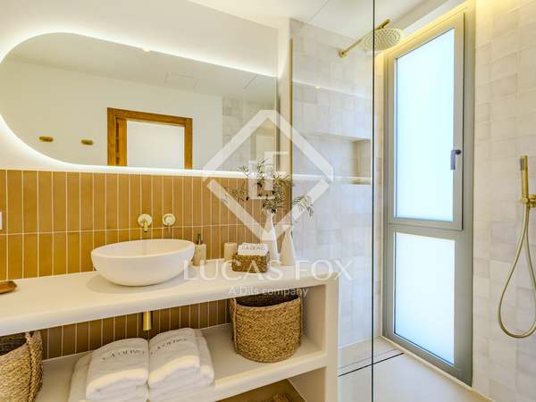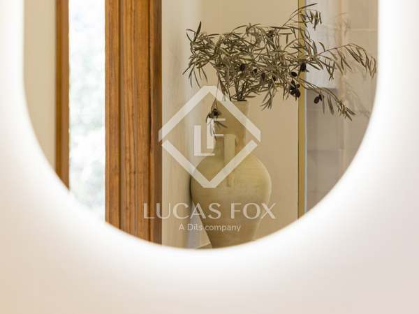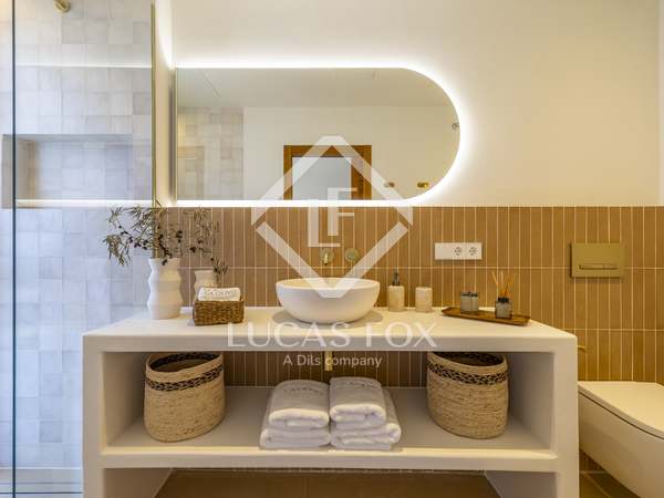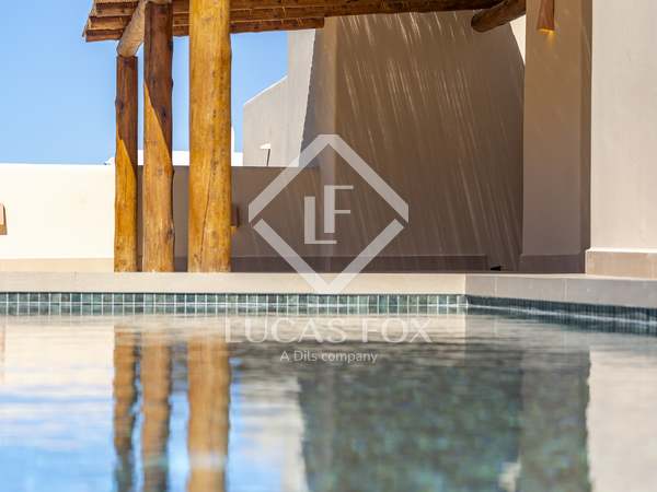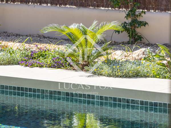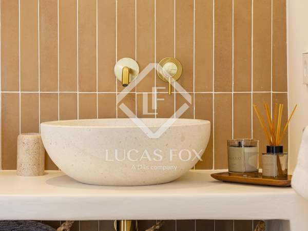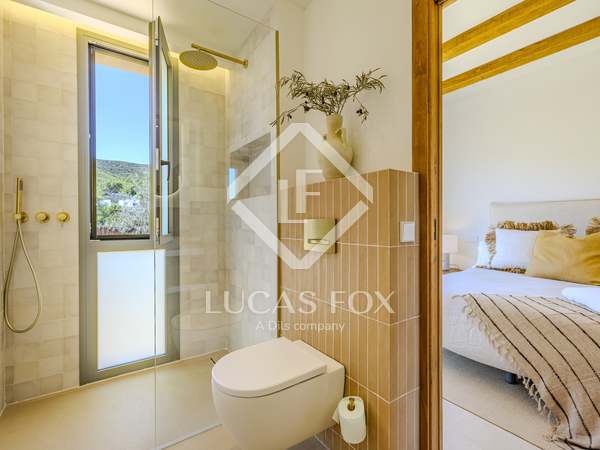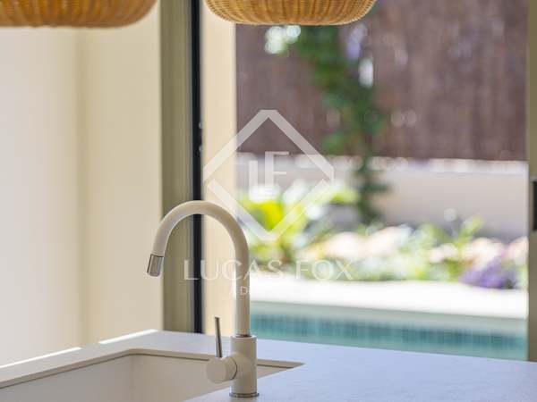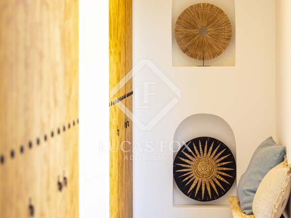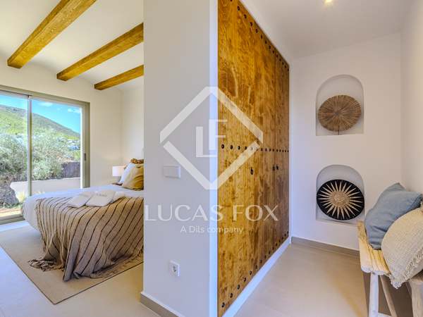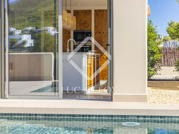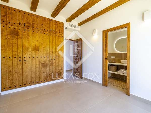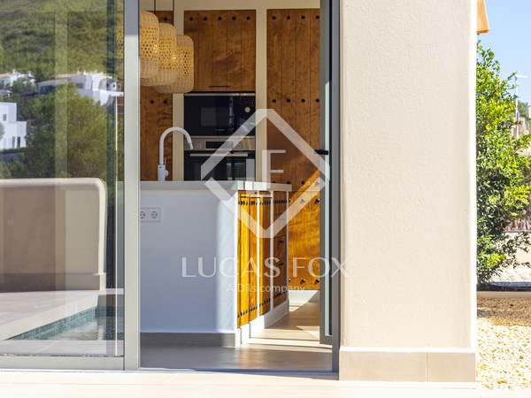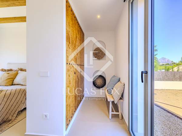 The property benefits from three metre high ceilings, creating a bright and airy ambiance throughout the home. To the right of the hallway lies a stylish dining room and to the left, a comfortable and refined living room with a wood burning fireplace. These elegant areas are bathed in natural light thanks to large windows, with both spaces offering beautiful views towards the bay of Javea. The fully equipped kitchen, benefits from a central island and top of the range appliances from Siemens and Bosch. You can enjoy direct access out to a covered terrace with outdoor dining area, adjacent to the pool terrace, ideal for all year-round al fresco living. From the kitchen, a hallway leads you to a double bedroom with built-in wardrobes and a separate bathroom. The main bedroom is located at the end of the hallway and enjoys a walk-in wardrobe, bathroom en-suite and direct access out to the pool terrace. The serene covered terrace outside the master bedroom is ideal for a morning coffee or evening cocktail.