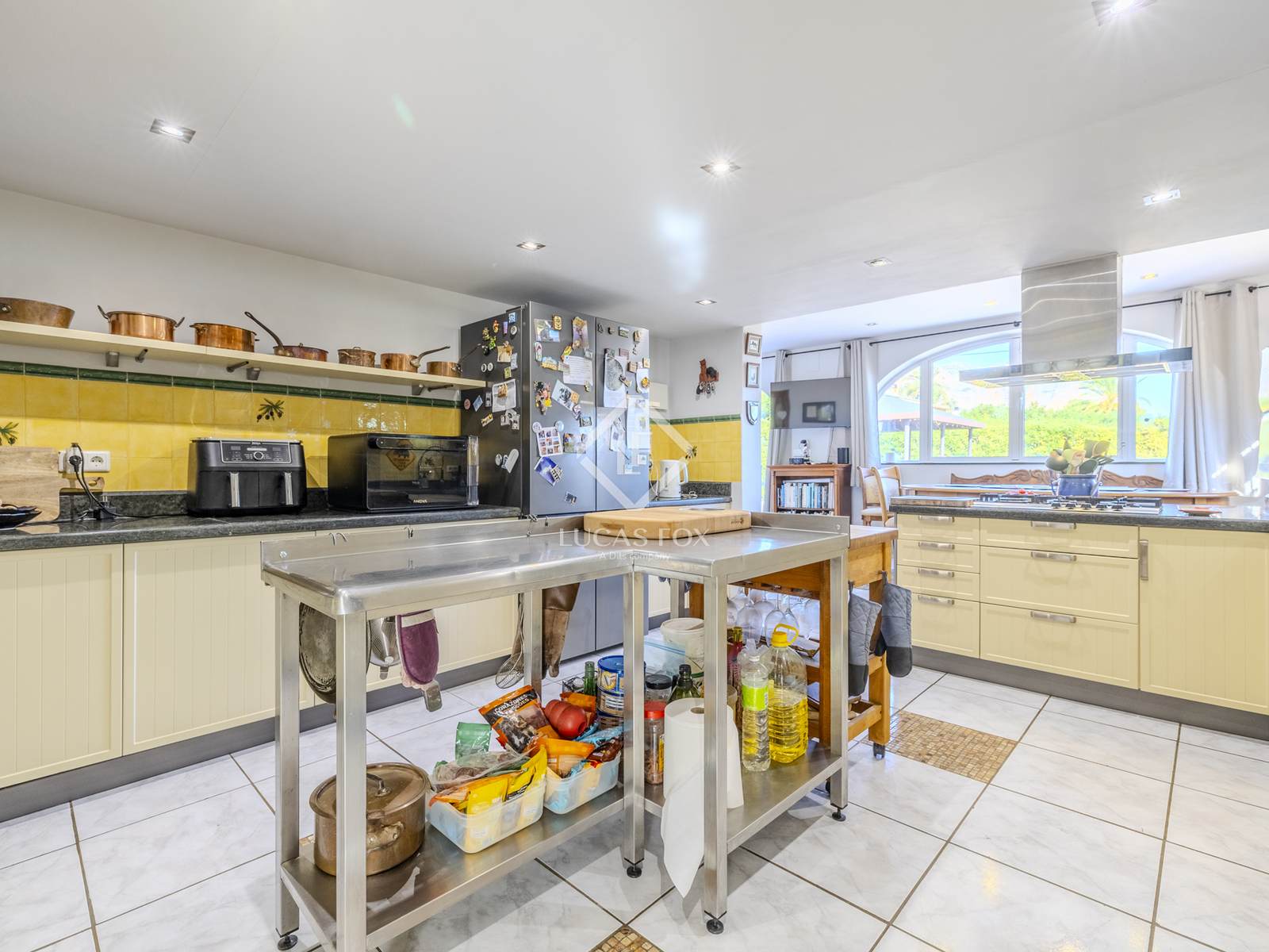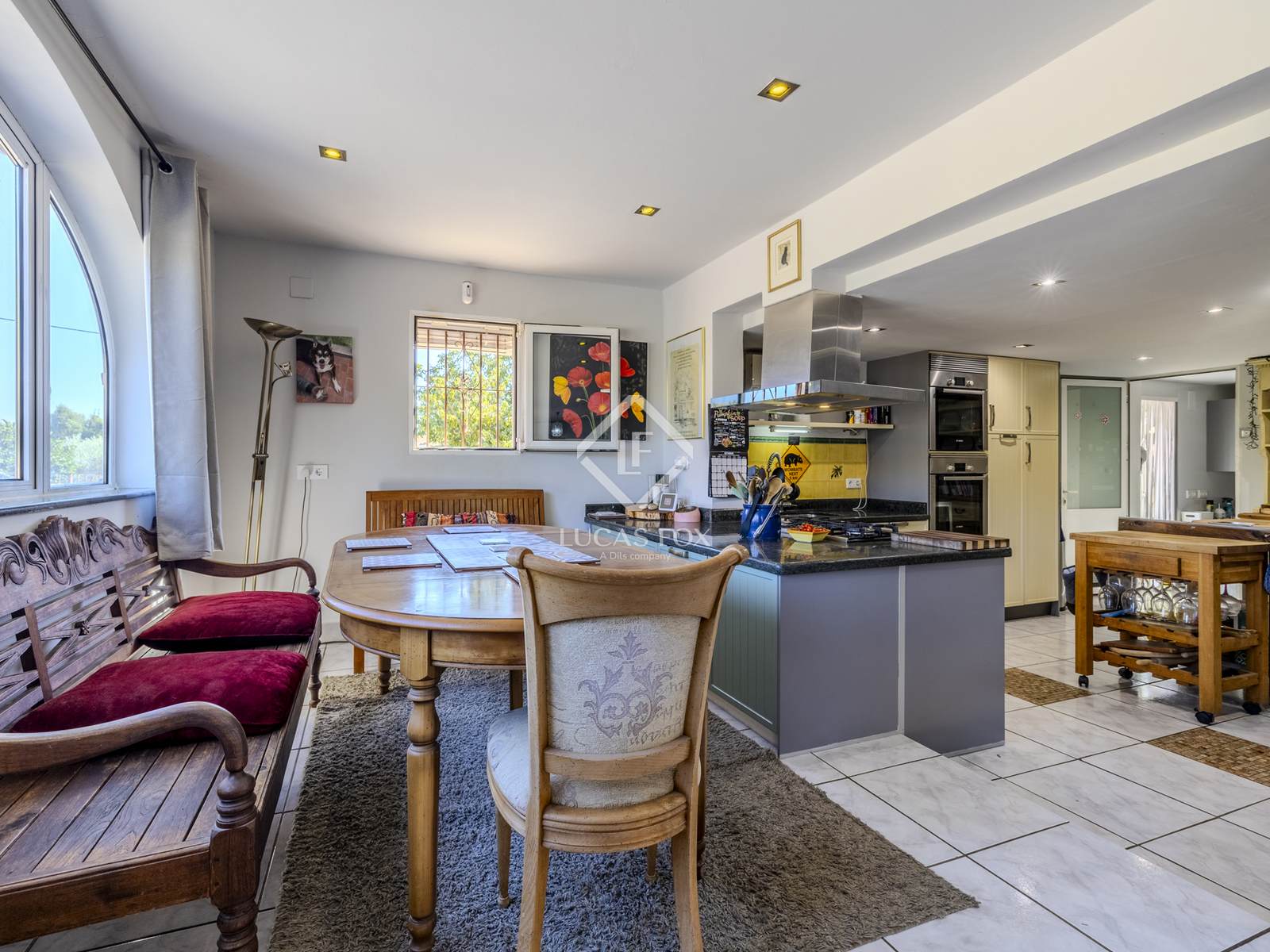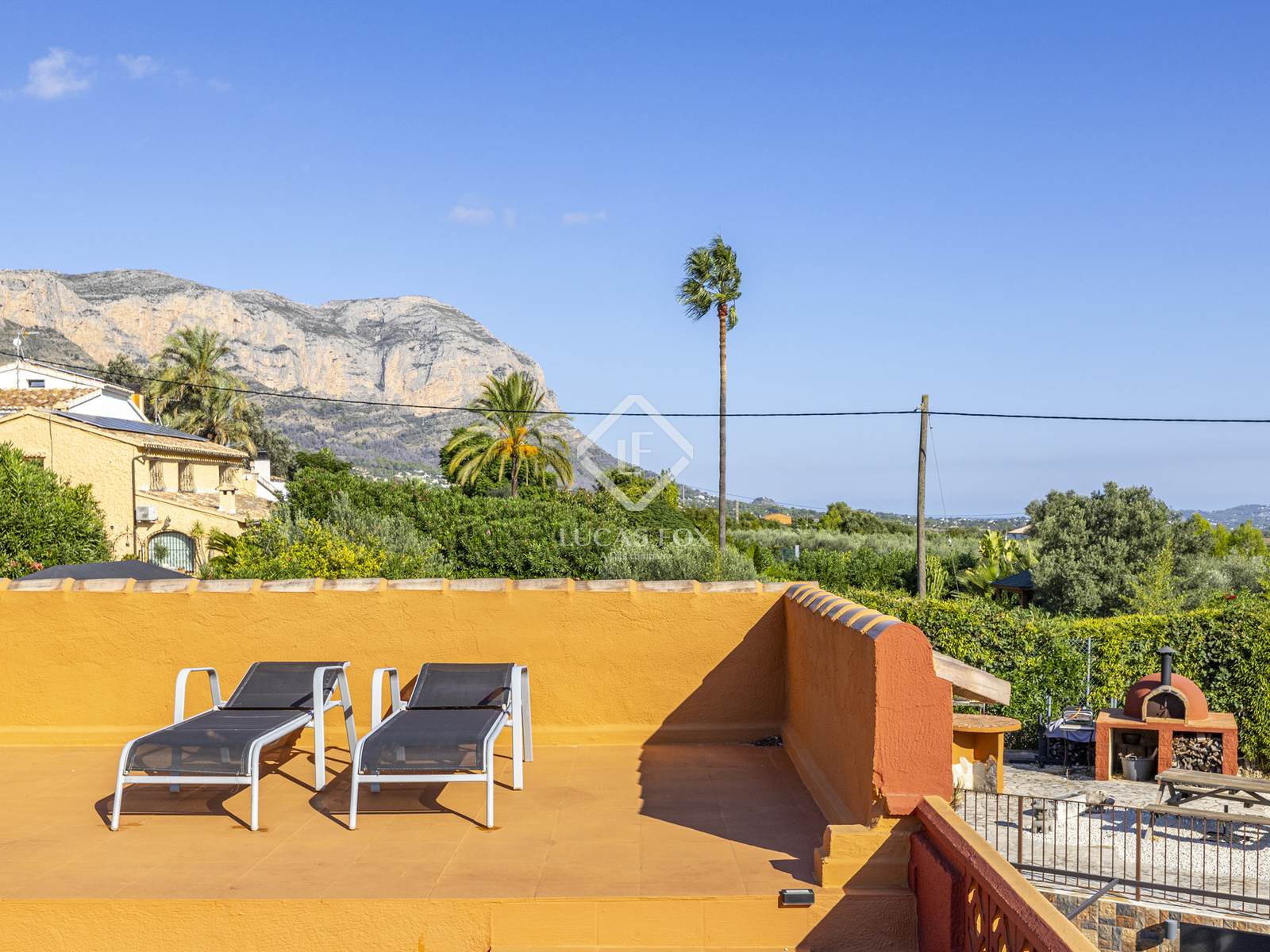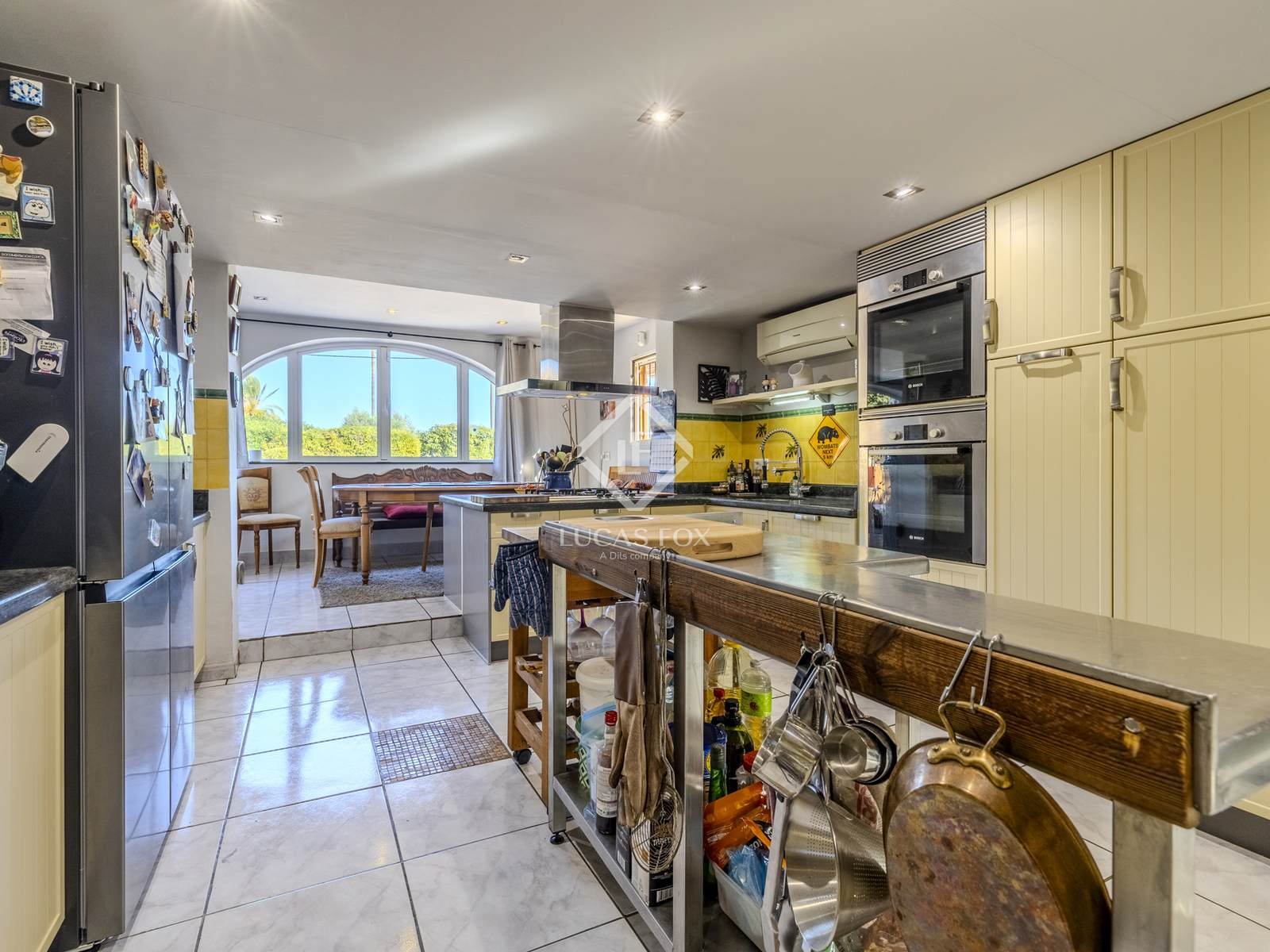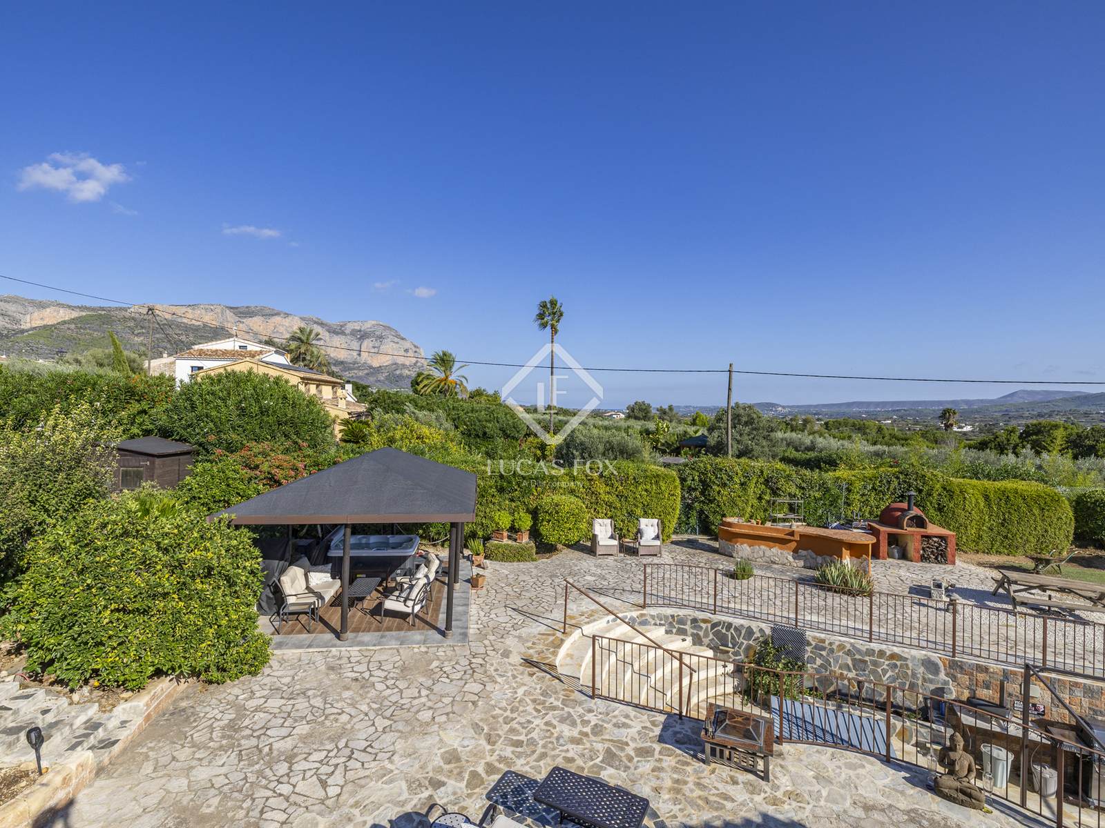 The west-facing porch, the perfect spot for evening apéritifs, sets the tone. Inside, the living room impresses with high ceilings and a pellet burner, onto the spacious open-plan kitchen, dining, and living area boasts expansive windows framing Montgó mountain, while the professionally equipped kitchen and large utility room cater to both home chefs and entertainers.