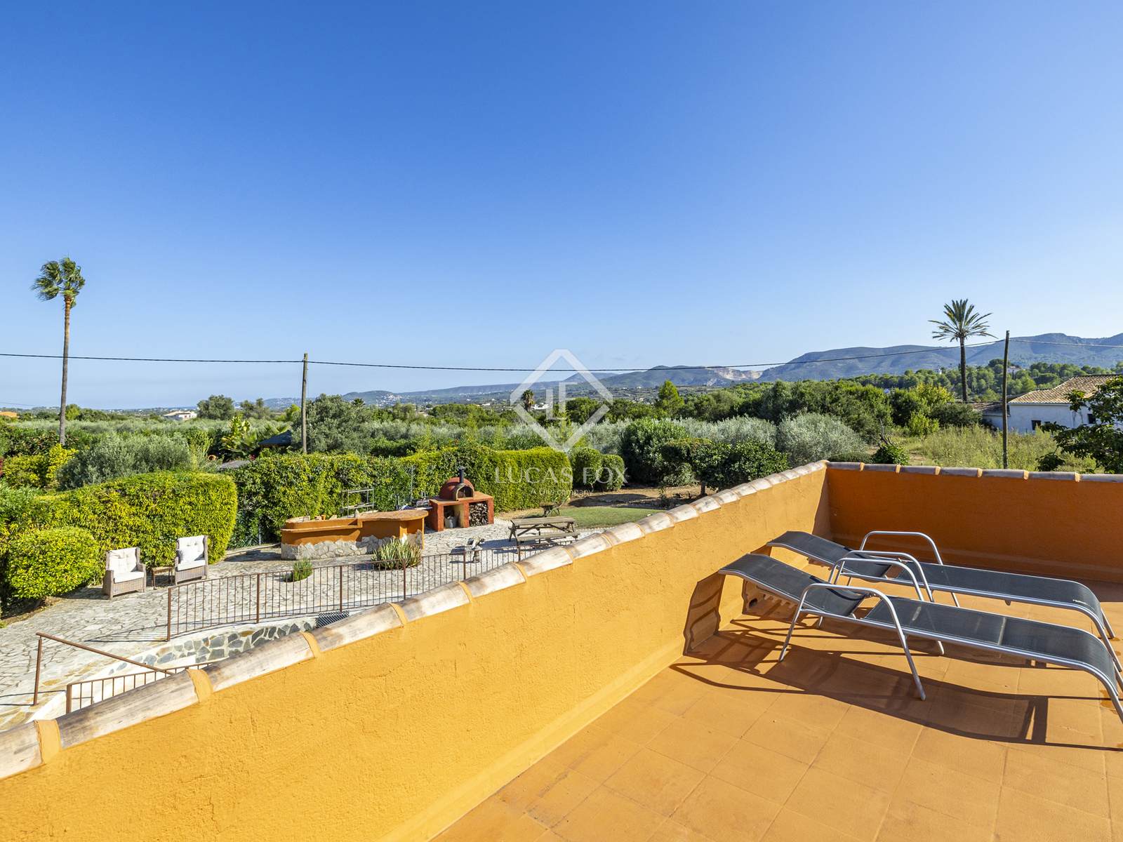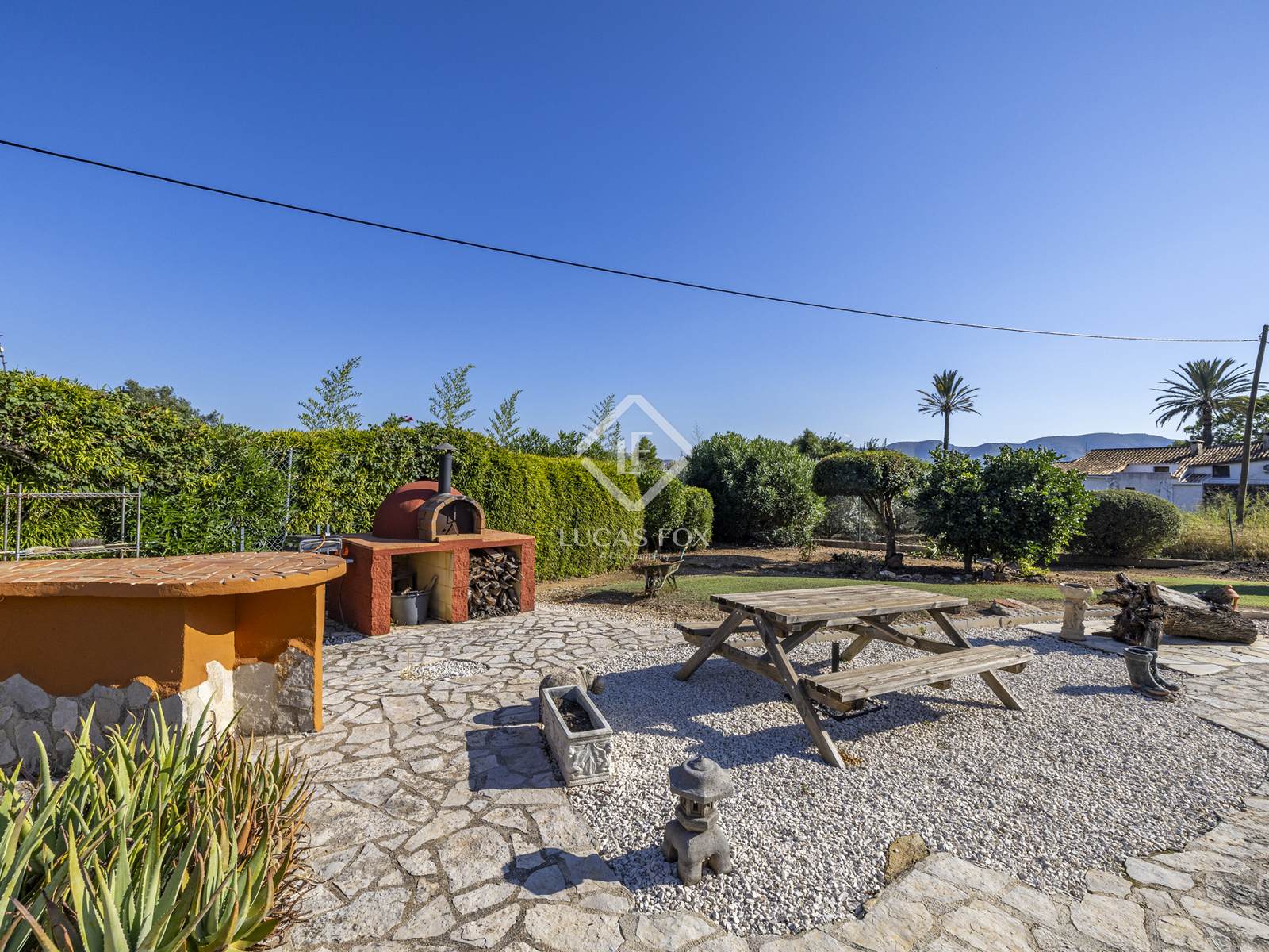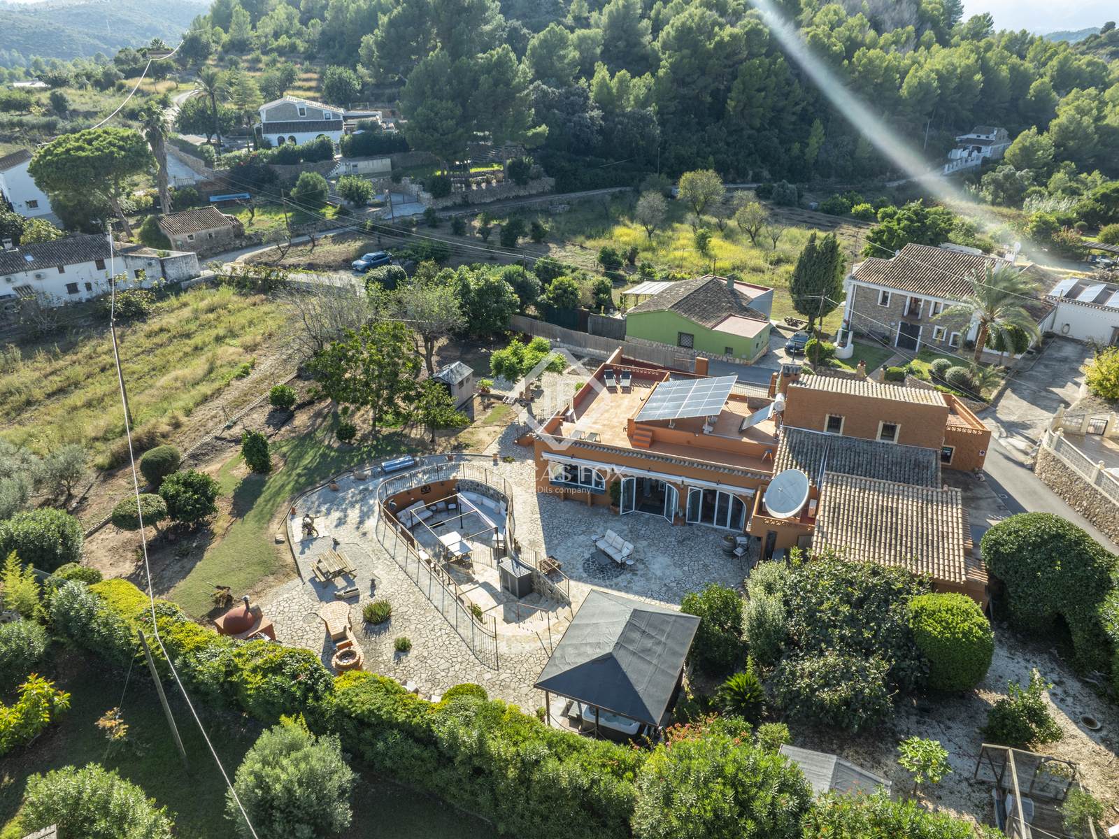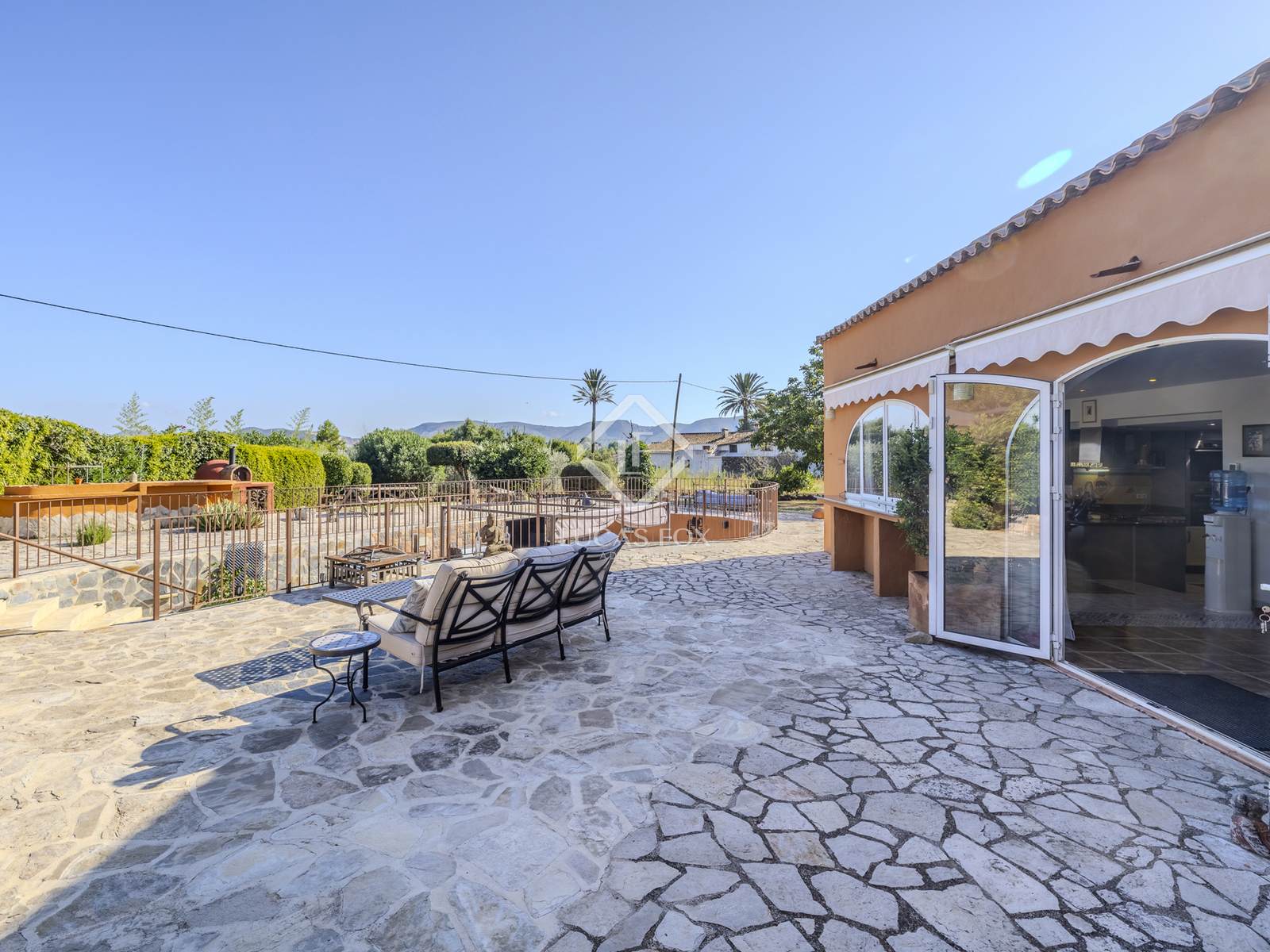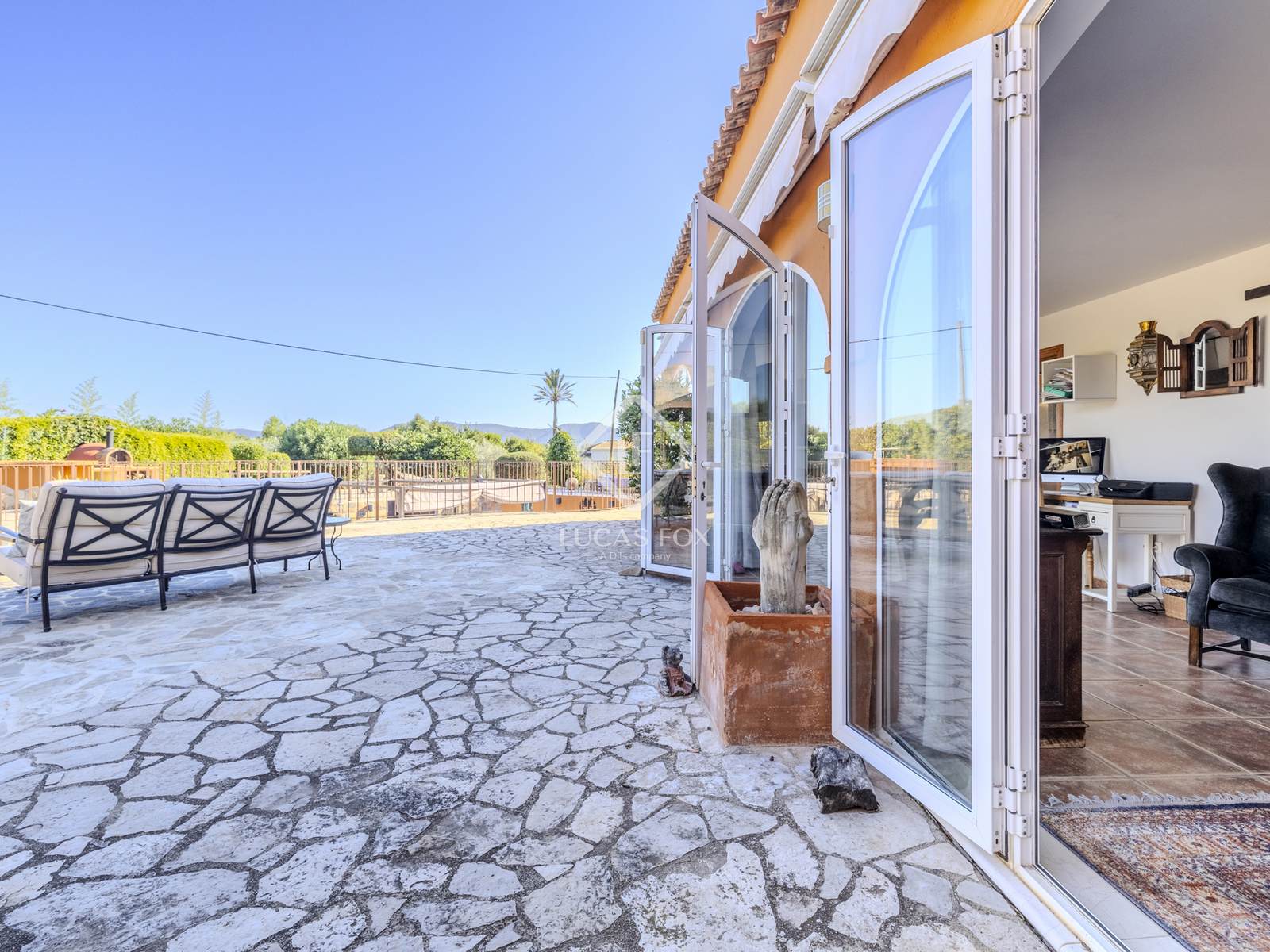 The west-facing porch, the perfect spot for evening apéritifs, sets the tone. Inside, the living room impresses with high ceilings and a pellet burner, onto the spacious open-plan kitchen, dining, and living area boasts expansive windows framing Montgó mountain, while the professionally equipped kitchen and large utility room cater to both home chefs and entertainers.