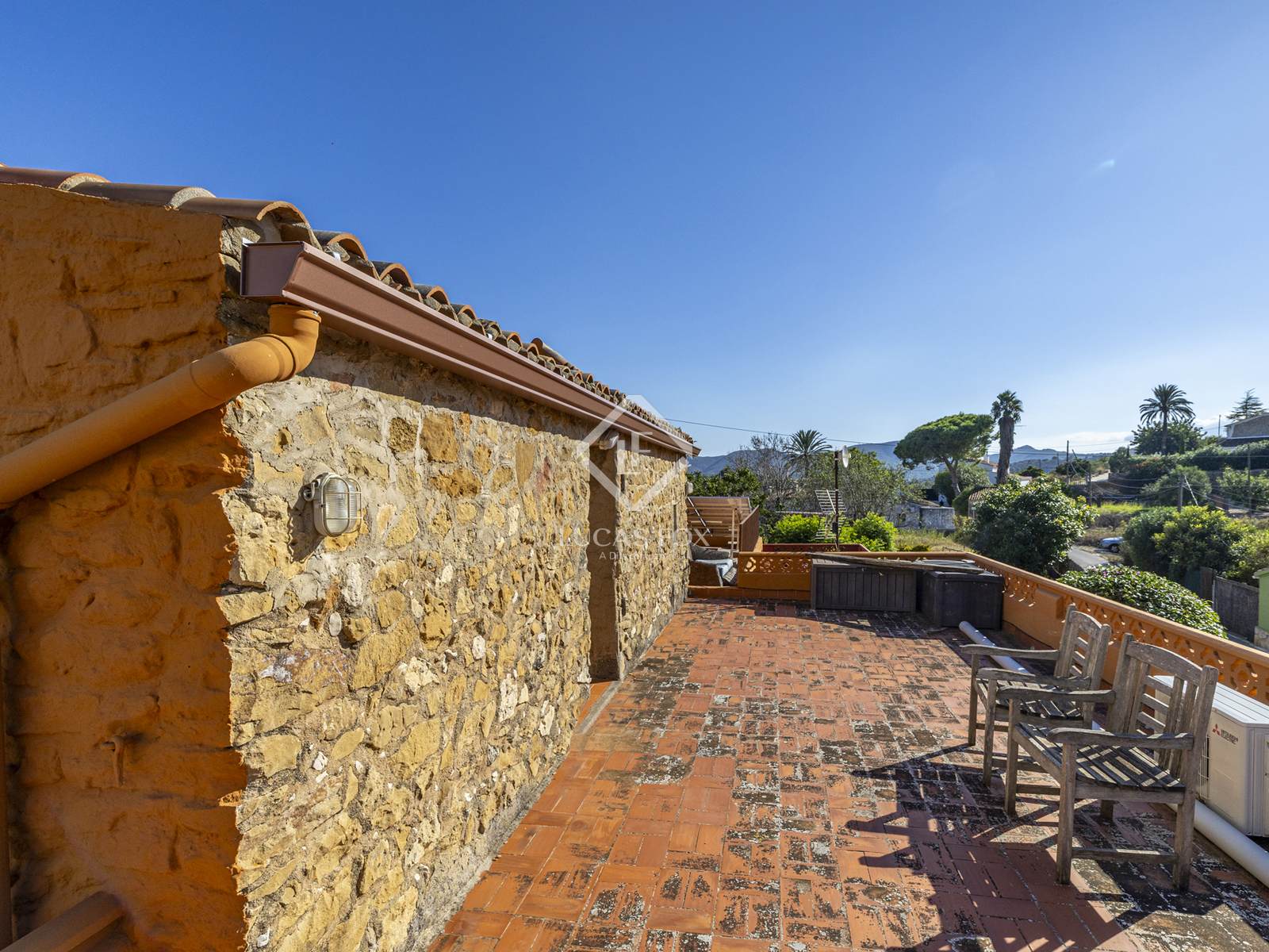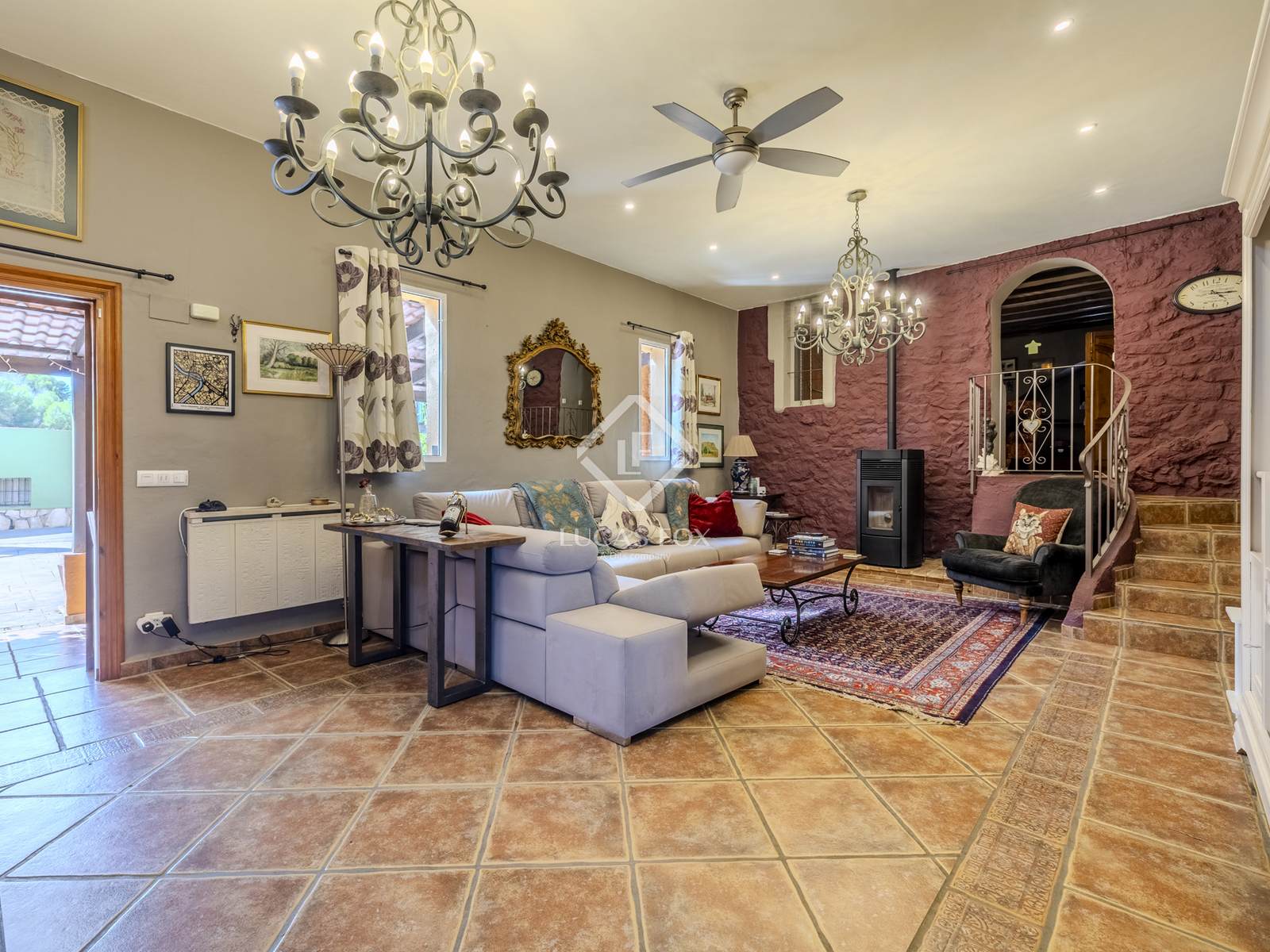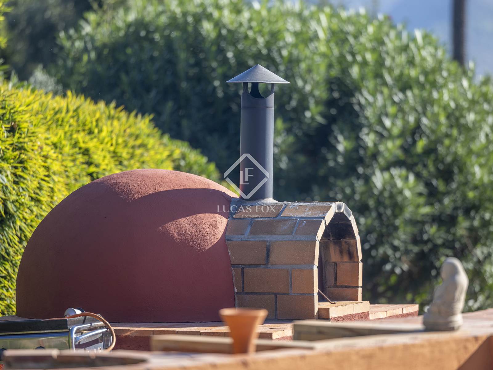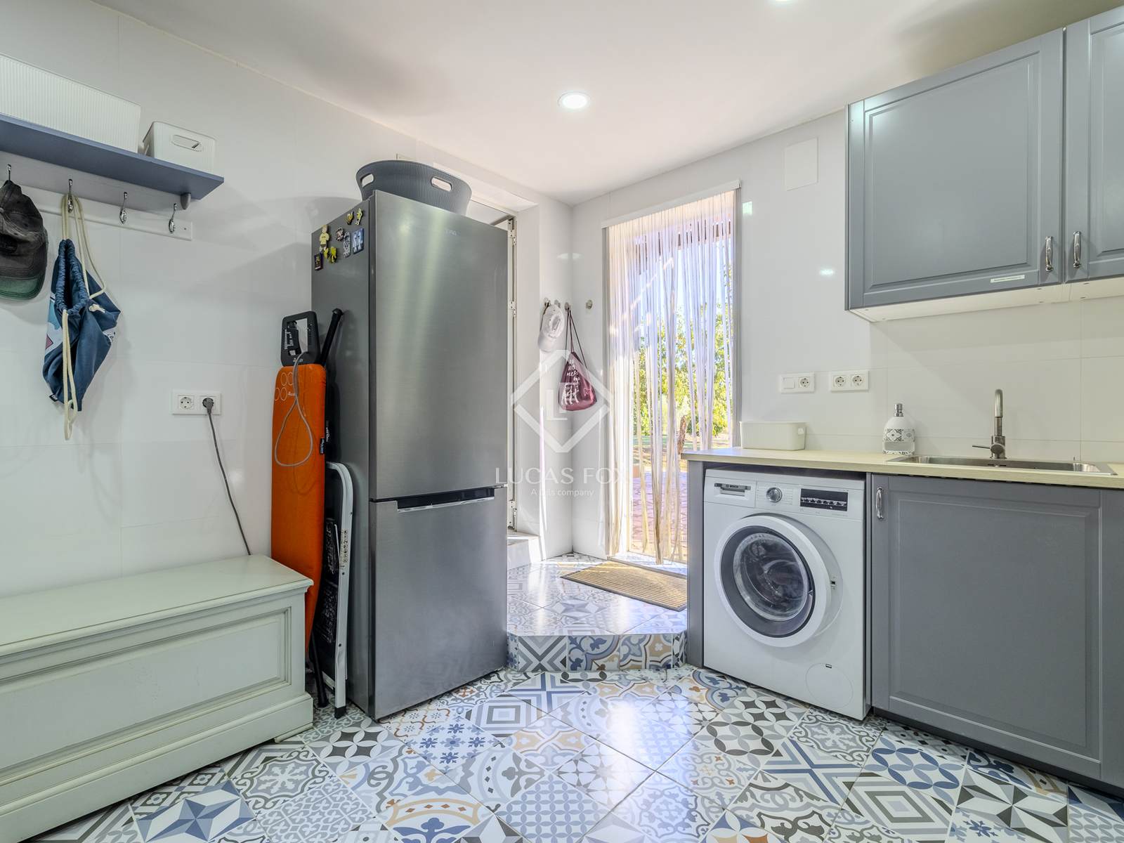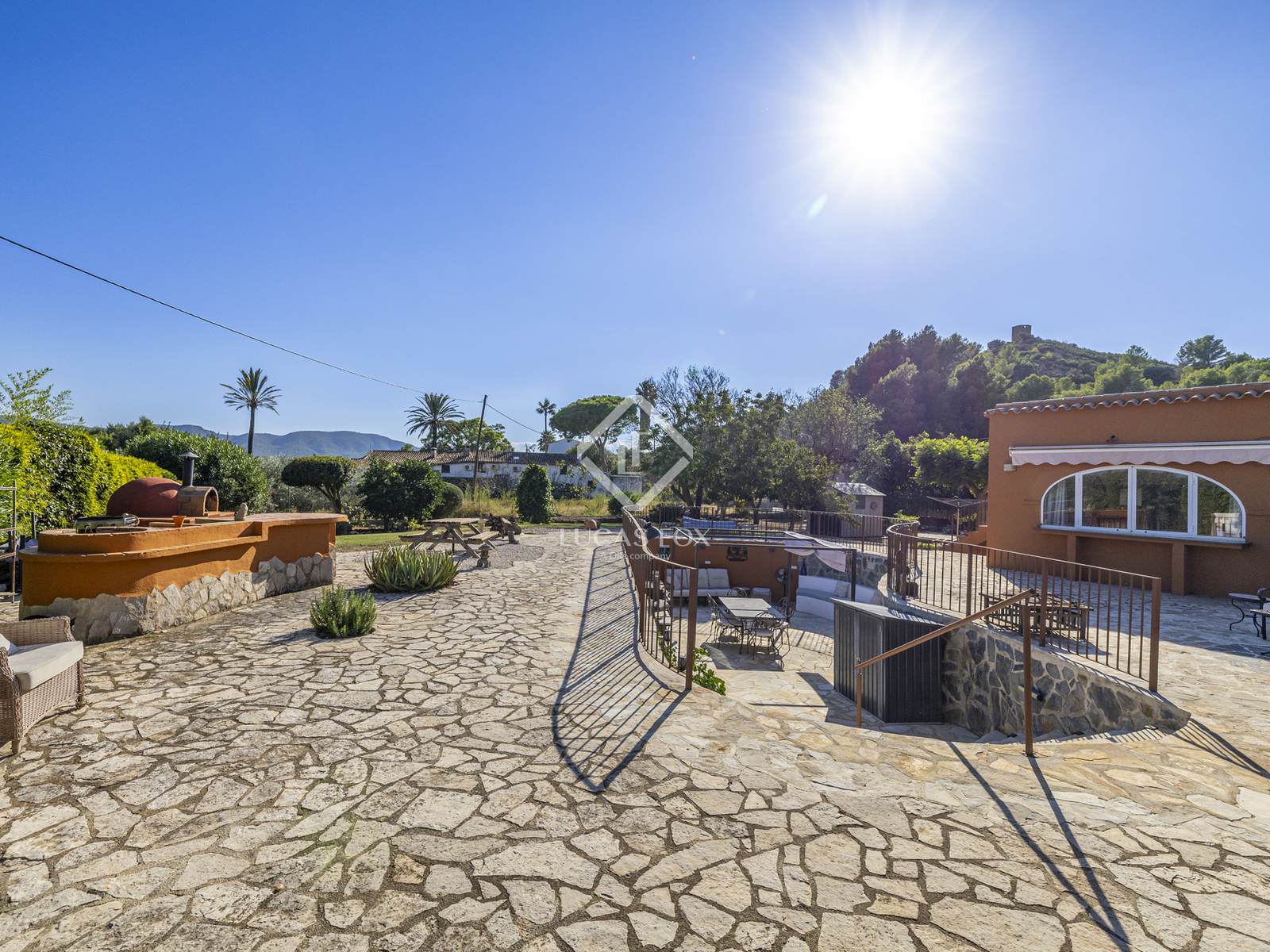 The west-facing porch, the perfect spot for evening apéritifs, sets the tone. Inside, the living room impresses with high ceilings and a pellet burner, onto the spacious open-plan kitchen, dining, and living area boasts expansive windows framing Montgó mountain, while the professionally equipped kitchen and large utility room cater to both home chefs and entertainers.