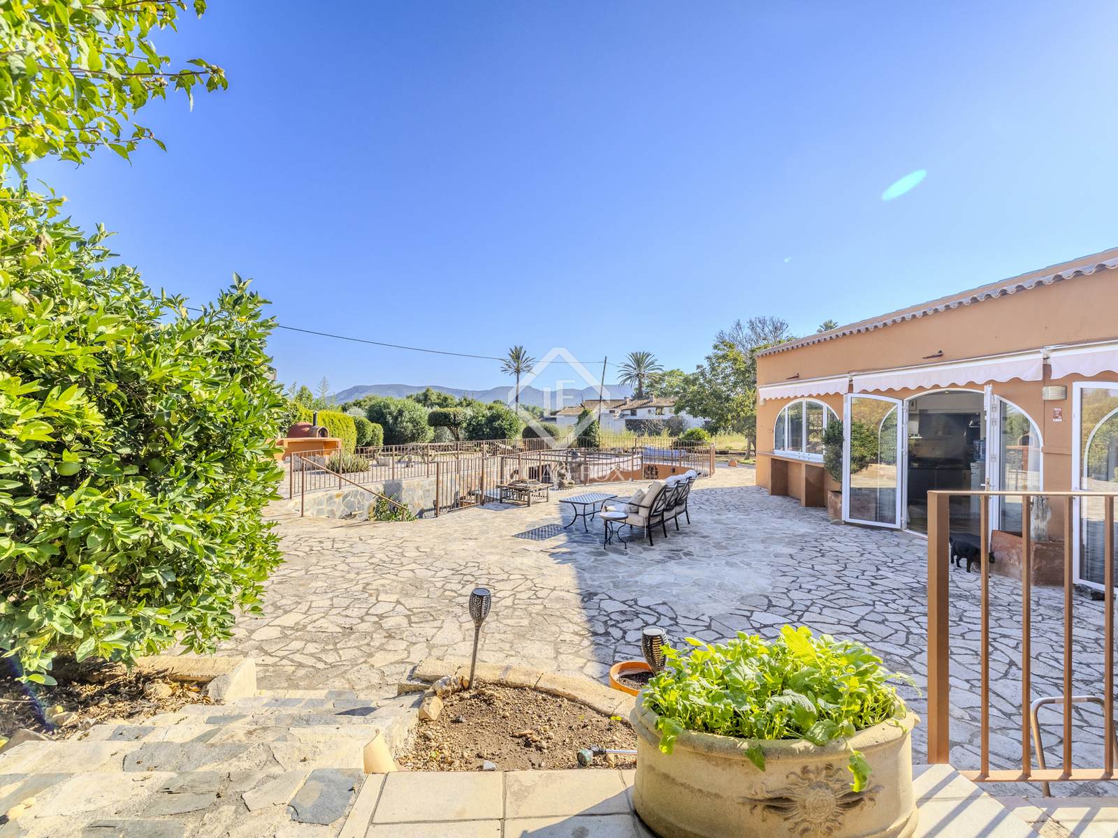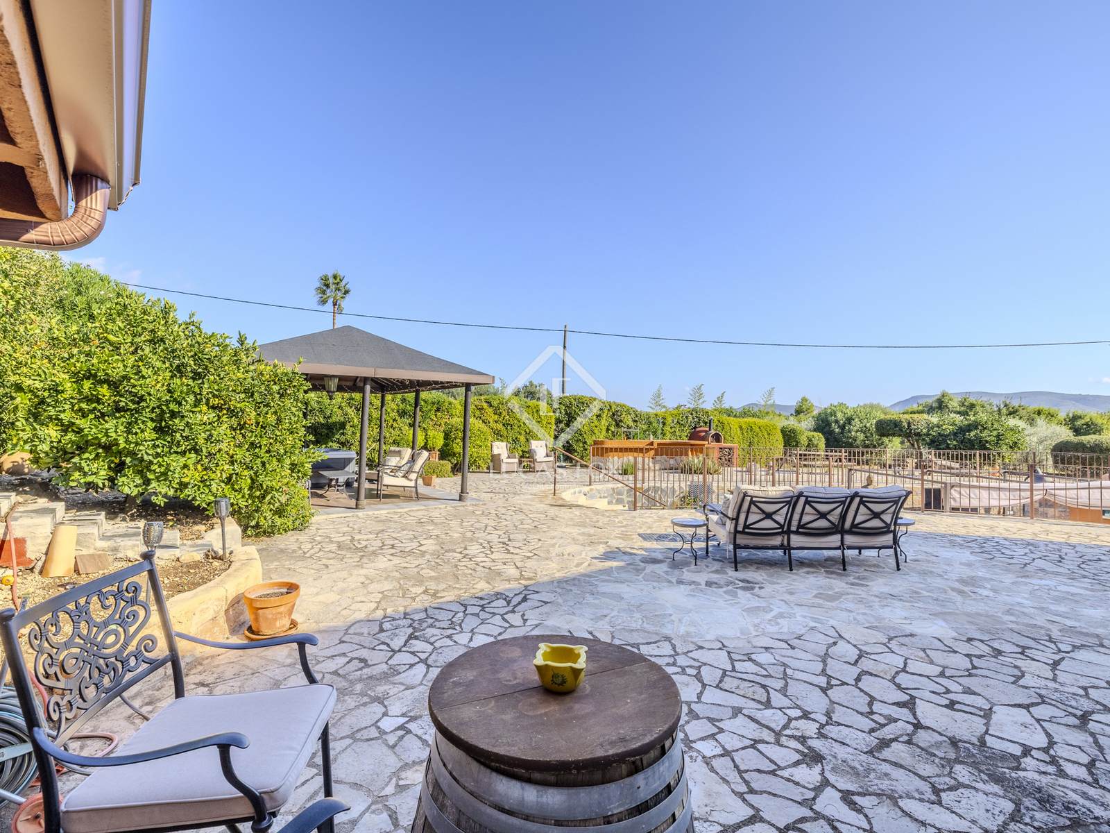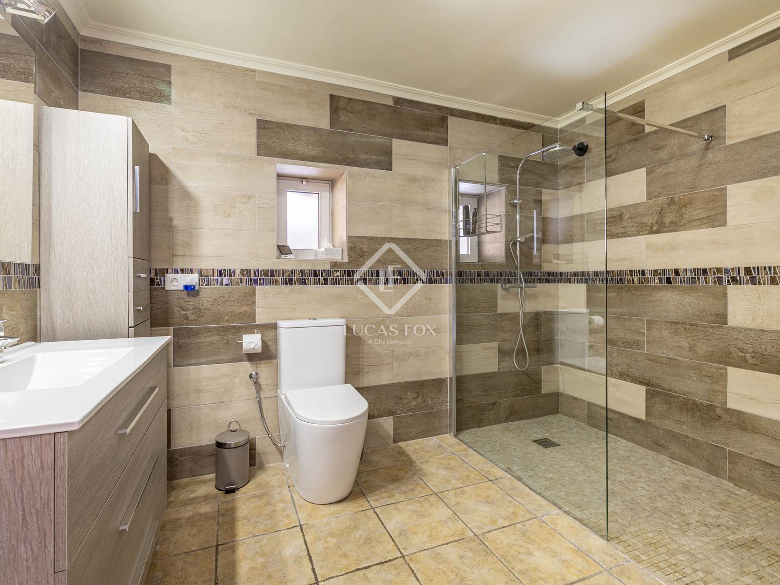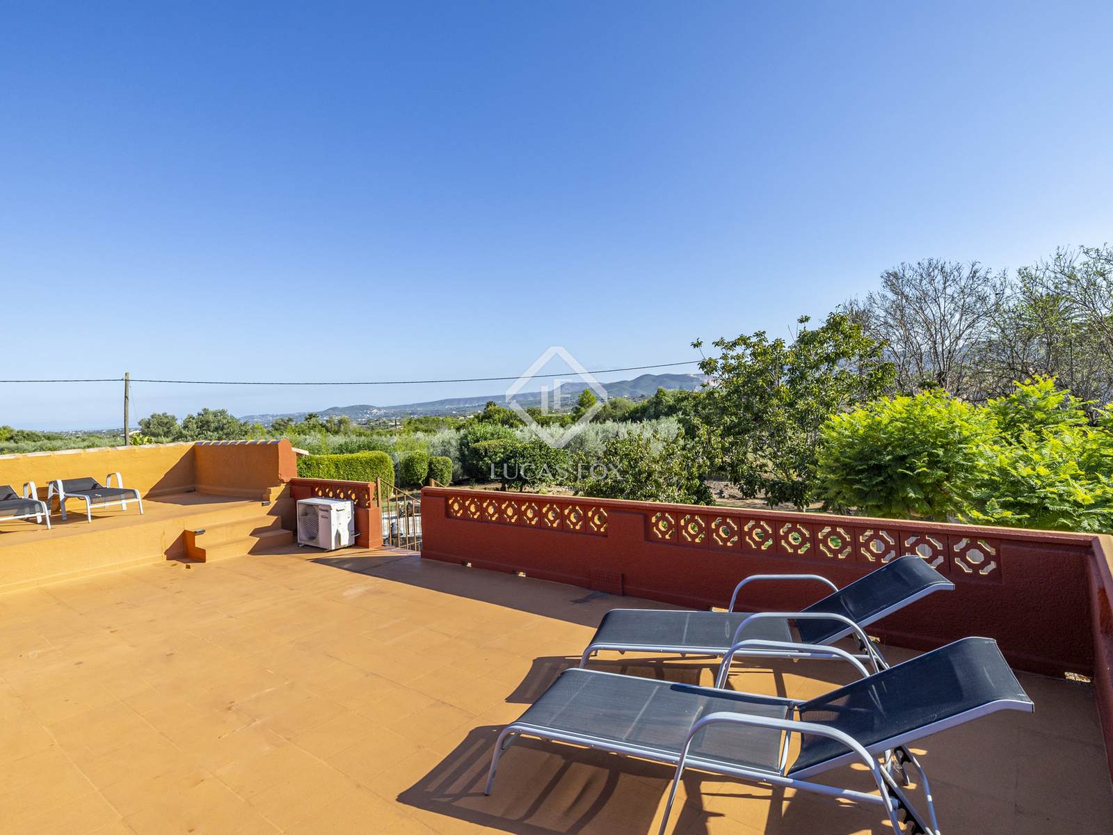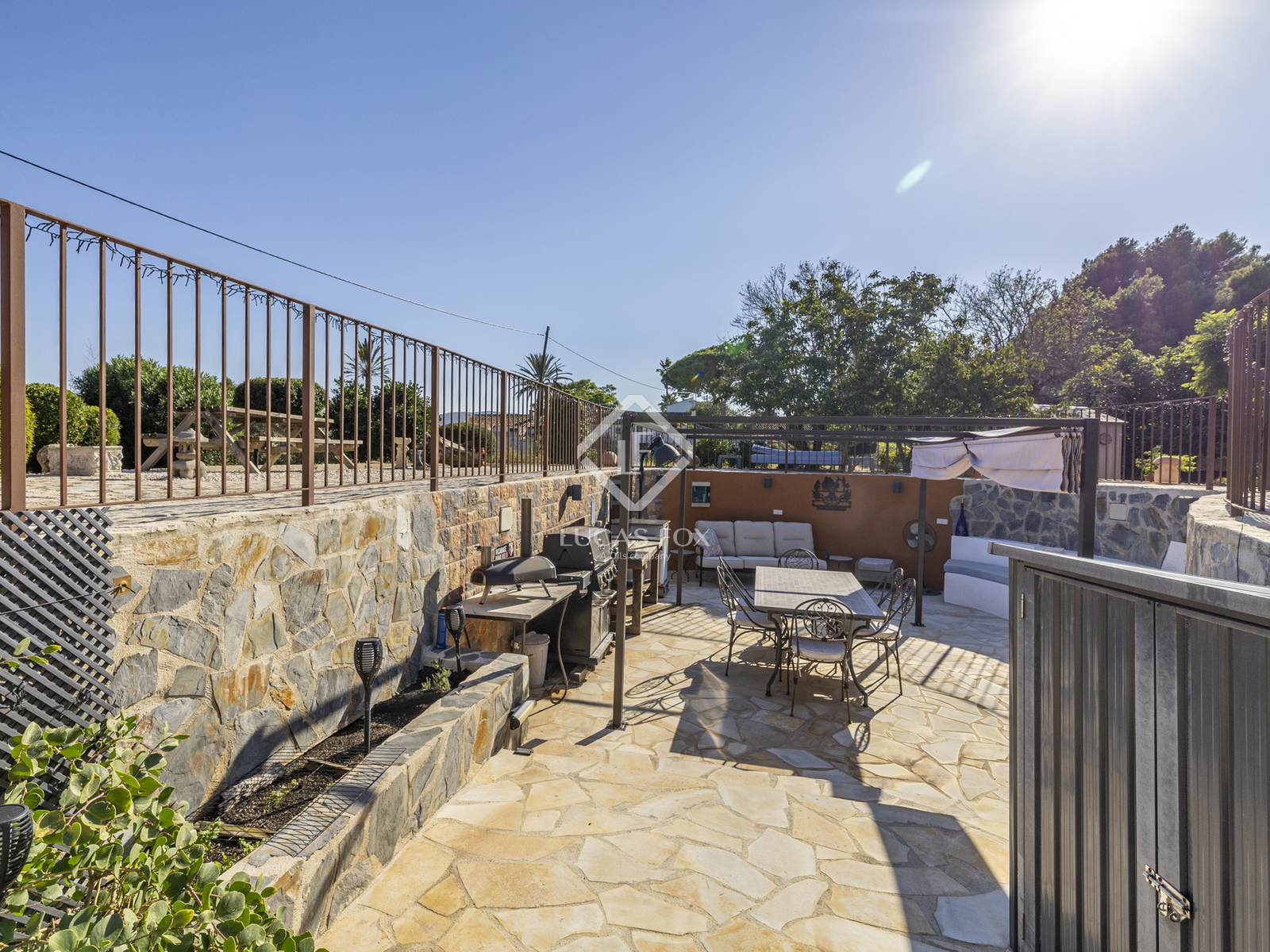 The west-facing porch, the perfect spot for evening apéritifs, sets the tone. Inside, the living room impresses with high ceilings and a pellet burner, onto the spacious open-plan kitchen, dining, and living area boasts expansive windows framing Montgó mountain, while the professionally equipped kitchen and large utility room cater to both home chefs and entertainers.