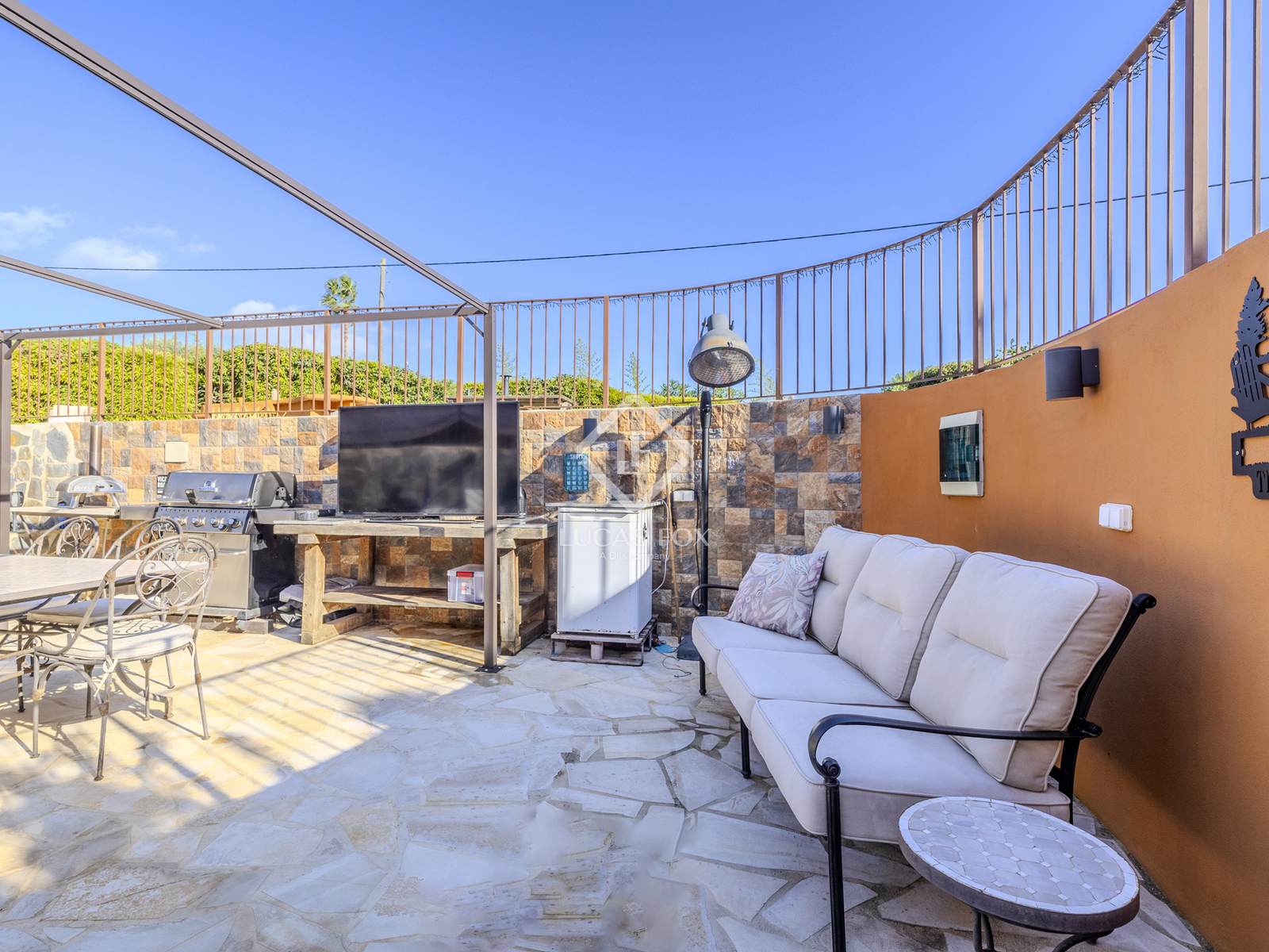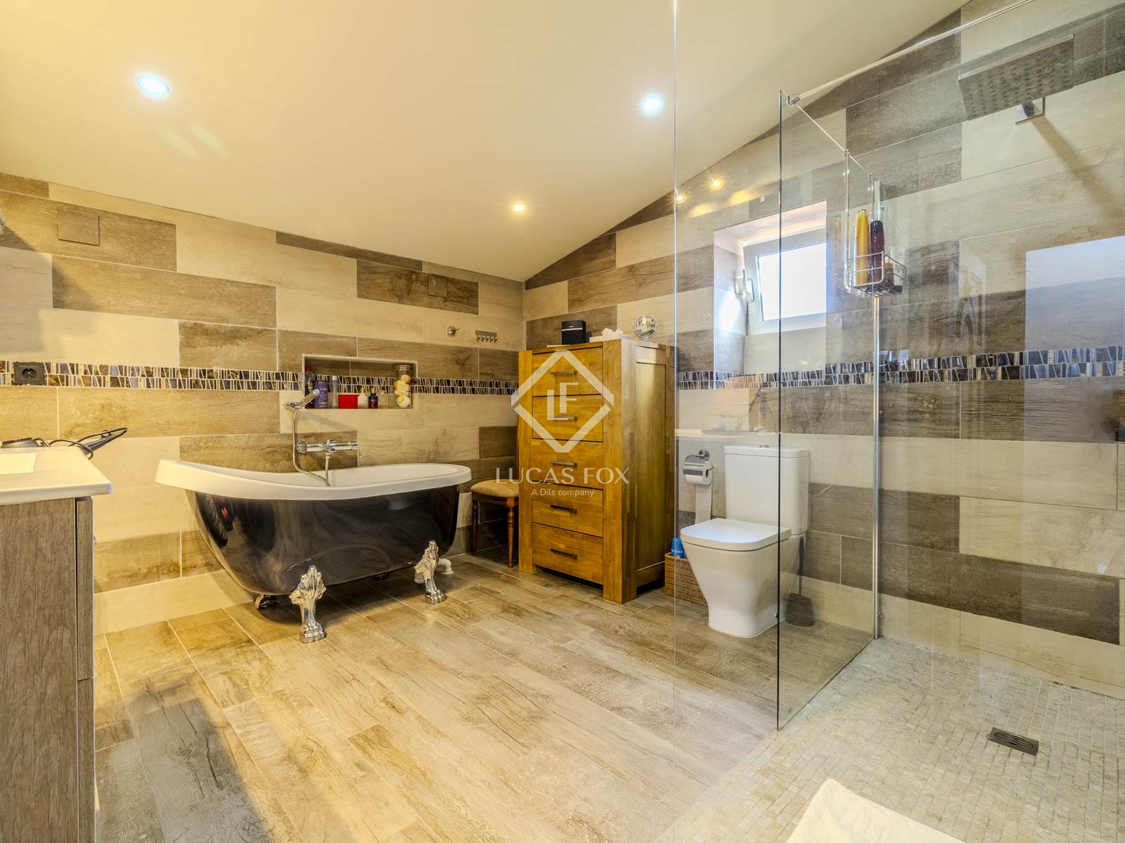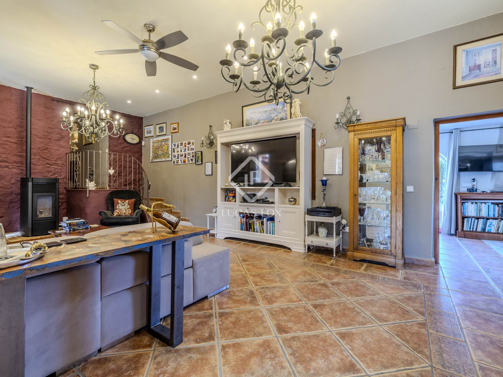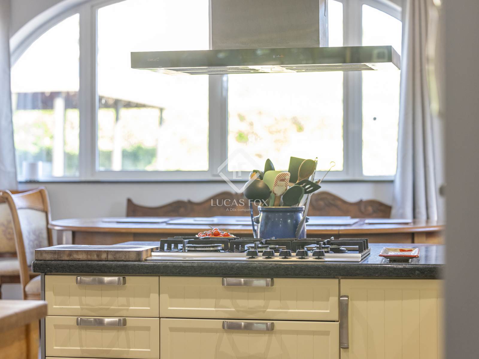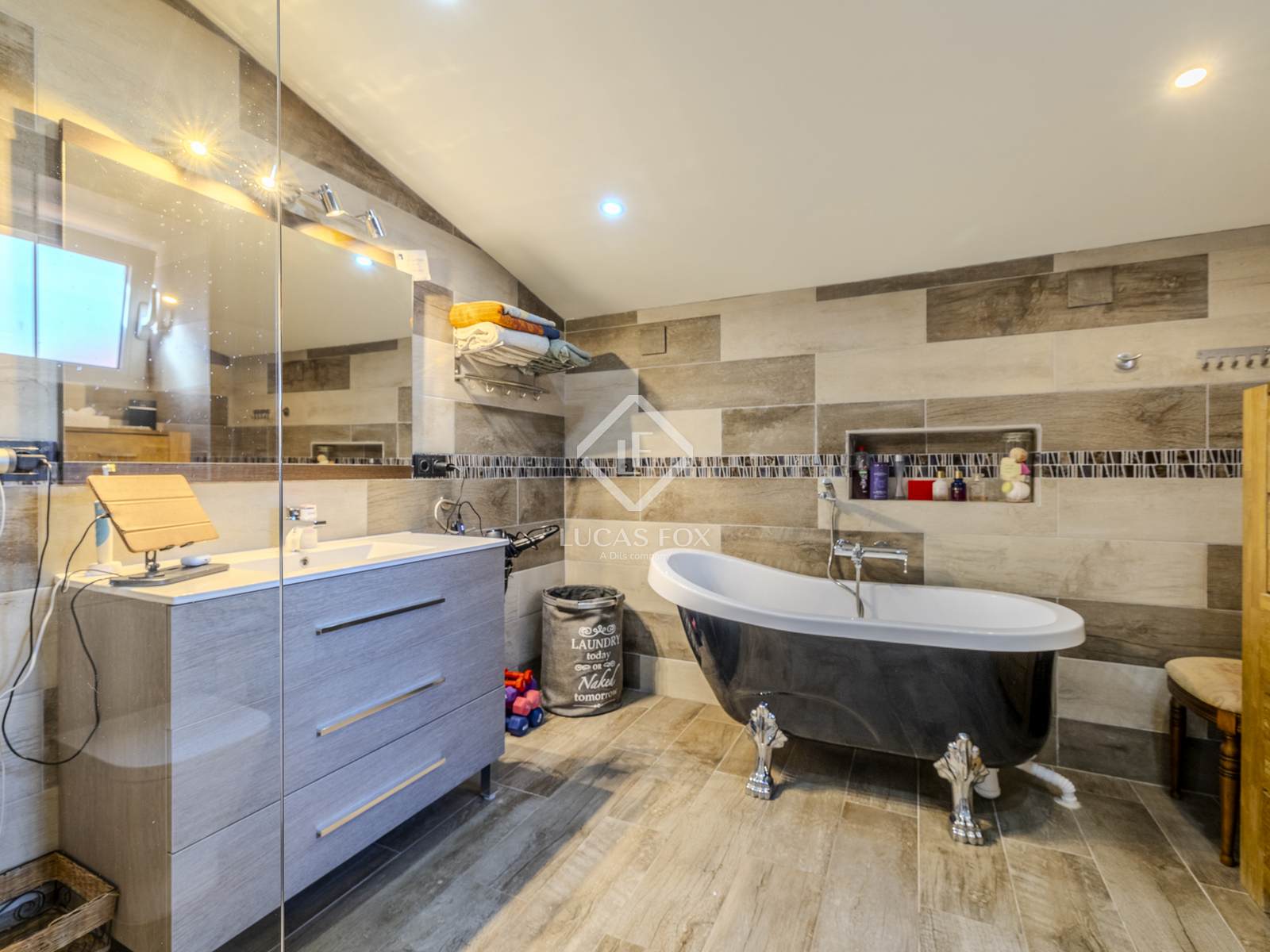 The west-facing porch, the perfect spot for evening apéritifs, sets the tone. Inside, the living room impresses with high ceilings and a pellet burner, onto the spacious open-plan kitchen, dining, and living area boasts expansive windows framing Montgó mountain, while the professionally equipped kitchen and large utility room cater to both home chefs and entertainers.