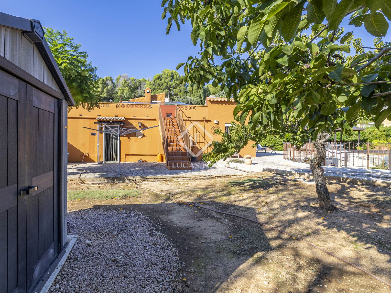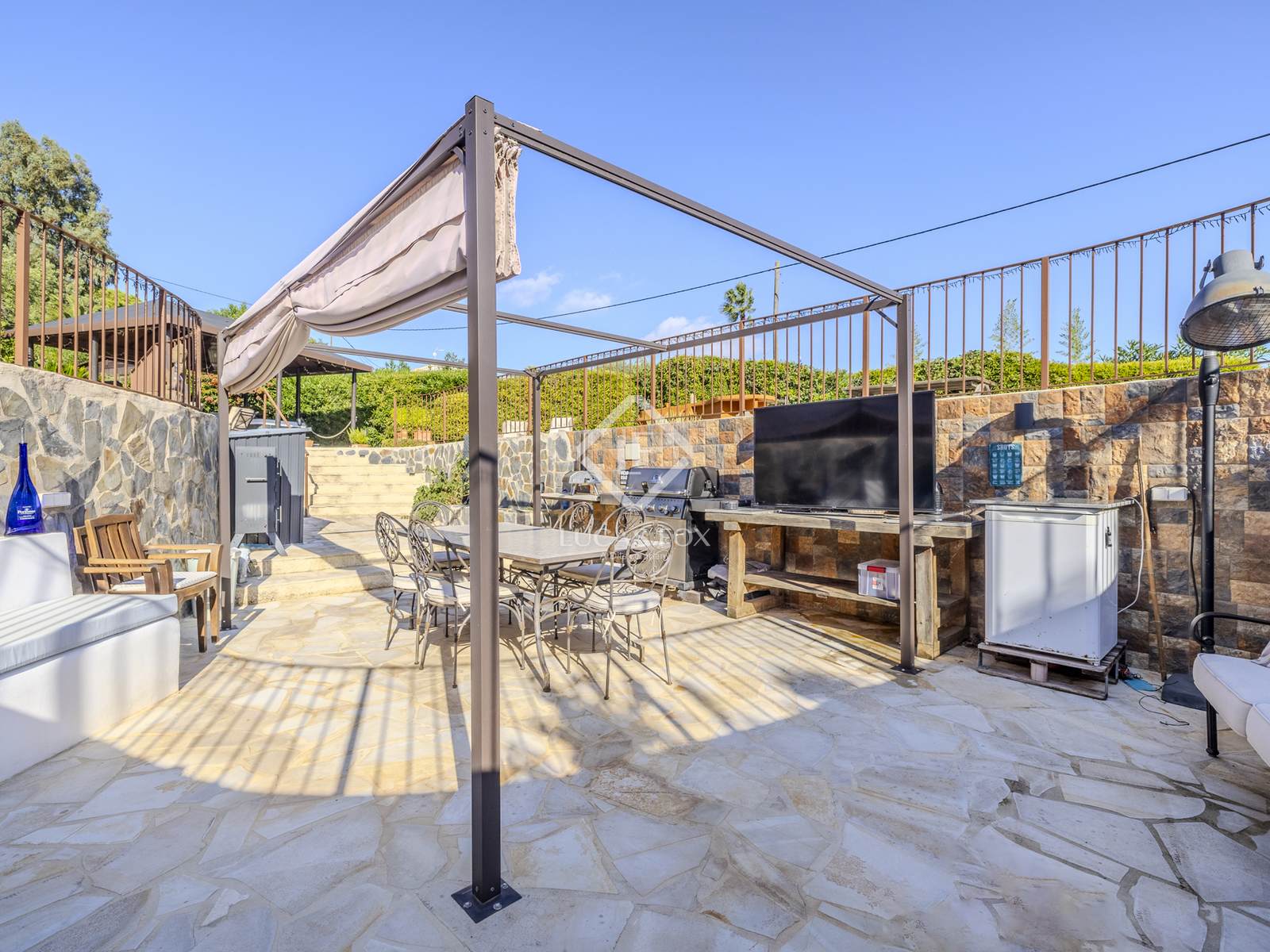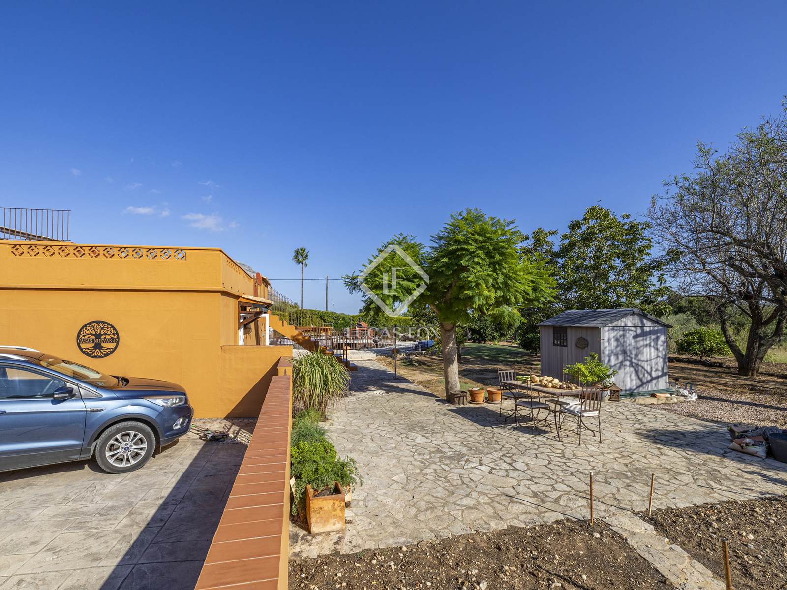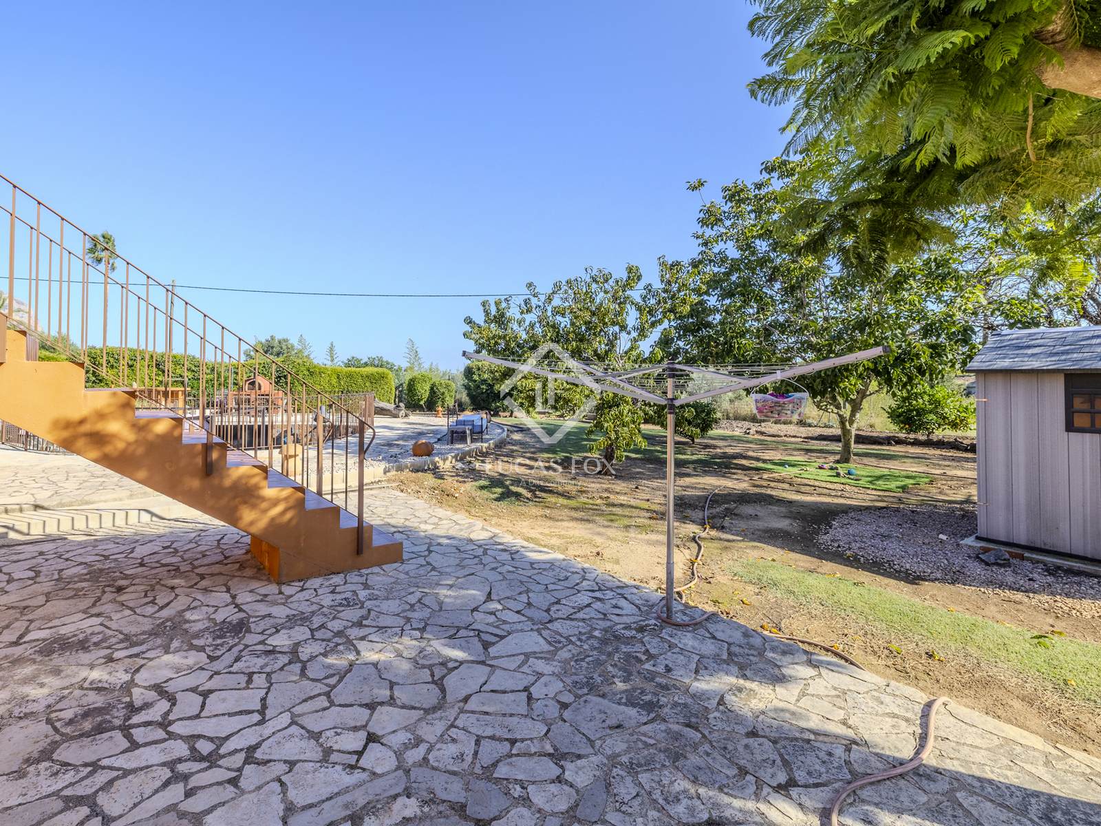 Outdoors, the finca is a paradise for garden lovers. A sunken dining terrace, summer kitchen with BBQ, paellero, and pizza oven, shaded pergola with jacuzzi, and even a chicken coop complement the thriving orchard. Fruit trees abound—avocado, fig, orange, lime, grapefruit, walnut, peach, and pomegranate—alongside a flourishing vegetable patch.