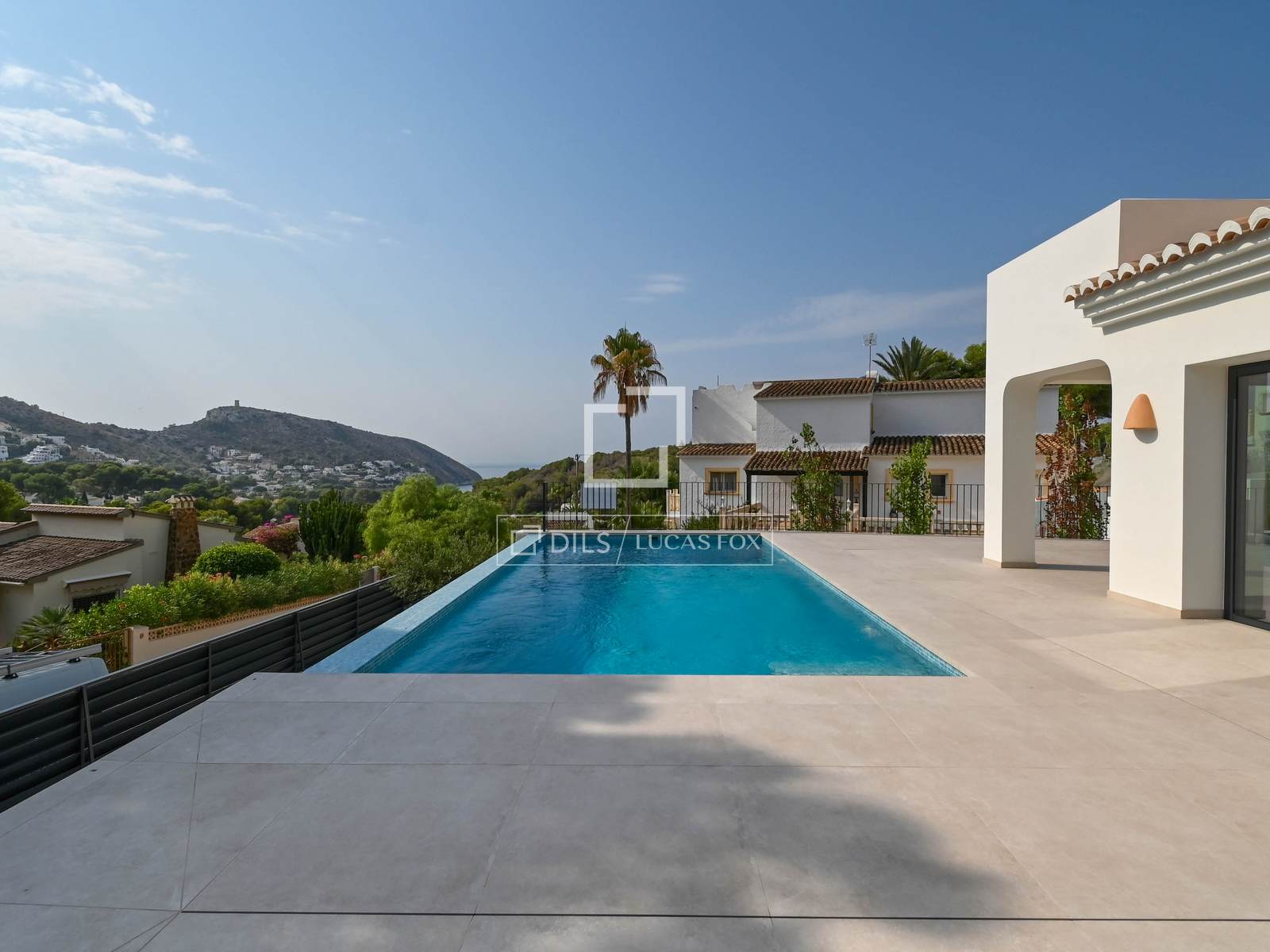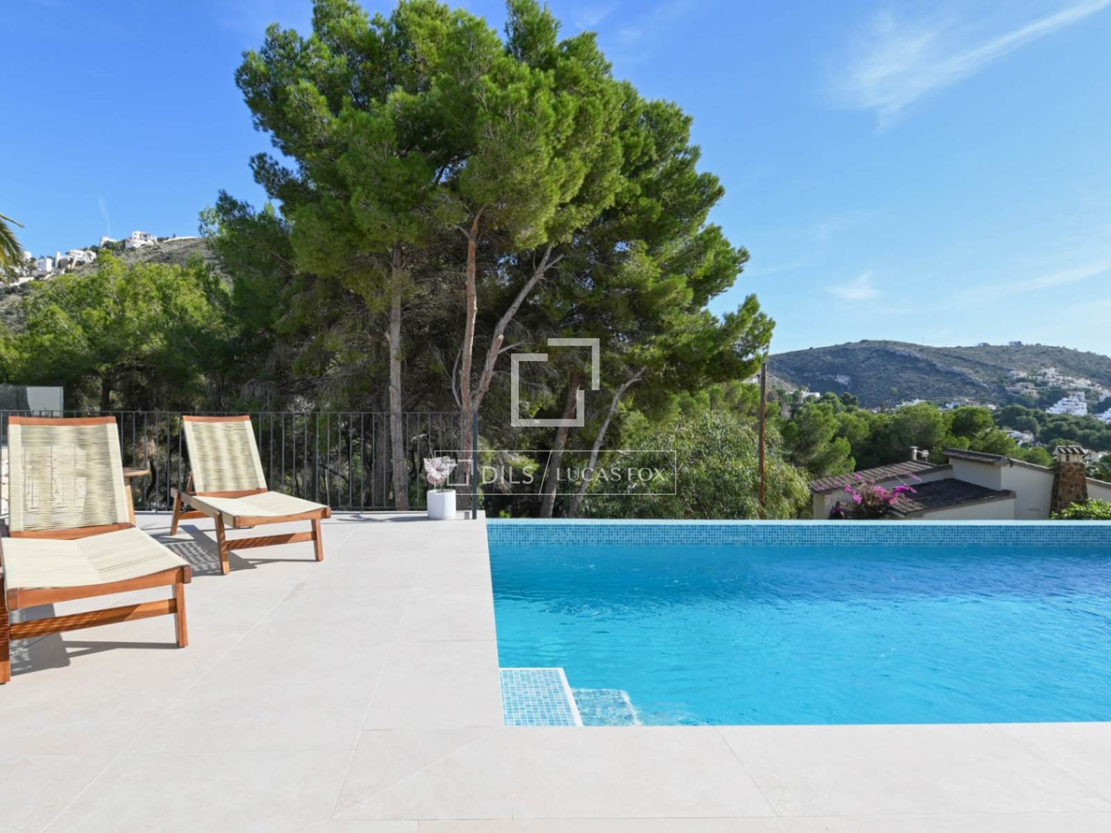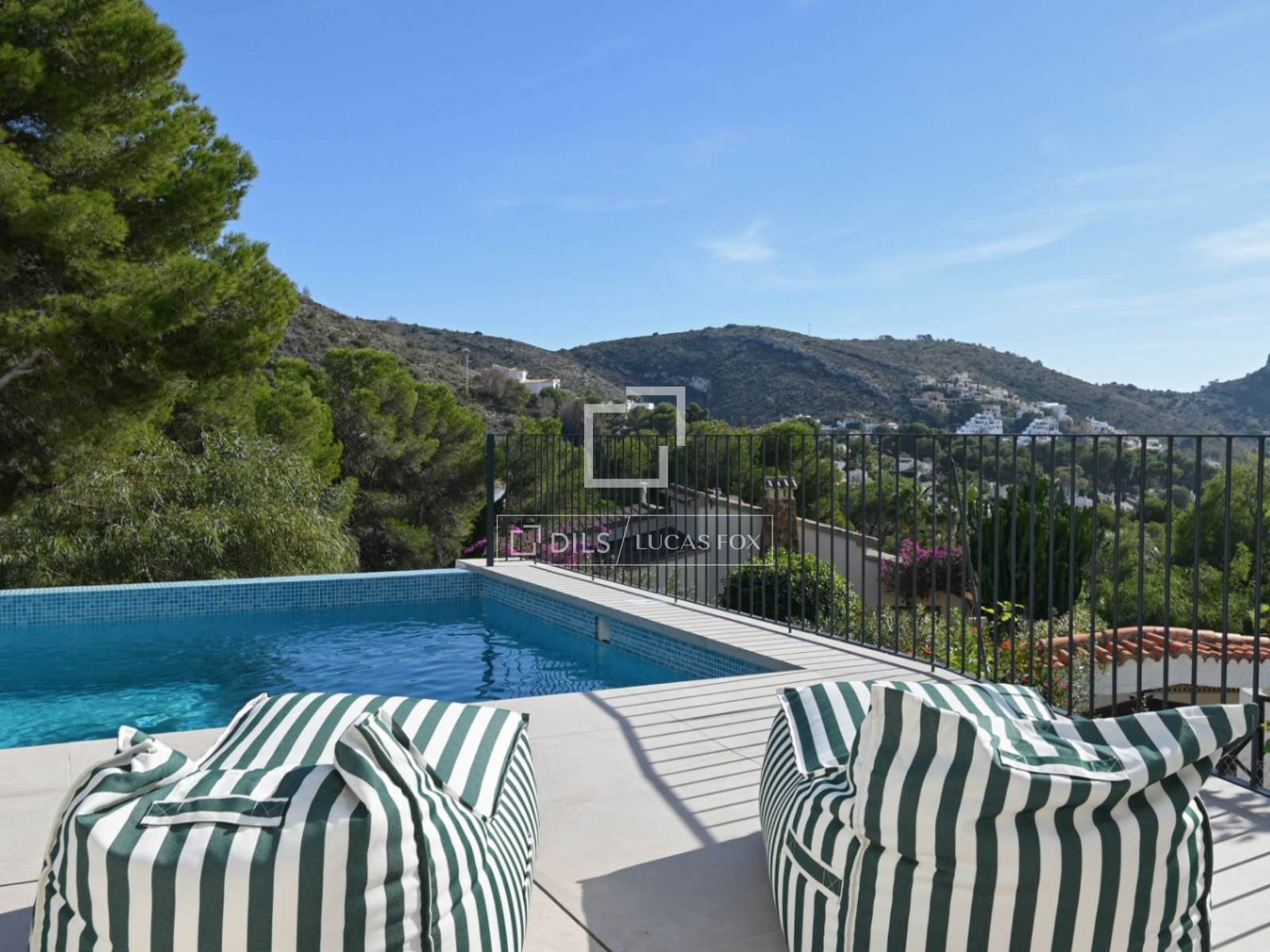 This elegant villa is located in the prestigious and highly sought-after area of El Portet in Moraira. Just 1.2 km from the beach, you can reach this Mediterranean paradise in only 3 minutes by car or a pleasant 15-minute walk.