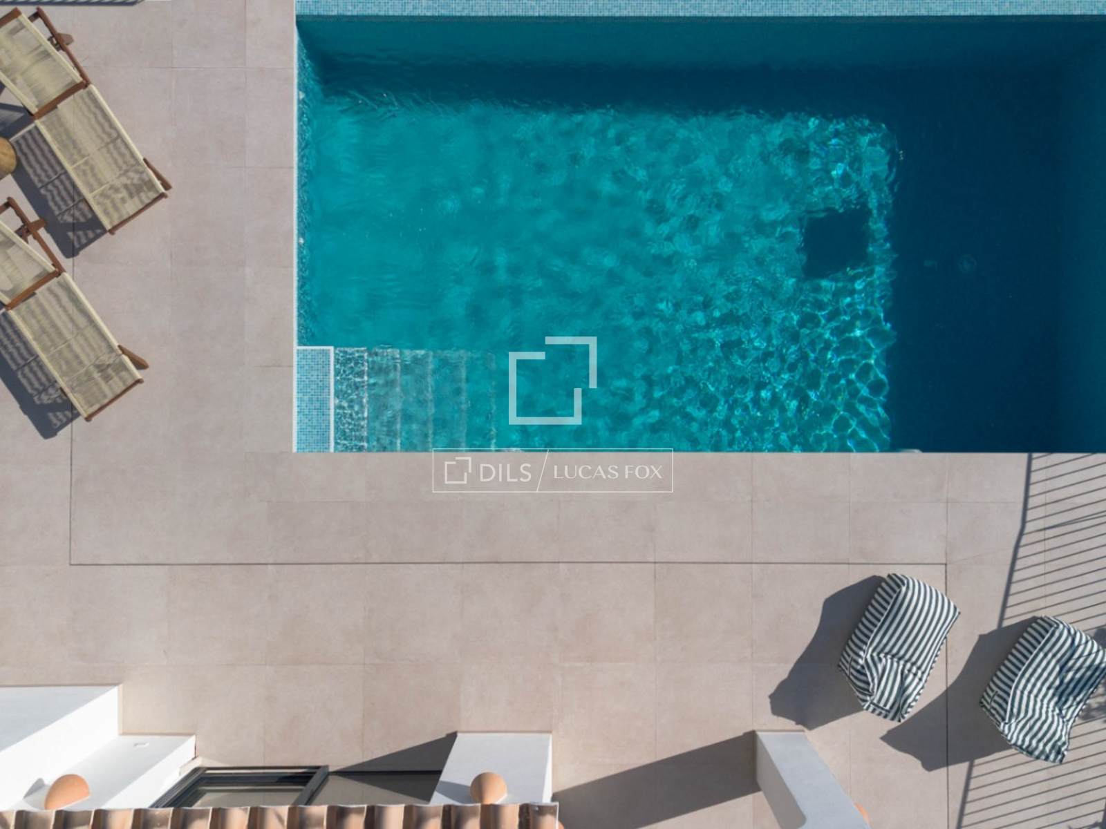 . Main floor: two bedrooms, a full bathroom, and a modern, functional kitchen. From here, there is access to a spacious terrace with a private pool overlooking the sea —