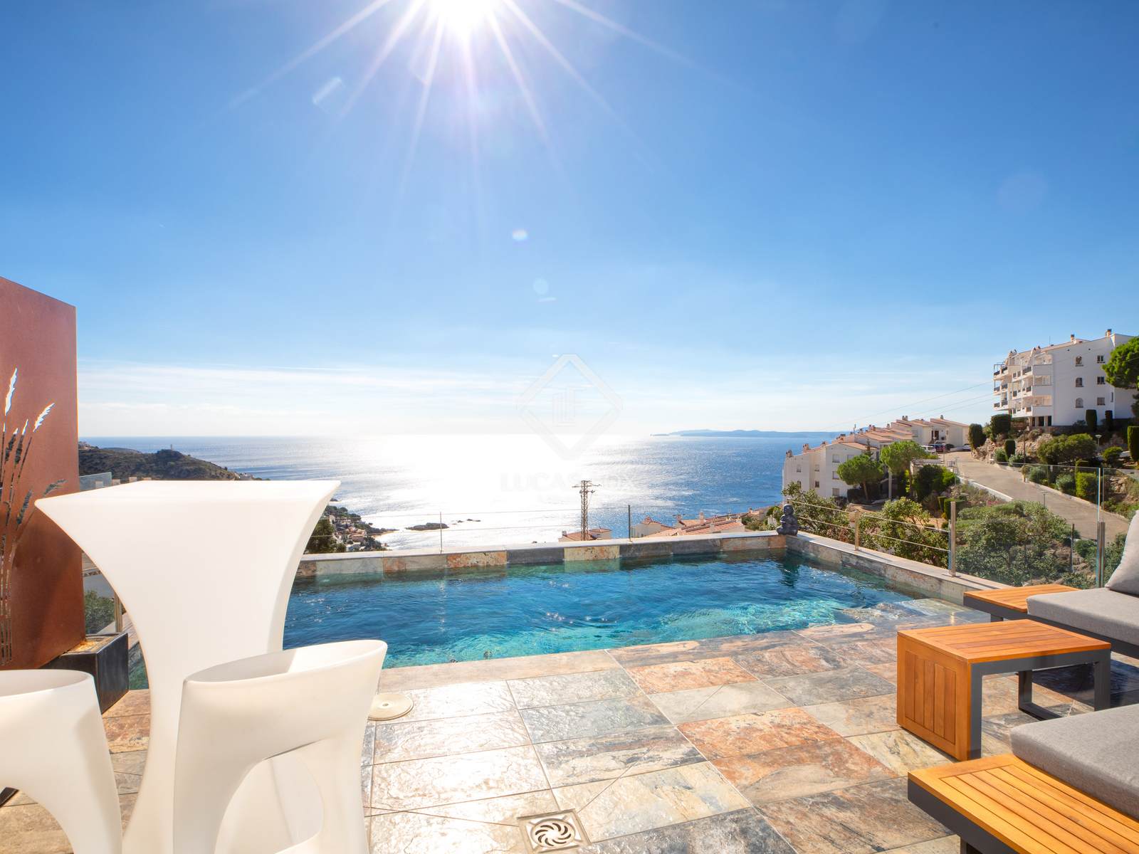 - Terrace with pool and sea views