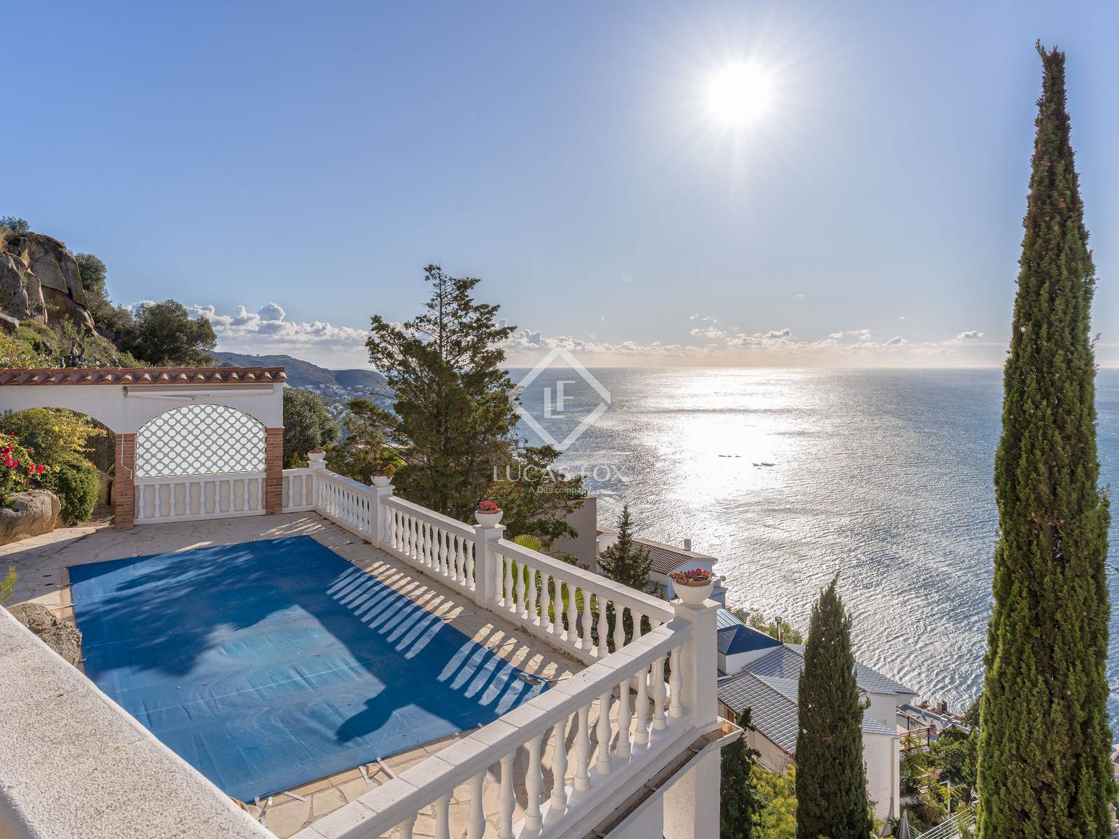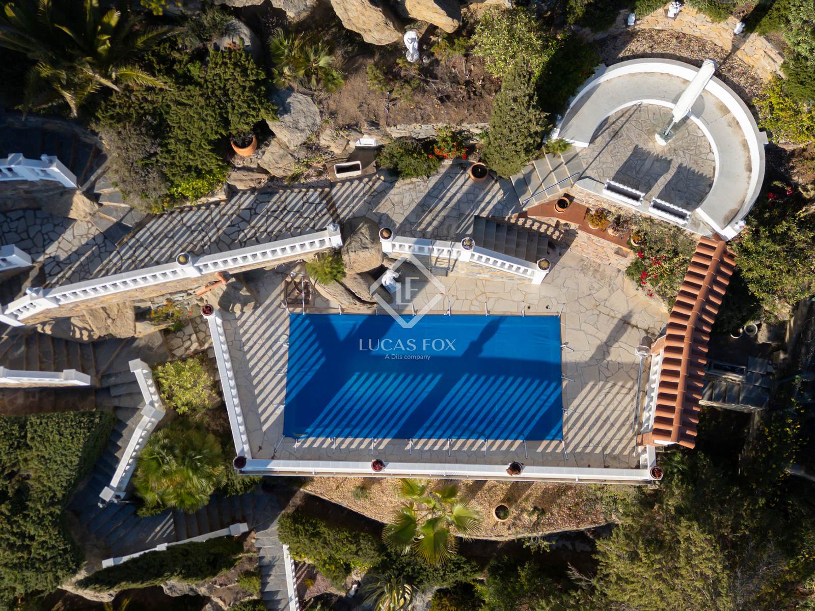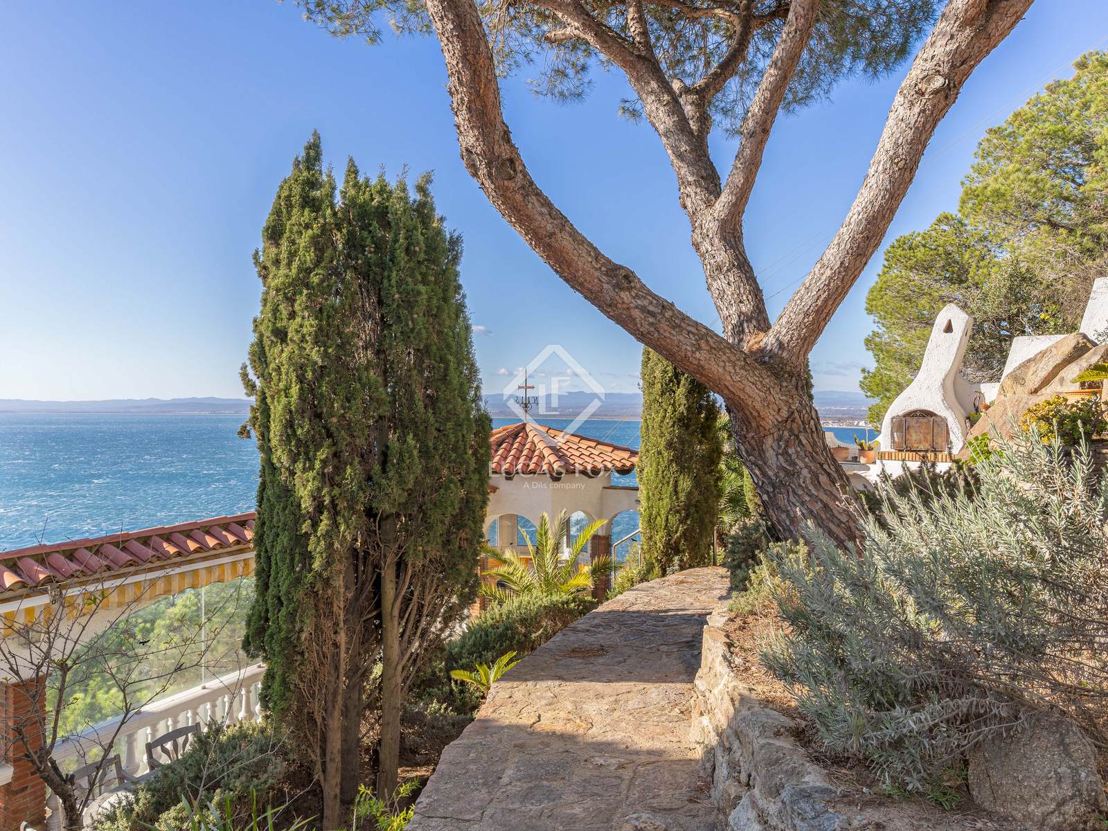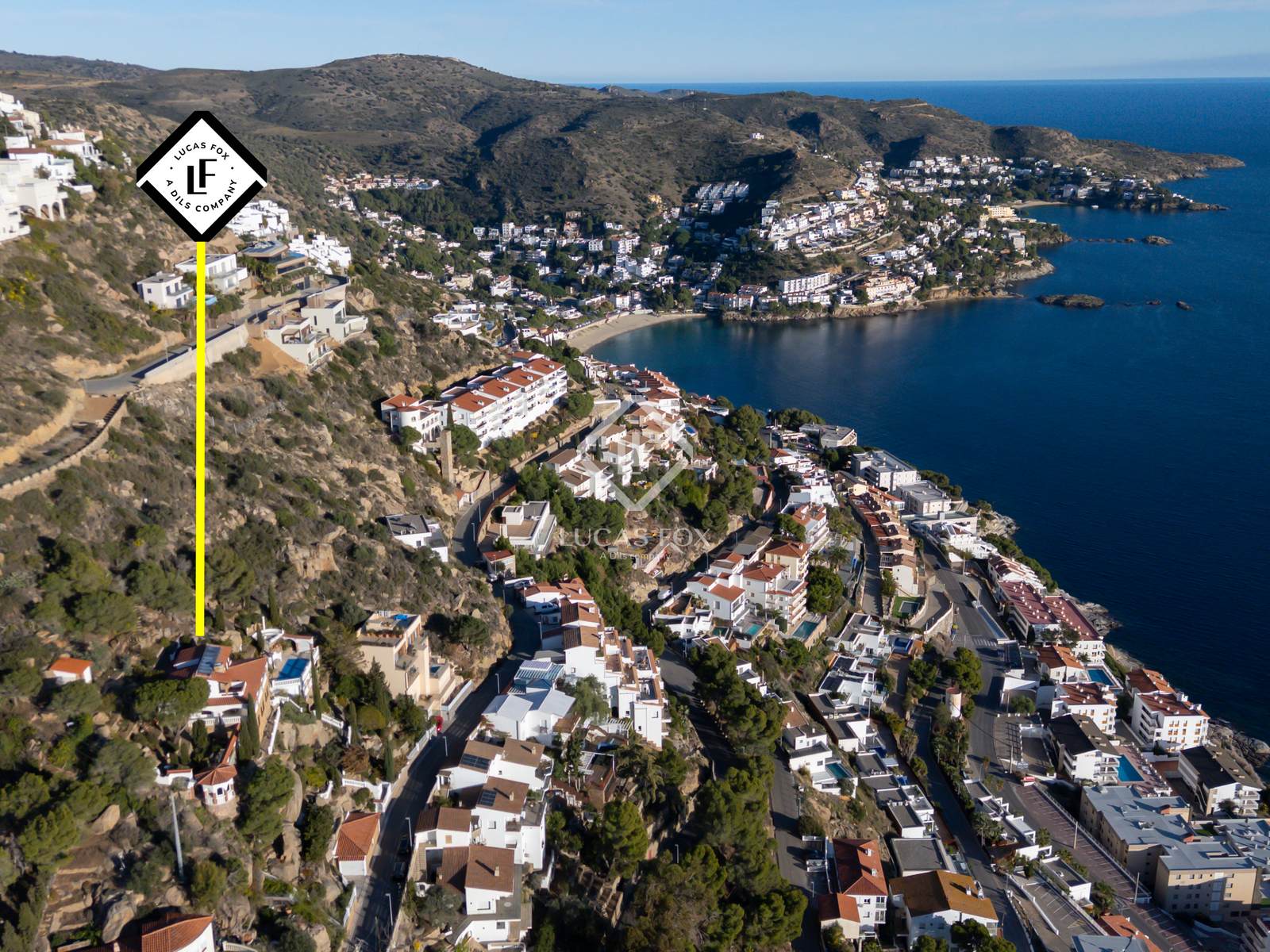 House with pool and panoramic views in Roses, distributed over three floors, with sunny terraces, separate studio, large plot and double garage. Just 5 minutes from the centre and the beach