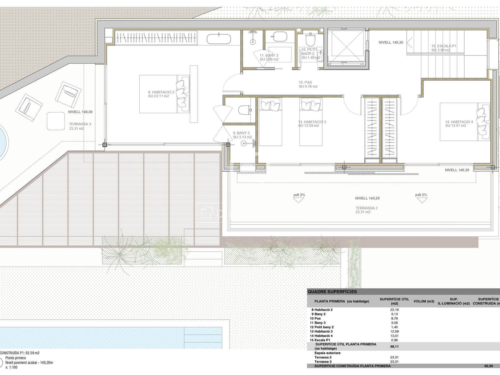 - Ensuite bedroom and access to the terrace with jacuzzi