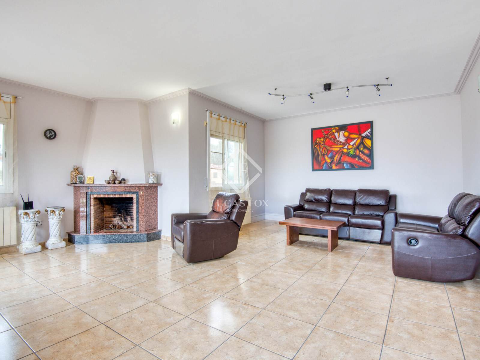 The property features quality finishes such as marble floors, heating, an alarm system, and abundant natural light in every room. It also has a garage, storage room , and additional parking.