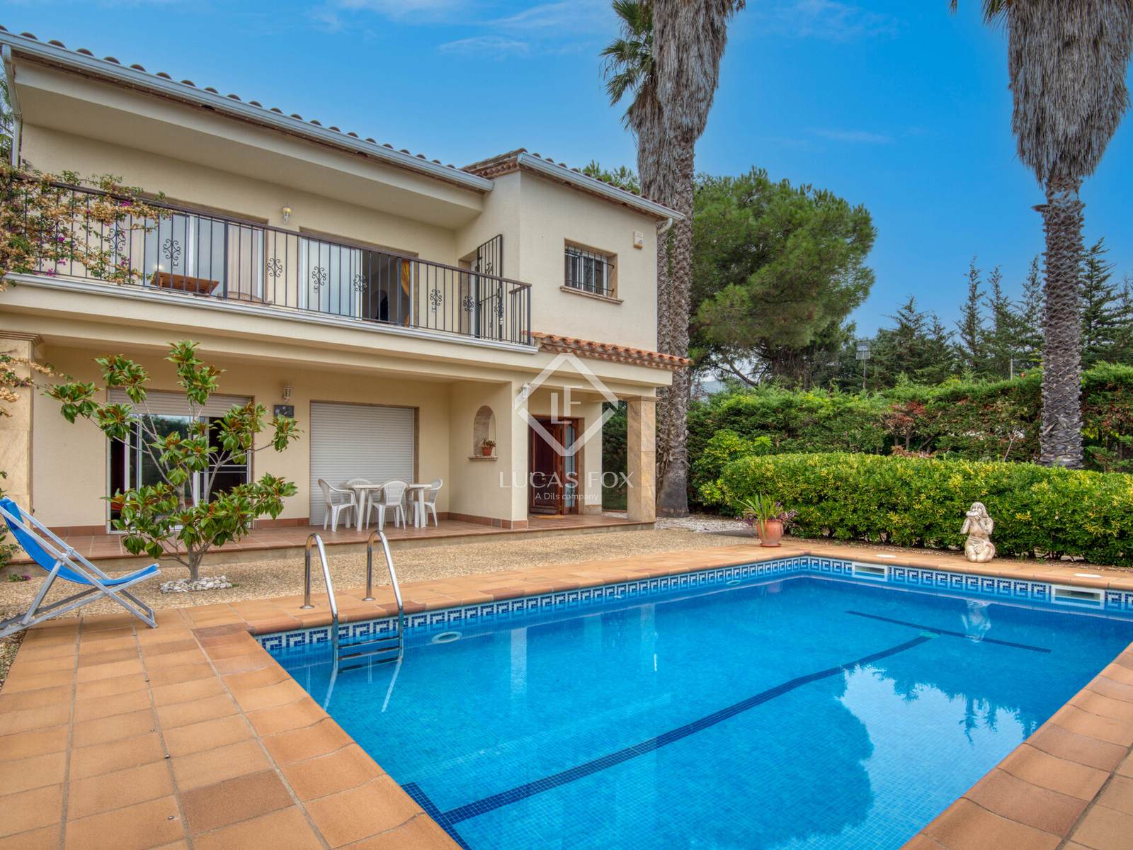 House in Calonge with sea views, private pool, garden, 4 bedrooms, living room with fireplace, garage, sauna and chill-out area.