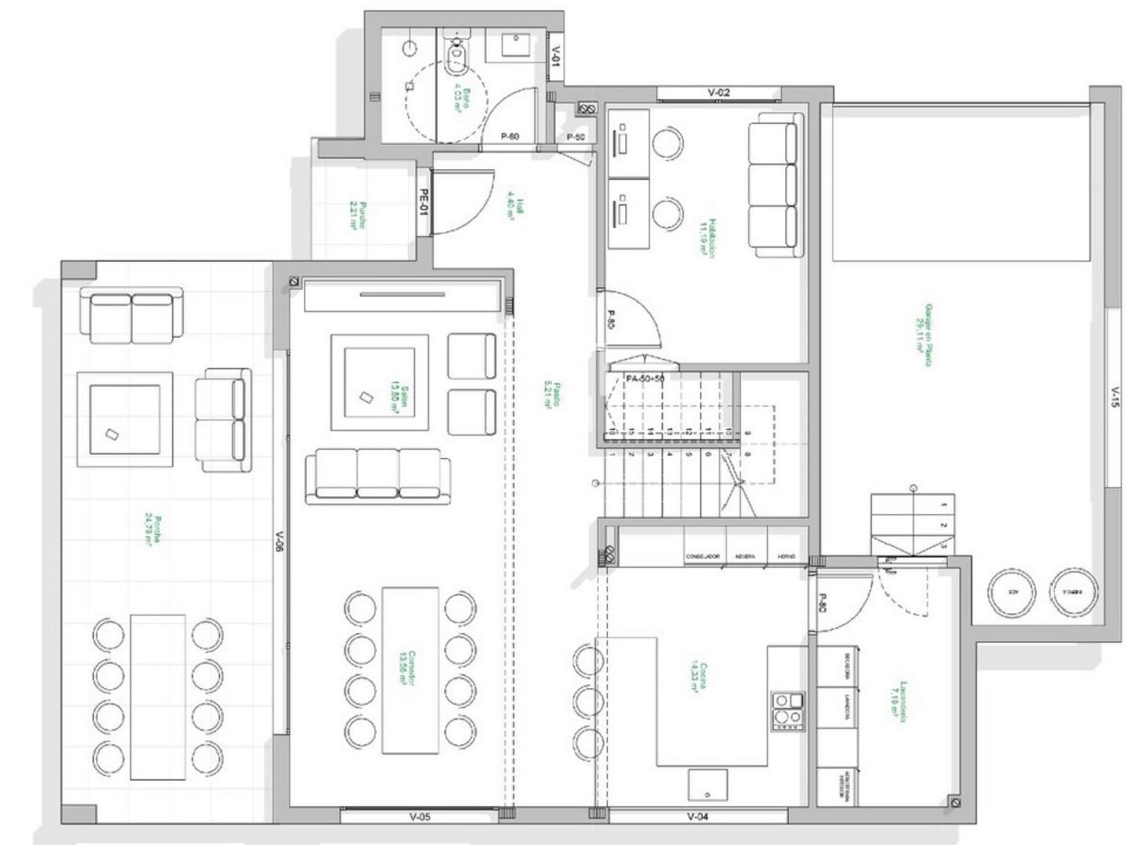 On the upper floor, we find a main suite with a walk-in wardrobe and private bathroom, two additional bedrooms sharing a bathroom, and a spectacular 35 m² south-facing rooftop terrace, ideal for relaxing and enjoying the Mediterranean climate.