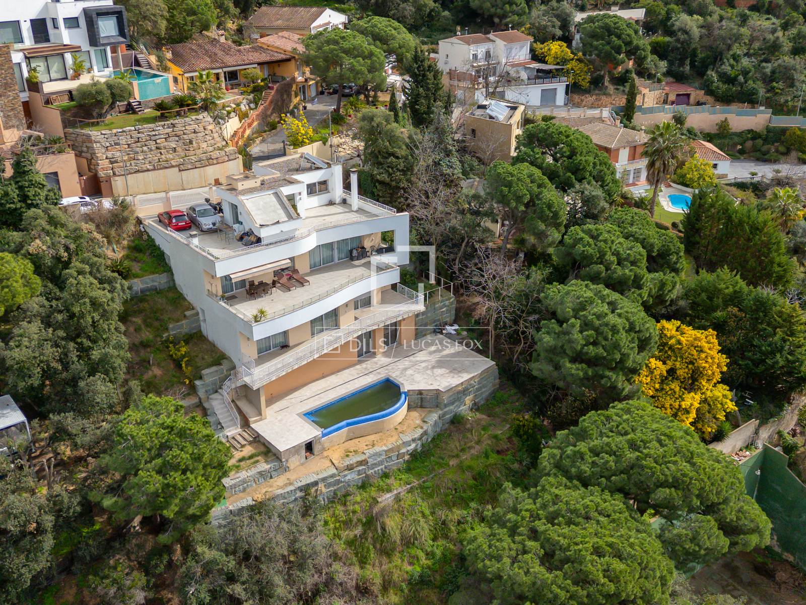 The villa is located in the quiet residential development of Urcasa, a peaceful and private setting between the sea and the mountains. It is just a five-minute car from Cala Canyelles beach and the centre of Lloret de Mar, with all its amenities, shops, and leisure activities. Furthermore, it is 1500 meters from the sea and has good road connections. The area is known for its exclusive atmosphere, low traffic, and unobstructed views of the landscape and the Mediterranean, ideal for those seeking tranquility without sacrificing proximity to the coast and urban conveniences.