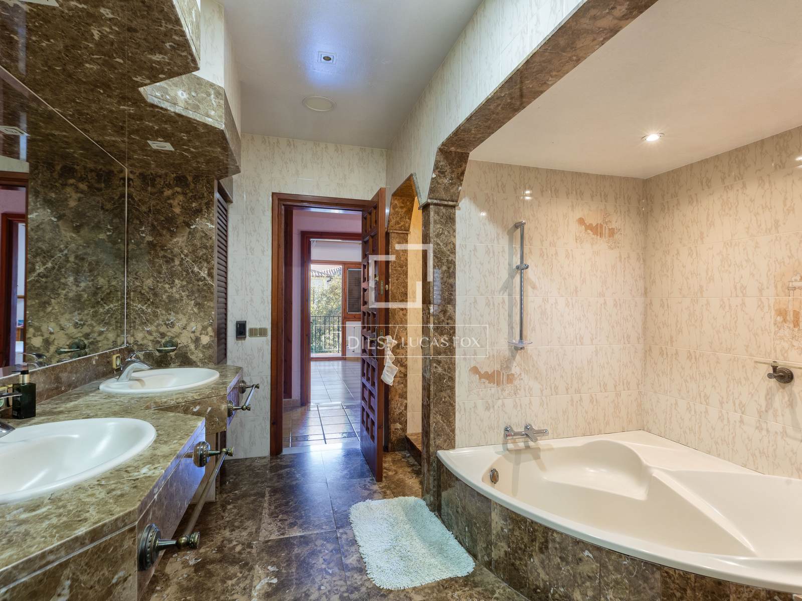 The upper floor has five double bedrooms, one single bedroom , three full bathrooms and five outdoor terraces that provide light and views of the natural surroundings.