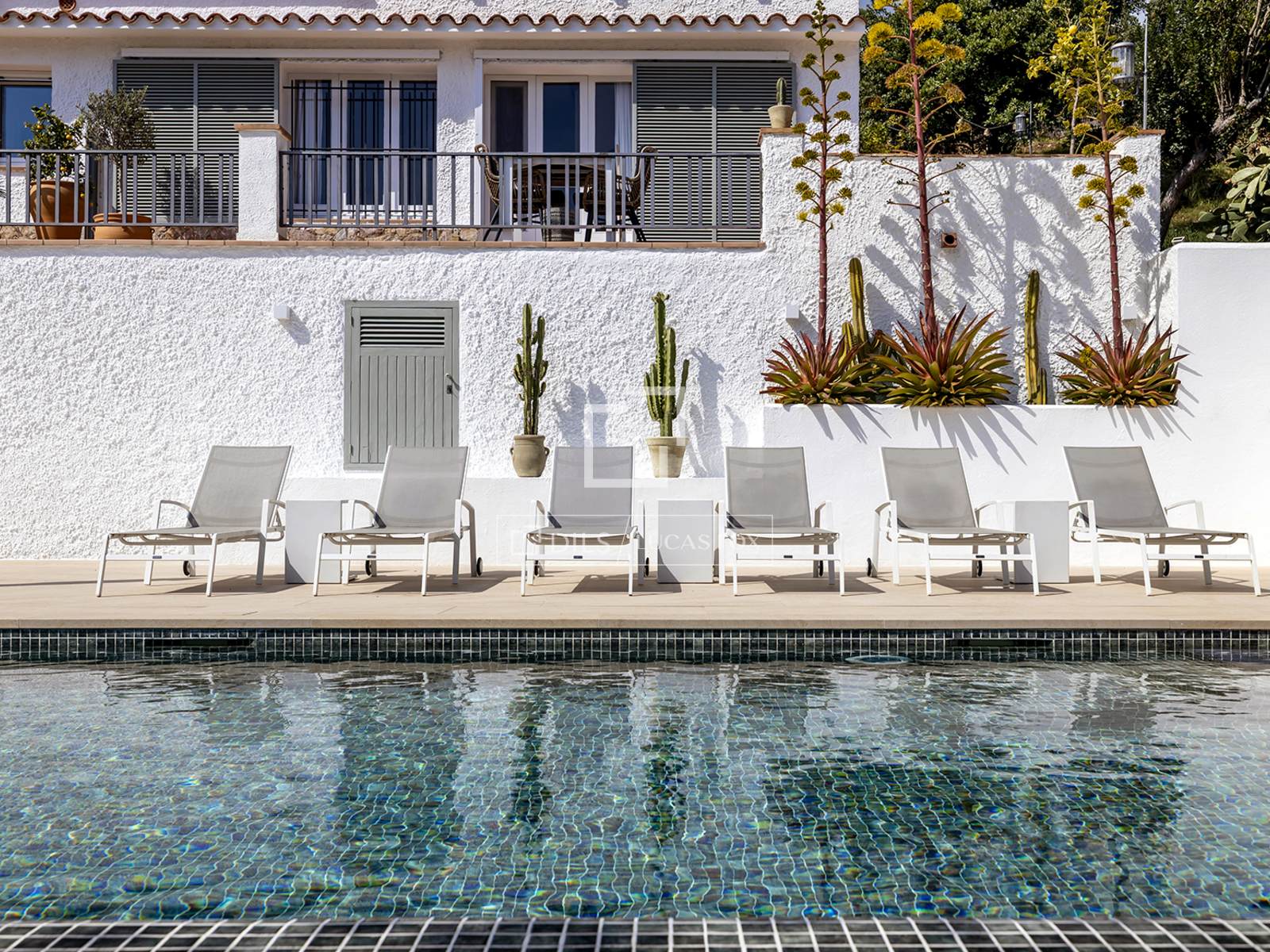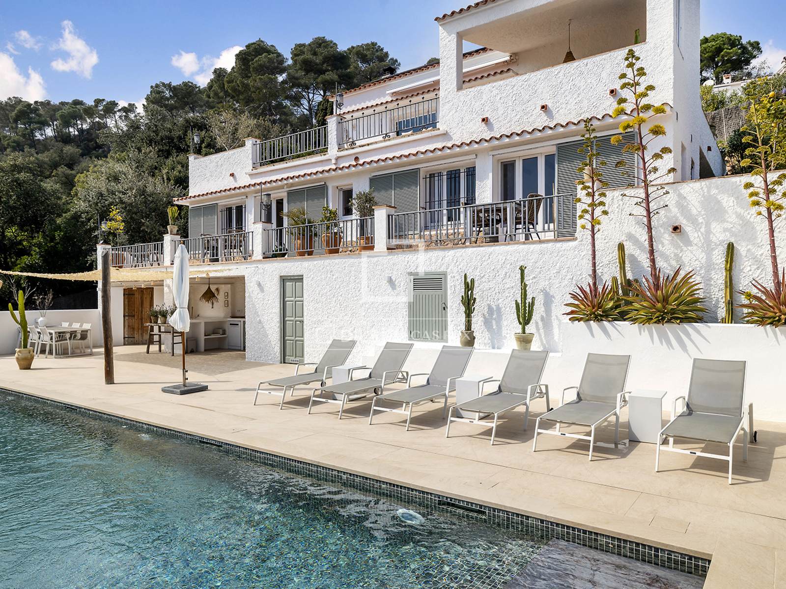 Exclusive fully renovated villa in Palamós, with panoramic views of the sea and forest, situated in a privileged setting next to the Les Gavarres Natural Park, just 10 minutes from the beaches of La Fosca (Castell) and Palamós.