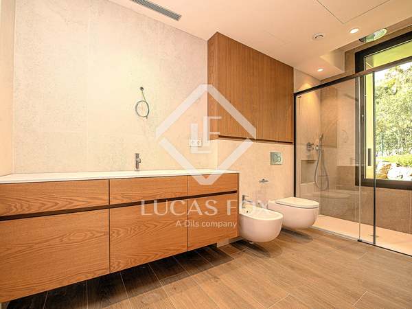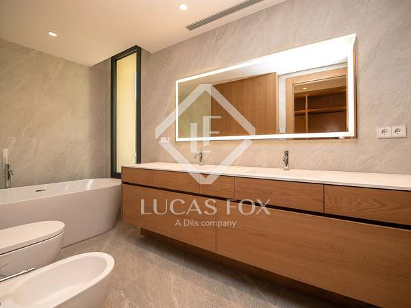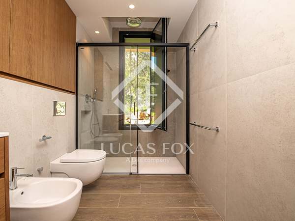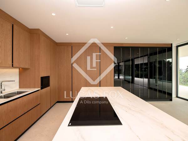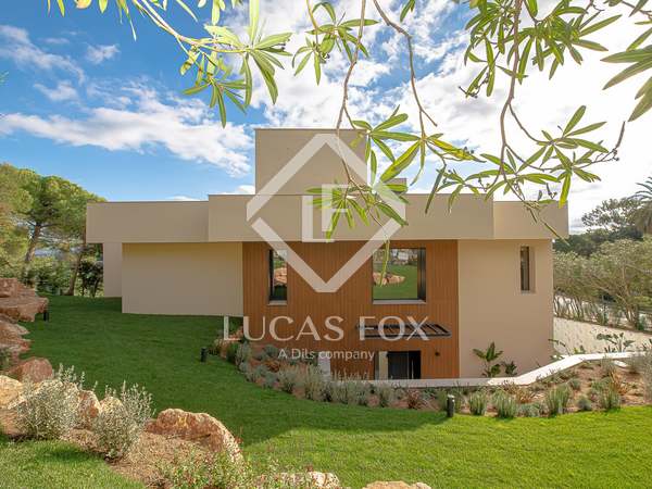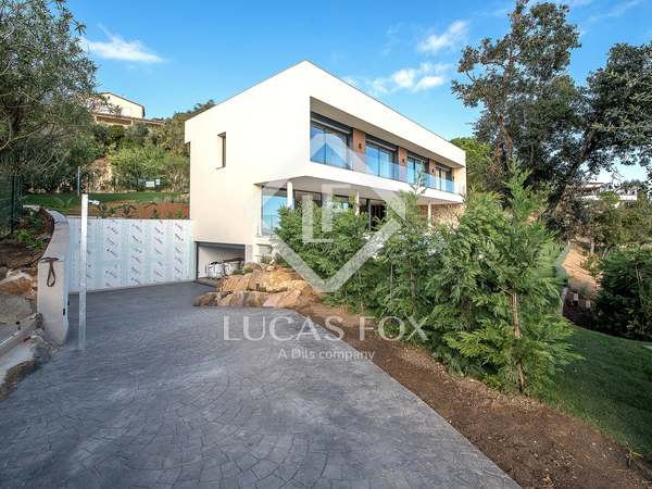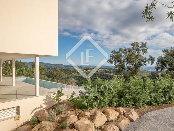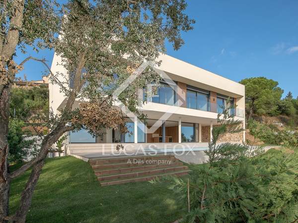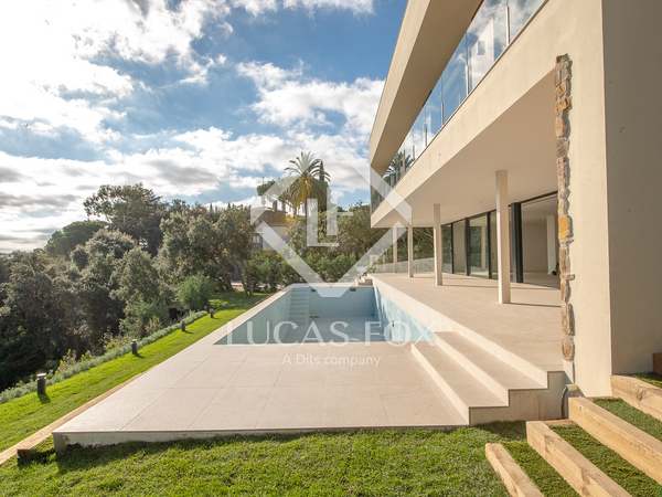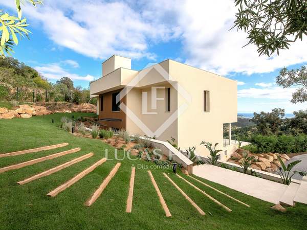 This modern villa stands out for its spectacular contemporary design and its privileged location in the prestigious residential area of Mas Nou, in Platja d'Aro, just 5 kilometers from the centre of the coastal town and its wonderful beaches and coves. The house built in 2015 has 932 m² built and sits on a 2,195 m² plot that houses a magnificent garden with different outdoor areas and a private pool.