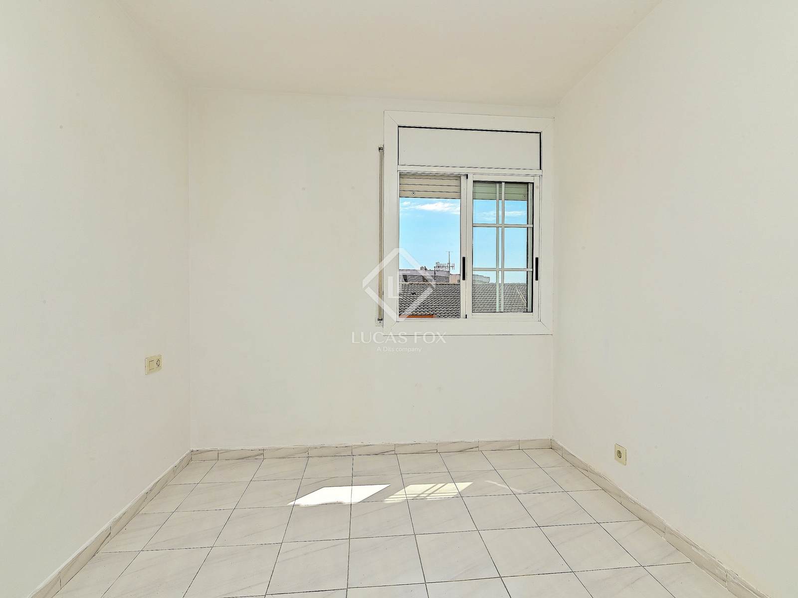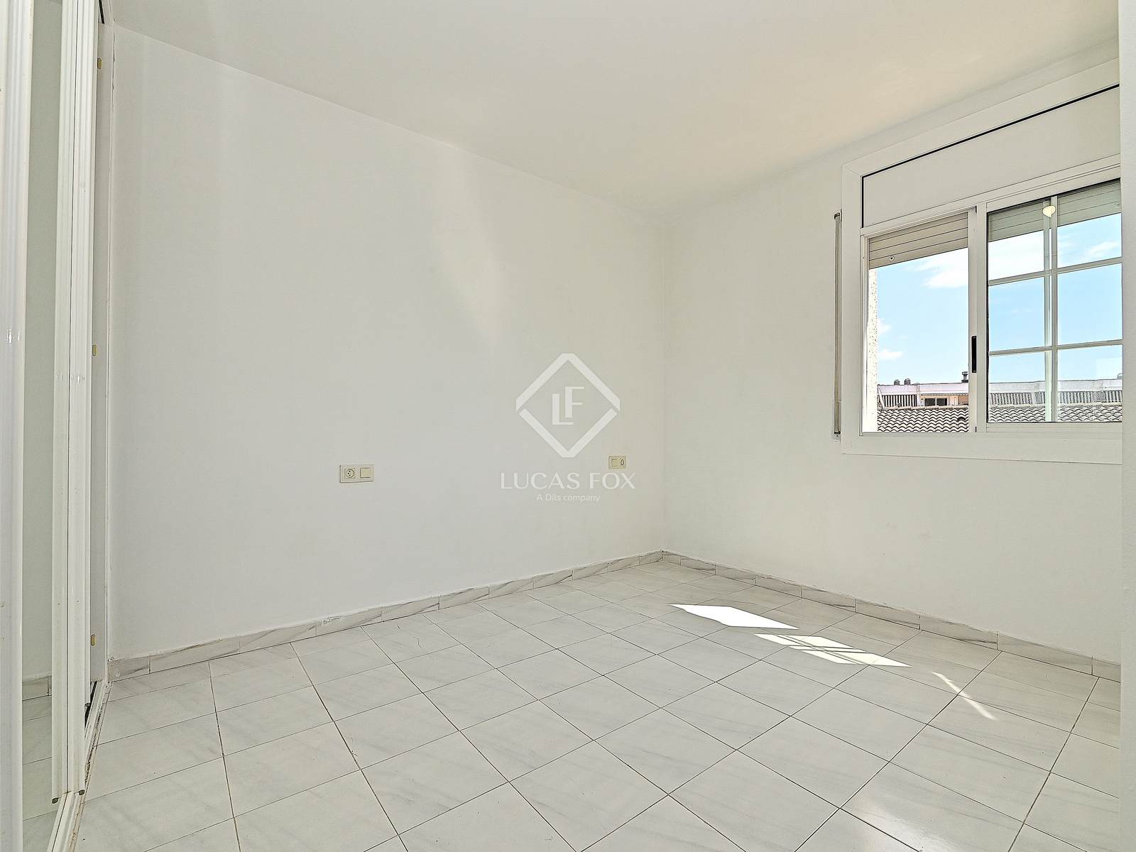 The property features three bedrooms, one of which access directly onto an exterior balcony. It has a full bathroom and a bright living-dining room with large windows on both sides, as well as a fireplace that provides warmth in winter. The main room also has air conditioning. The kitchen is separate and functional.