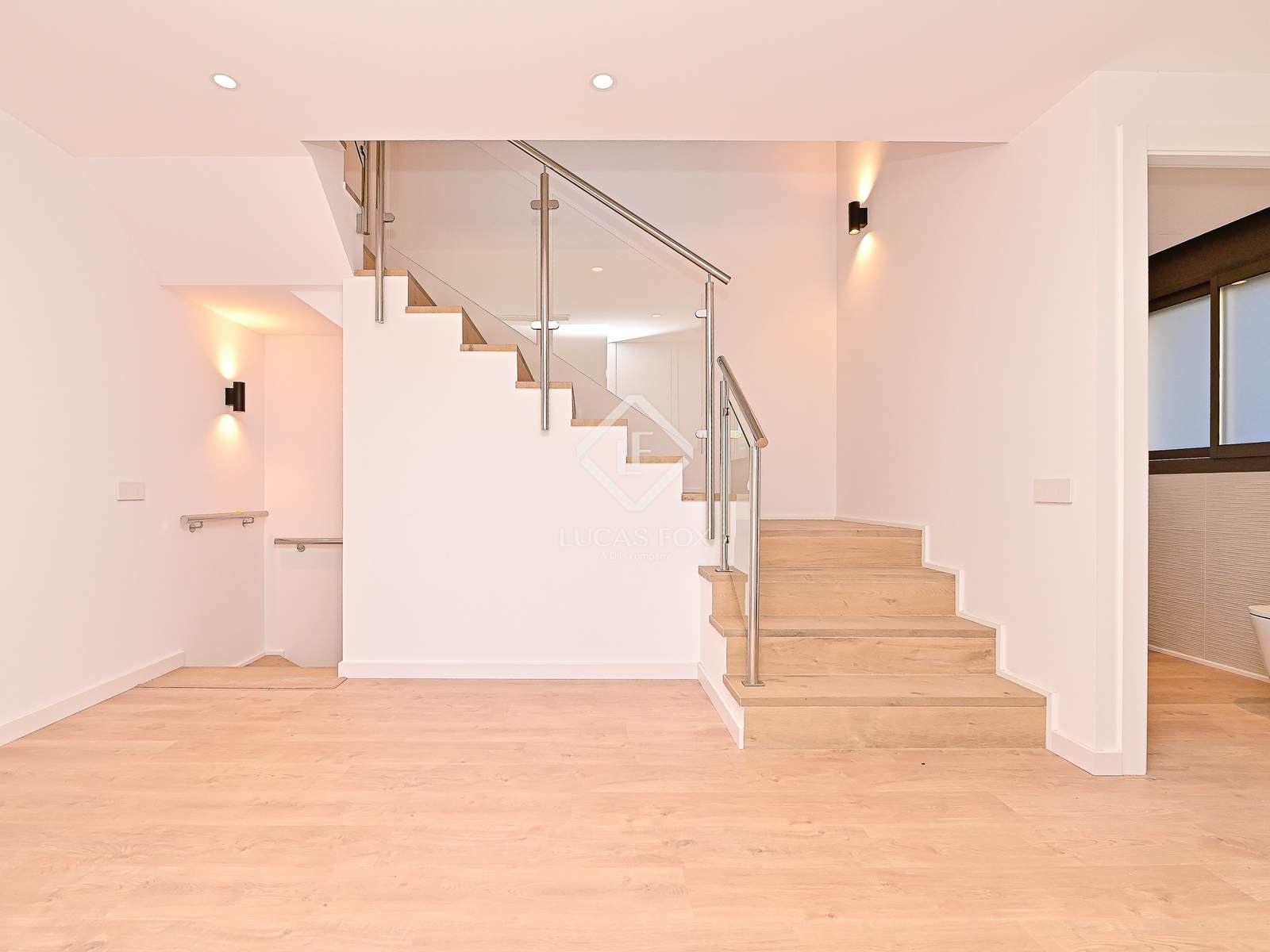 It boasts high-quality features such as an A+ energy aerothermics heating system and pre-installation for solar panels for efficient and sustainable energy performance. It also includes advanced home automation for controlling temperature, blinds, lighting, and video intercom via mobile phone, as well as LED lighting throughout and built-in wardrobes in all property . The open-plan kitchen flows seamlessly into the day area and is equipped with high-end Bosch appliances , Nolte Küchen kitchen cabinetry, and a central island clad in marble.