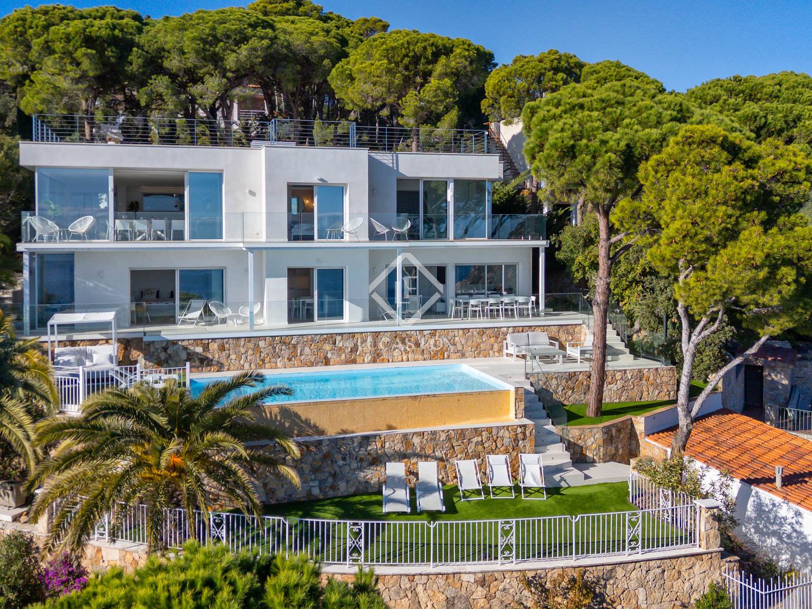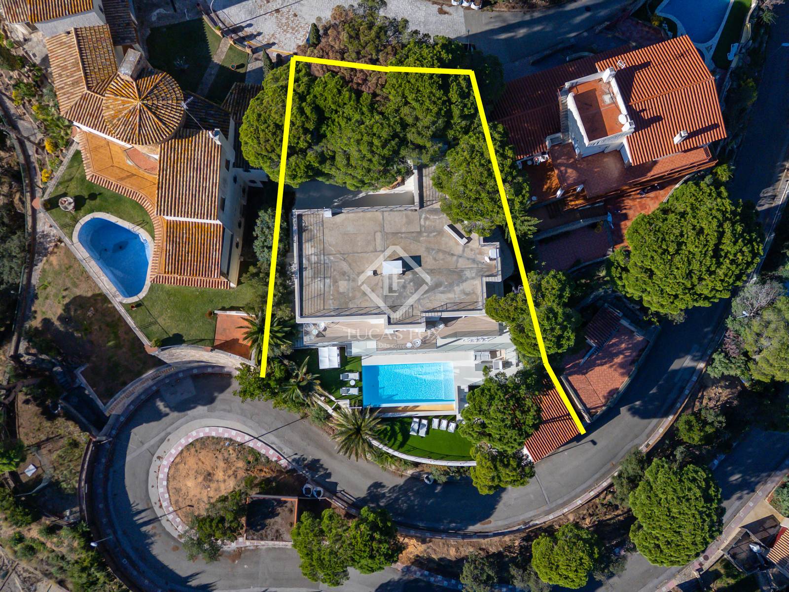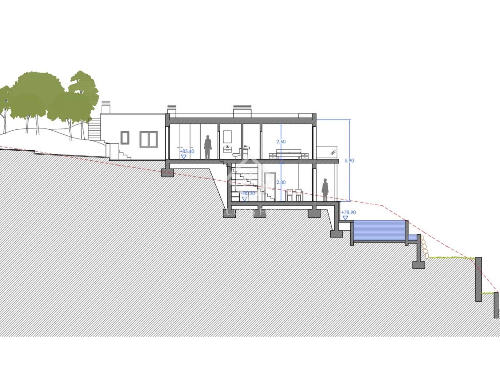 It is situated in a unique setting on a 948m2 plot where you can walk to the beach, known for its crystal-clear coves, with the possibility of mooring your boat. The villa , with its southeast orientation, comprises 680m2 and is divided into two floors.