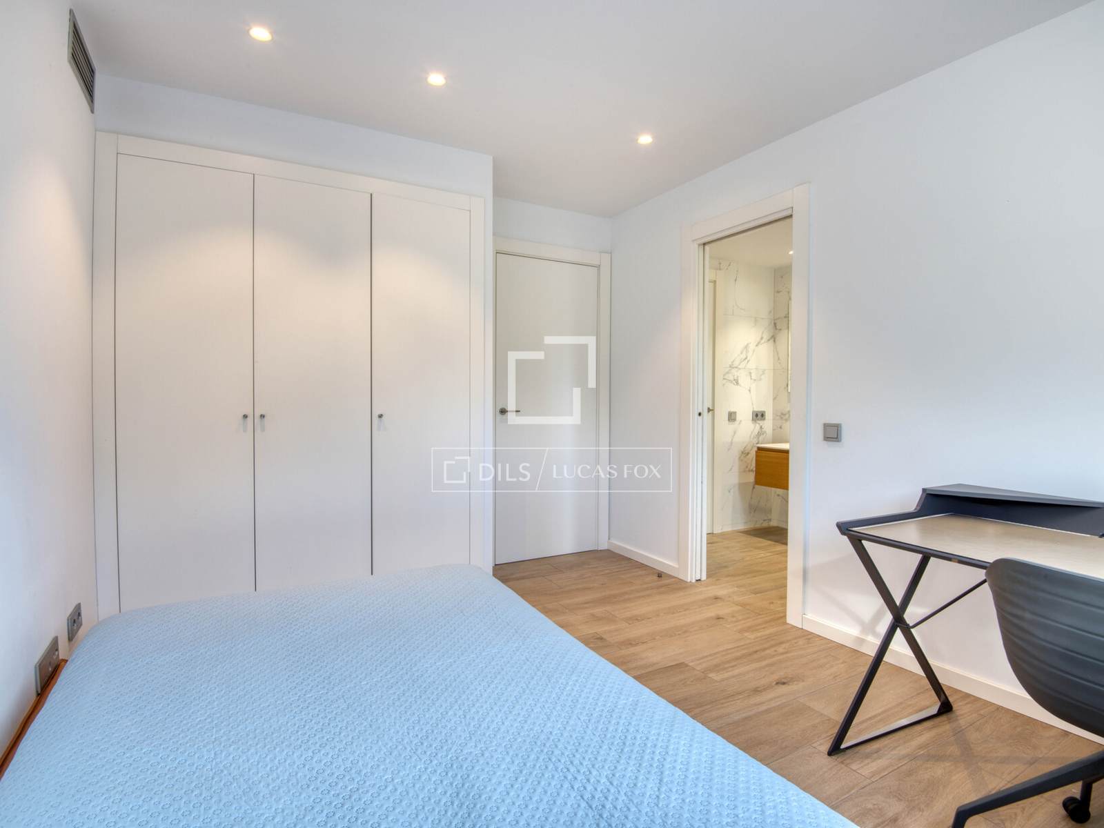 On the ground floor, there is a spacious and bright living-dining room with a fireplace, a fully equipped designer kitchen with De Dietrich appliances , Porcelanosa ceramic countertops, and a central island. This floor also houses two bedrooms and two complete bathrooms , one of which includes a dressing room and en-private bathroom.