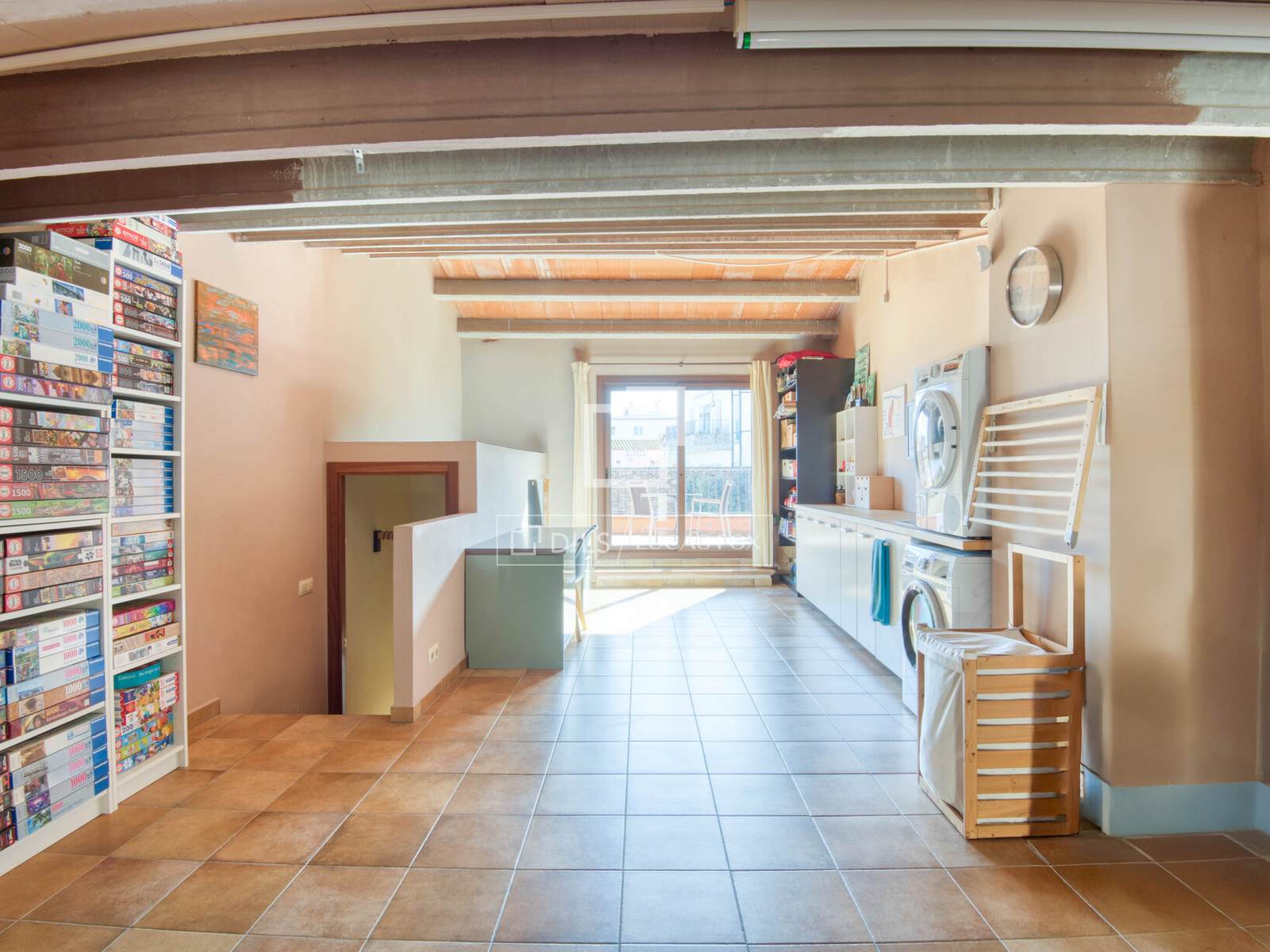 On the second floor there is an open-plan room that currently houses the machinery of the aerothermics system —which guarantees energy efficiency and comfort throughout the property and which leads to a private terrace, ideal as a multipurpose space, whether for rest, outdoor activities or even to develop a leisure space with views of the urban environment.