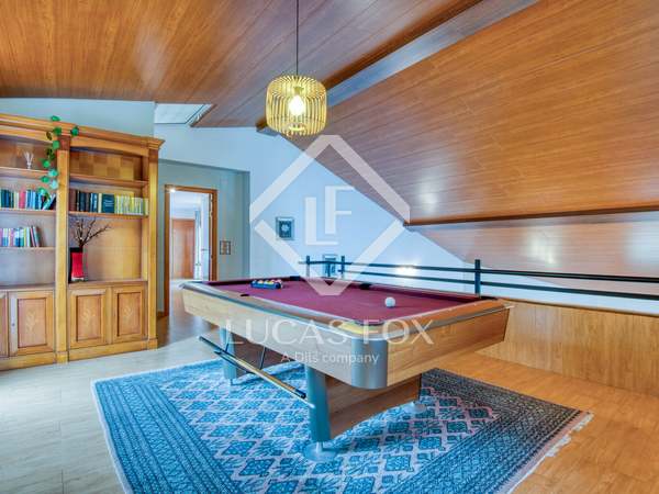The ground floor has a large and elegant entrance hall, with different environments, with a dome on the ceiling and a monumental Guatemalan marble staircase. Next, there is a fantastic living-dining room with fireplace and access to the garden with private pool and a full kitchen. In addition, it offers two large double bedrooms with private bathrooms, a utility room.