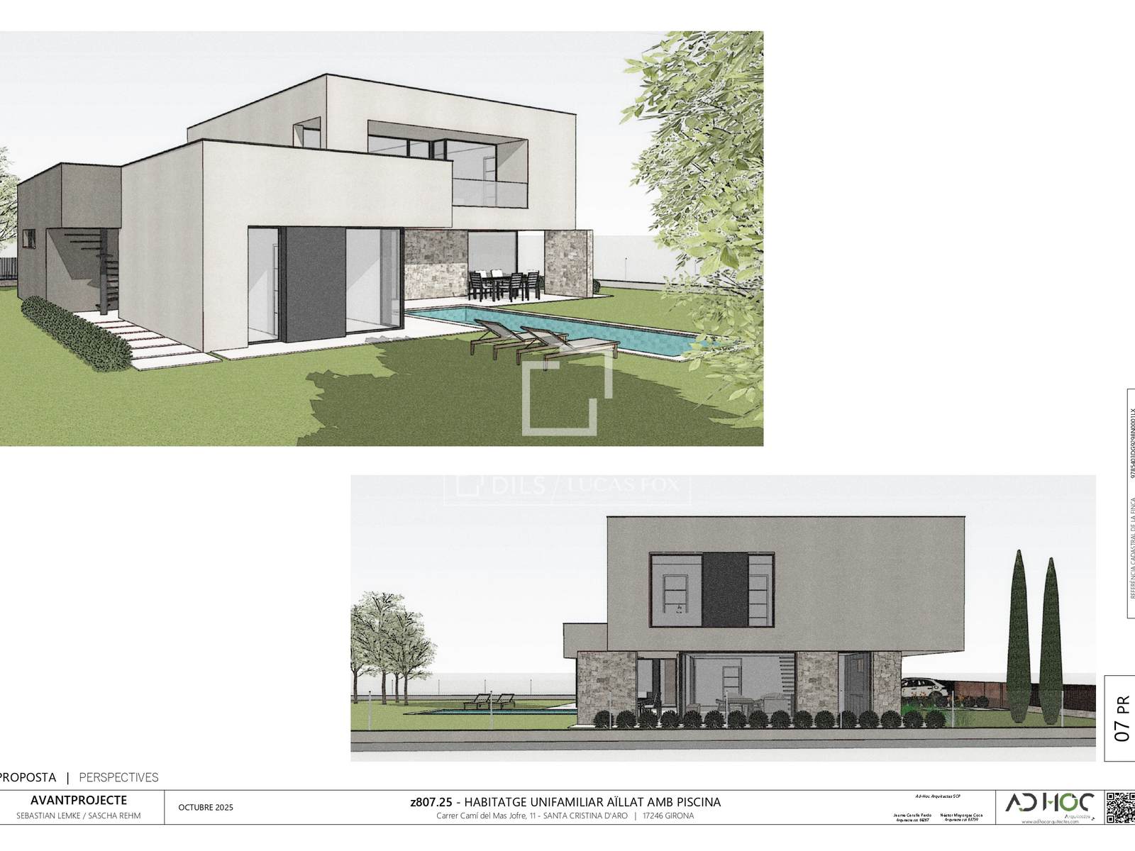 Villa of 307 m² on a flat plot of 1,009 m², with 4 bedrooms, pool and garden with a customizable project with A+ efficiency, aerothermics and solar panels for sale next to the golf course of Santa Cristina d'Aro, Costa Brava.