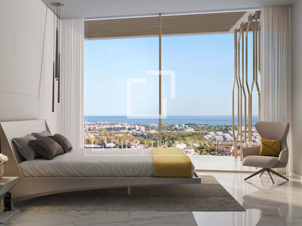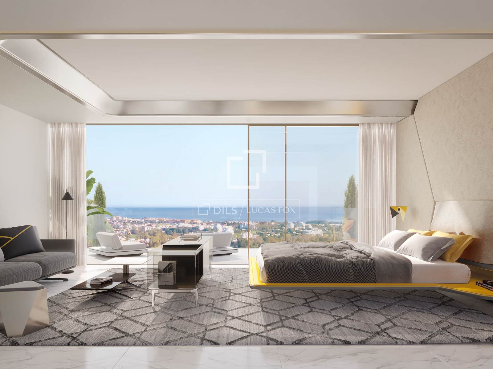 From its panoramic terraces, the landscape unfolds like a canvas: the blue of the Mediterranean, the green of the Atalaya, El Paraíso, and Los Flamingos golf courses, and the silhouette of the Sierra Bermeja mountains in the distance. Every sunrise and sunset seems tailor-made for this villa.
