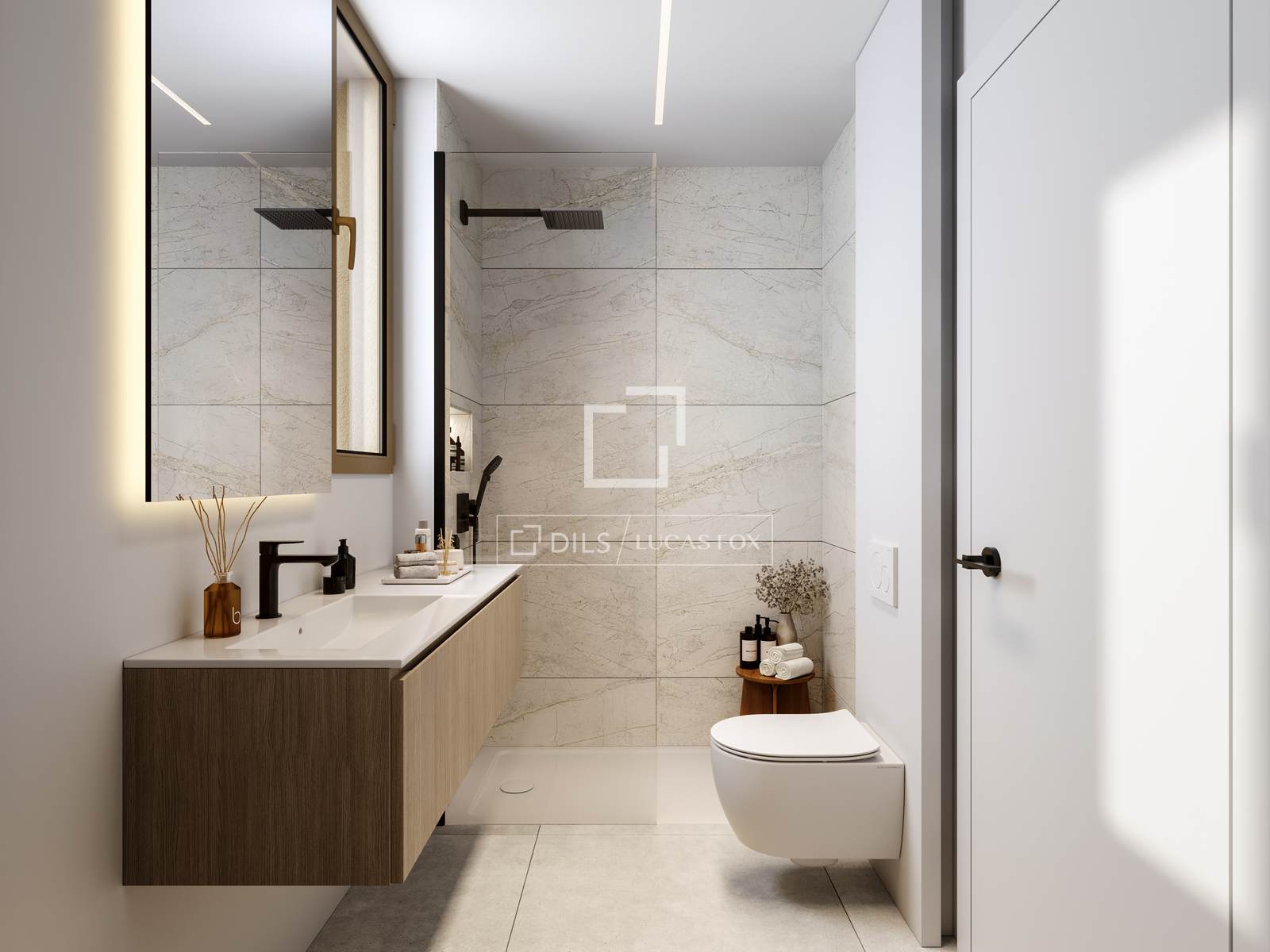 Kitchens are fully fitted and equipped with integrated appliances, designed as functional yet elegant spaces that connect naturally with dining and living areas. Bathrooms feature contemporary fittings, walk-in showers, and quality sanitary ware, offering comfort without unnecessary excess.