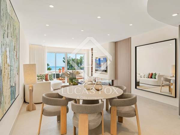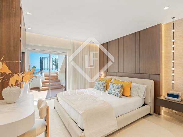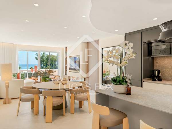 From the moment we step inside, we are welcomed by an atmosphere of refined luxury. The open-plan living and dining area is bathed in natural light, enhanced by warm, neutral tones and high-end finishes that mirror the beauty of the surrounding coastline. The spacious terrace, just off the living room, provides breathtaking panoramic views of the Mediterranean, an ideal setting for al fresco dining, entertaining, or simply unwinding to the rhythm of the sea.