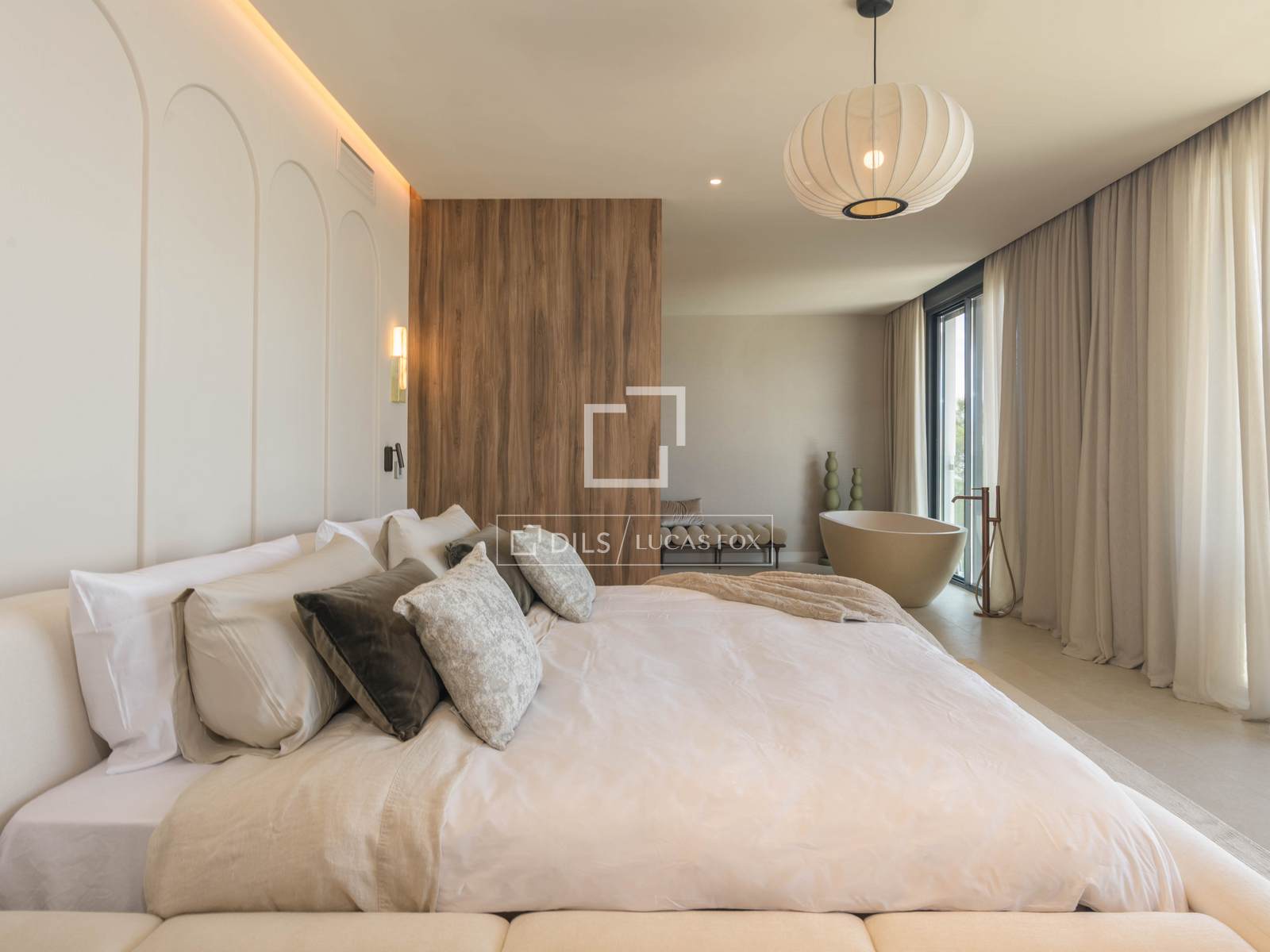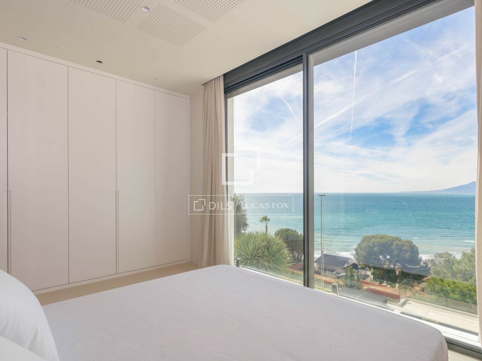En la planta superior, el dormitorio principal se erige como un auténtico santuario privado: un espacio impresionante con un magnífico baño en suite, un gran walk-in closet y una elegante bañera exenta situada frente a un ventanal de suelo a techo con vistas panorámicas al mar, creando una experiencia única de luz y paisaje. En esta planta se encuentran además dos dormitorios adicionales, también con vistas abiertas al mar, todos ellos extraordinariamente espaciosos.