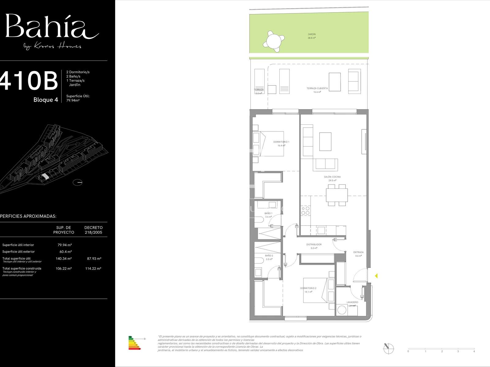 Bahia consists of 108 homes, spread throughout 6 separate contemporary-style white blocks with a sunny aspect. This particular property has a liveable surface area of 80 m² and has a total of 21 m² of private terrace. The layout of the apartment consists of an open-plan living-dining room and kitchen, two bedrooms and two bathrooms. Floor-to-ceiling windows maximise the views and the natural light, bringing the sun and glorious Costa del Sol scenery into the home every day.