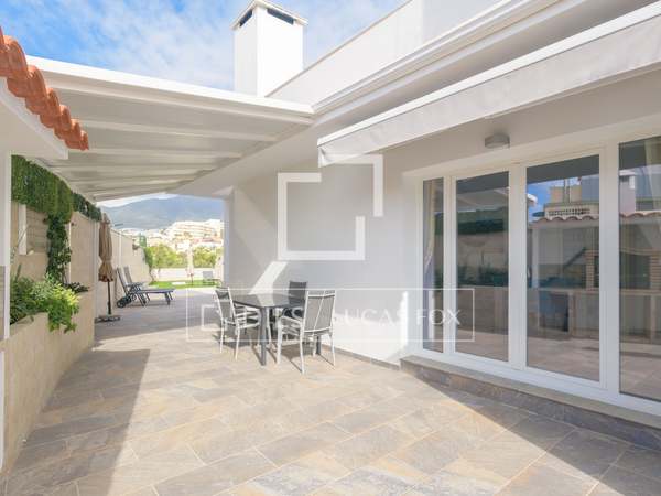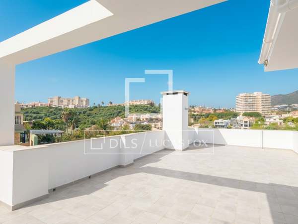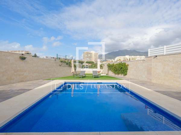 Lucas Fox presents this magnificent corner townhouse in one of the most exclusive areas of Benalmádena, in a gated development with a communal pool, paddle tennis court, and manicured gardens. Its elevated position offers unobstructed sea views.