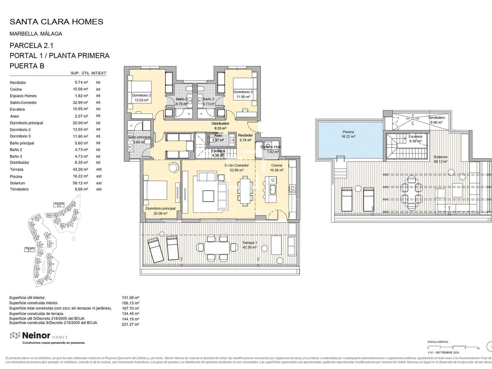 The building has been constructed to the highest standards. The foundation was laid according to the geotechnical study, the reinforced concrete structure complies with all current regulations, and the flat roofs incorporate a double layer of asphalt shingles and thermal insulation to guarantee efficiency and waterproofing. The exterior finishes combine plaster, ceramic cladding, and wood-textured composite elements that enhance the overall architecture.