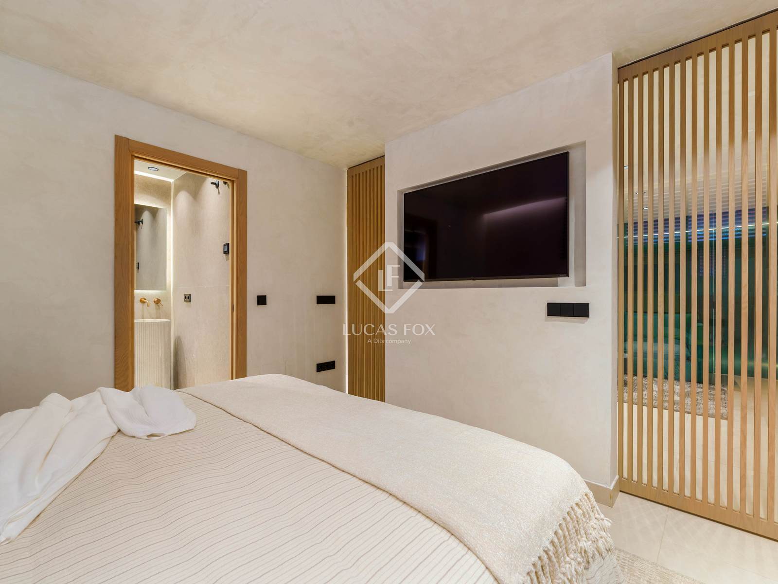 Upstairs, the spacious bedrooms include a luxurious main suite with walk-in wardrobe and designer en-suite bathroom. Several terraces provide serene spaces for outdoor lounging, while the rooftop solarium offers a built-in barbecue, jacuzzi, and panoramic views, an ideal setting for entertaining.