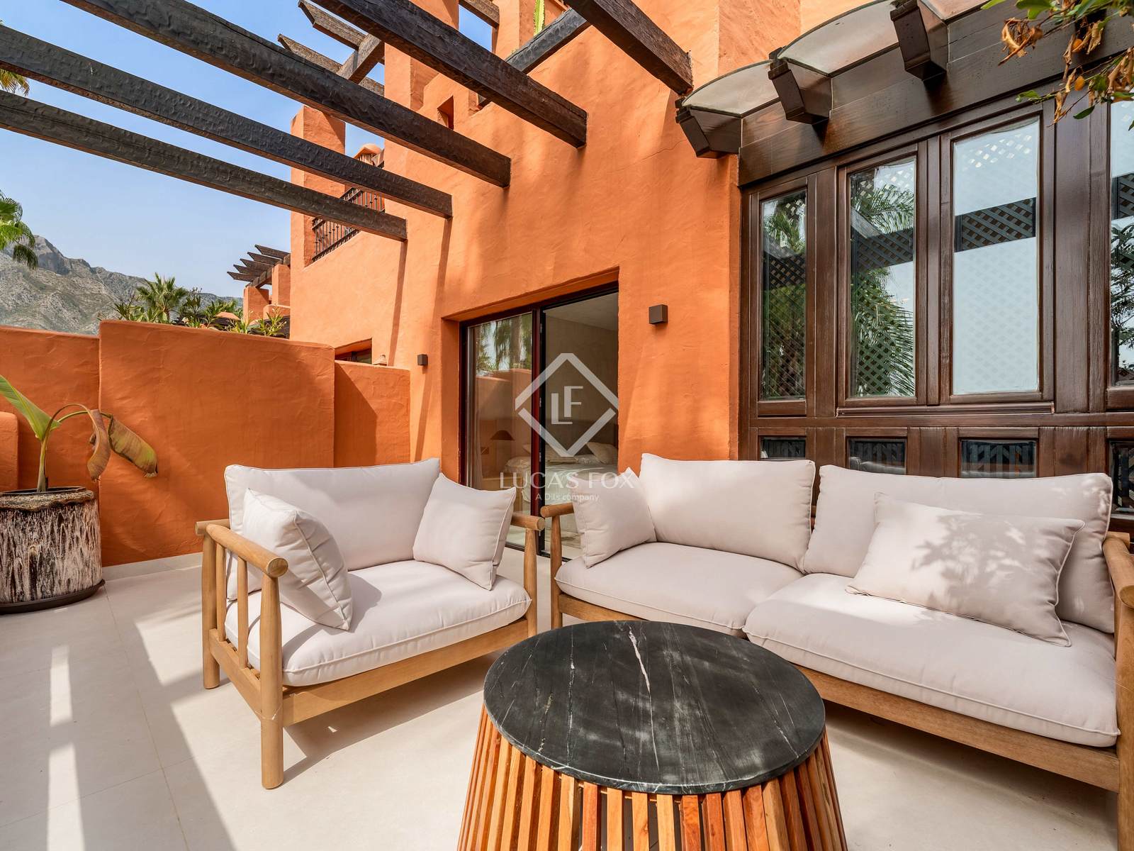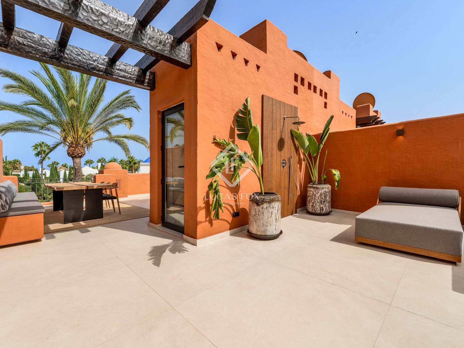 With 217 m² of interior space and 134 m² of terraces, this home seamlessly blends contemporary design with timeless elegance. It is set within a secure gated community with a communal pool and garden just minutes from the beach, Marbella Club, Puente Romano and Puerto Banús