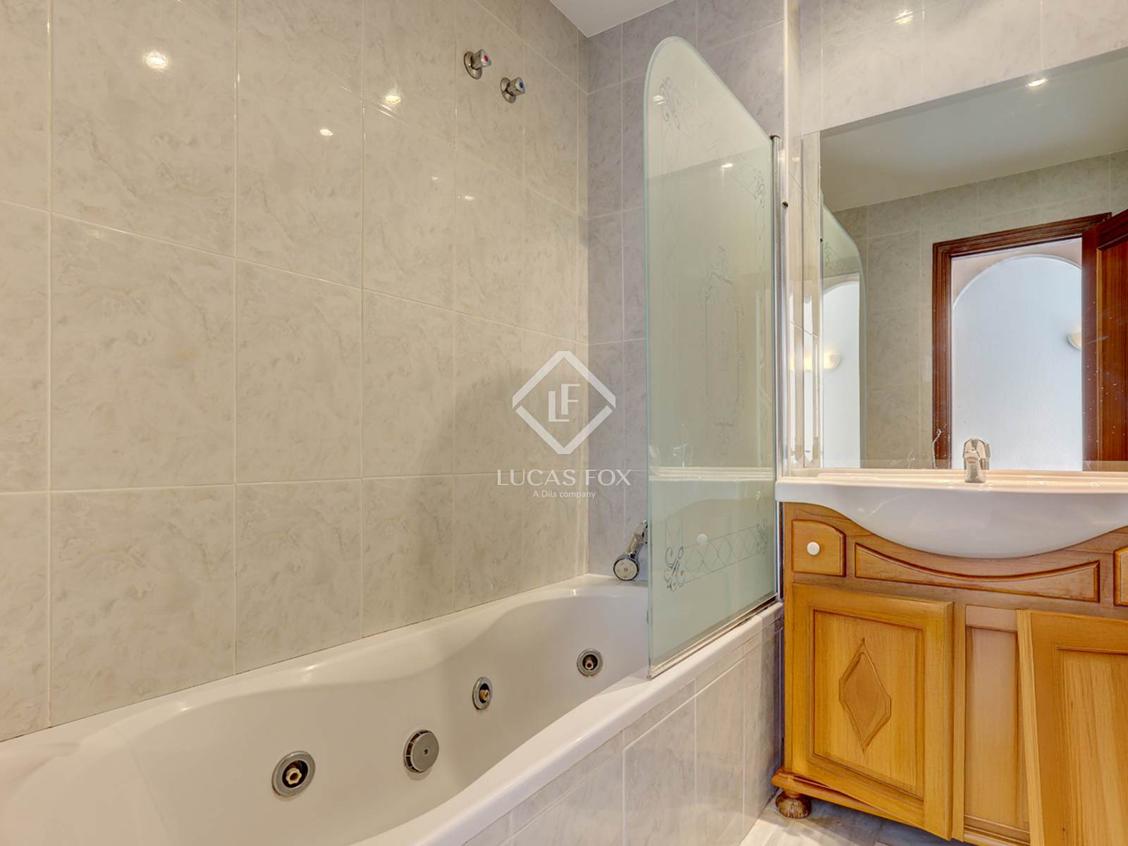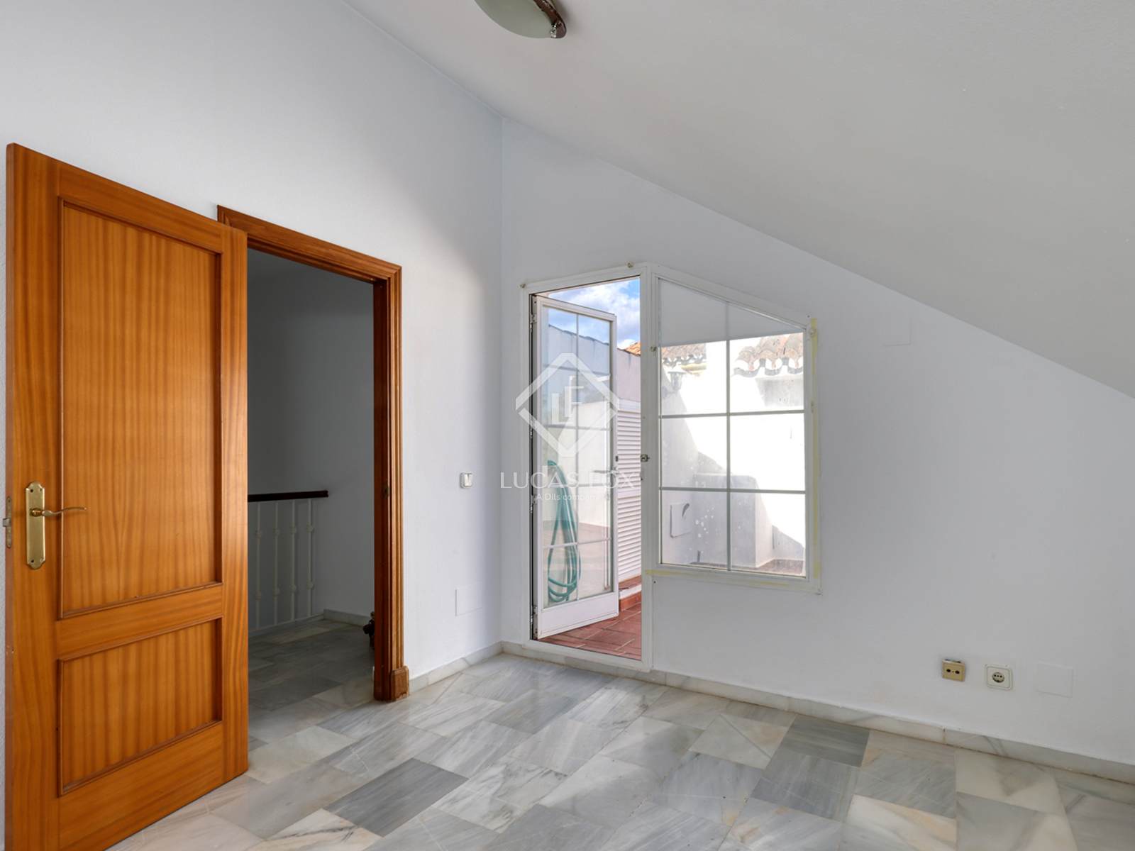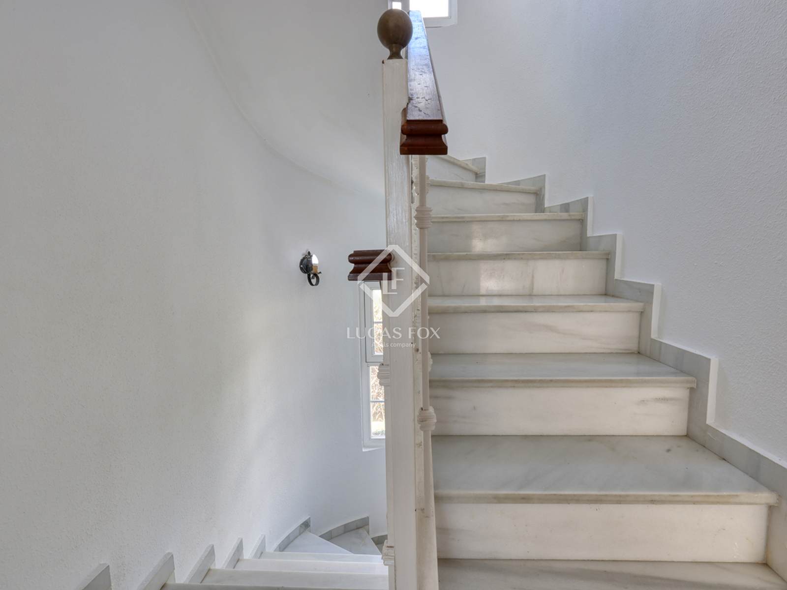 On the upper floor is the sleeping area, divided into three bedrooms. The main bedroom includes an en-suite bathroom and a dressing room, while the other two bedrooms share an additional bathroom. From this level, you access the top floor, where an attic-style room provides the ideal space for a small living room, playroom or multipurpose area. This room leads to the rooftop terrace, which offers unique sea views.