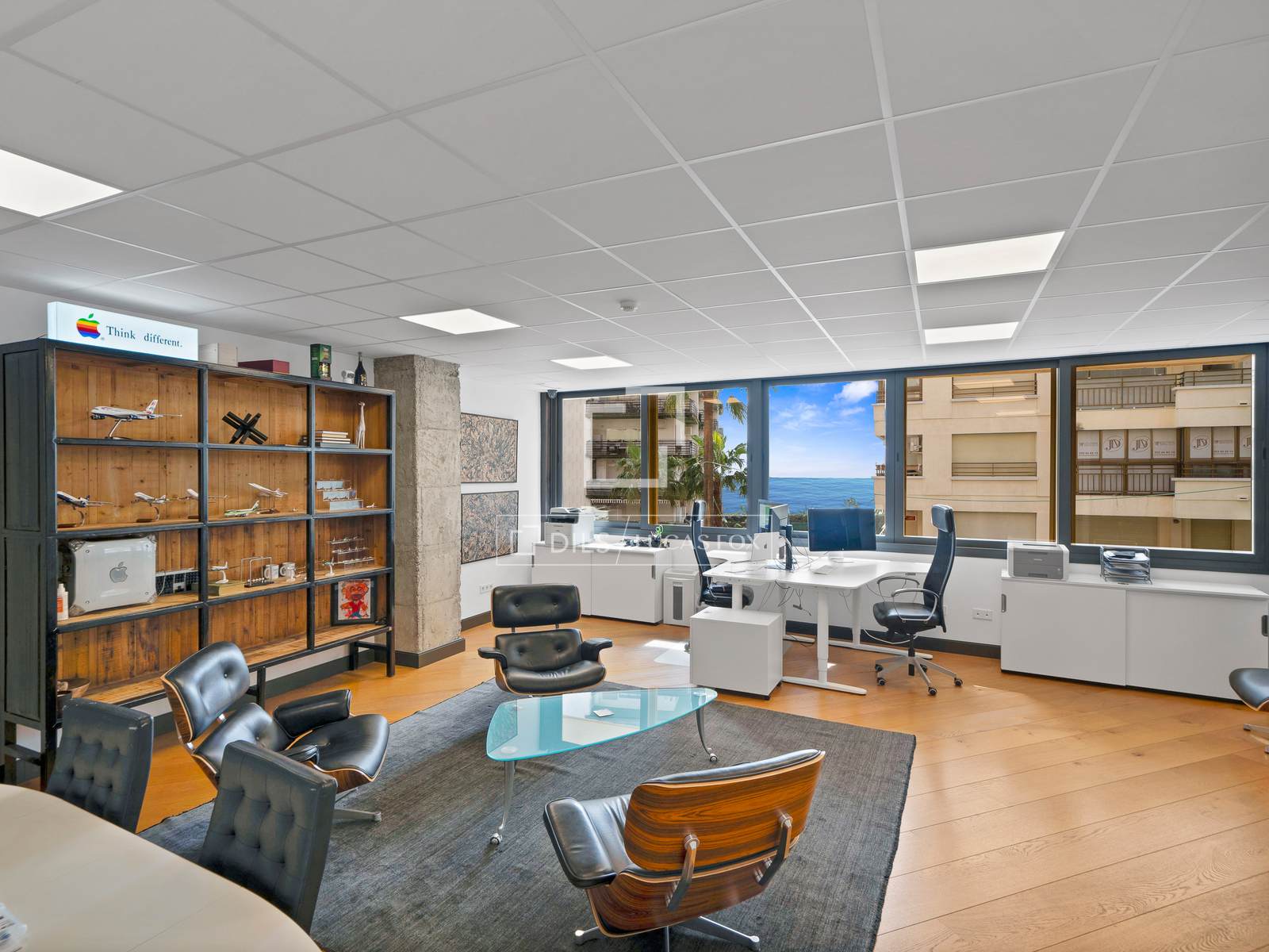 7 spacious offices, including the main one of 40 m², meeting room for 8 people, large equipped kitchen, 2 bathrooms, panoramic views of the sea and Salvador Dalí Square, soundproofing, maximum natural light, luxury environment with nearby amenities such as hotels, restaurants, shops, government offices