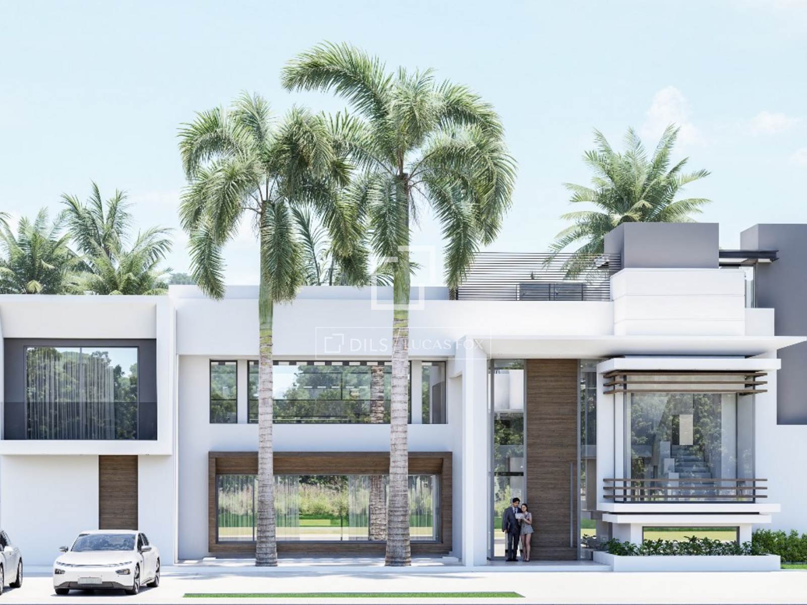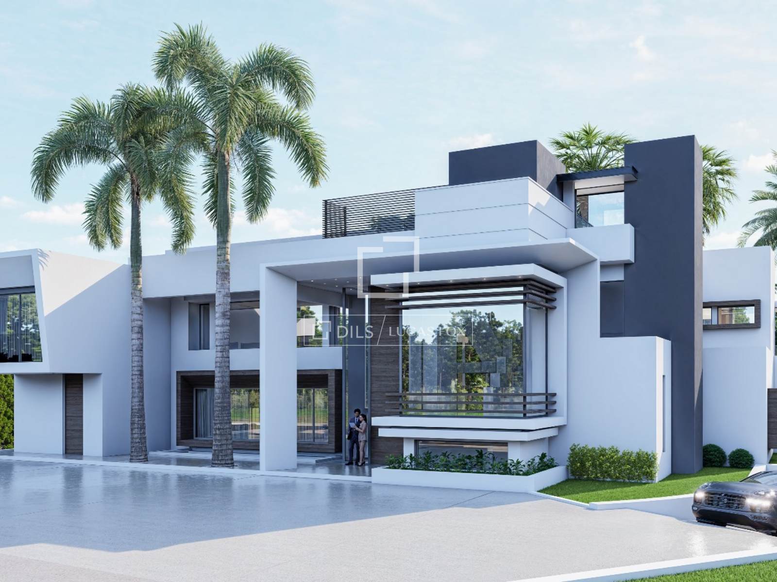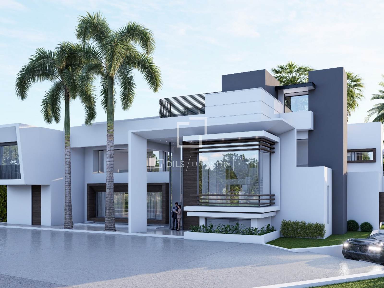 Exclusive villa under construction in Guadalmina Baja, with several floors connected by an elevator, an infinity pool, a garage for 10 vehicles, and premium finishes. Minutes from San Pedro, golf courses, and the Laude International School.
