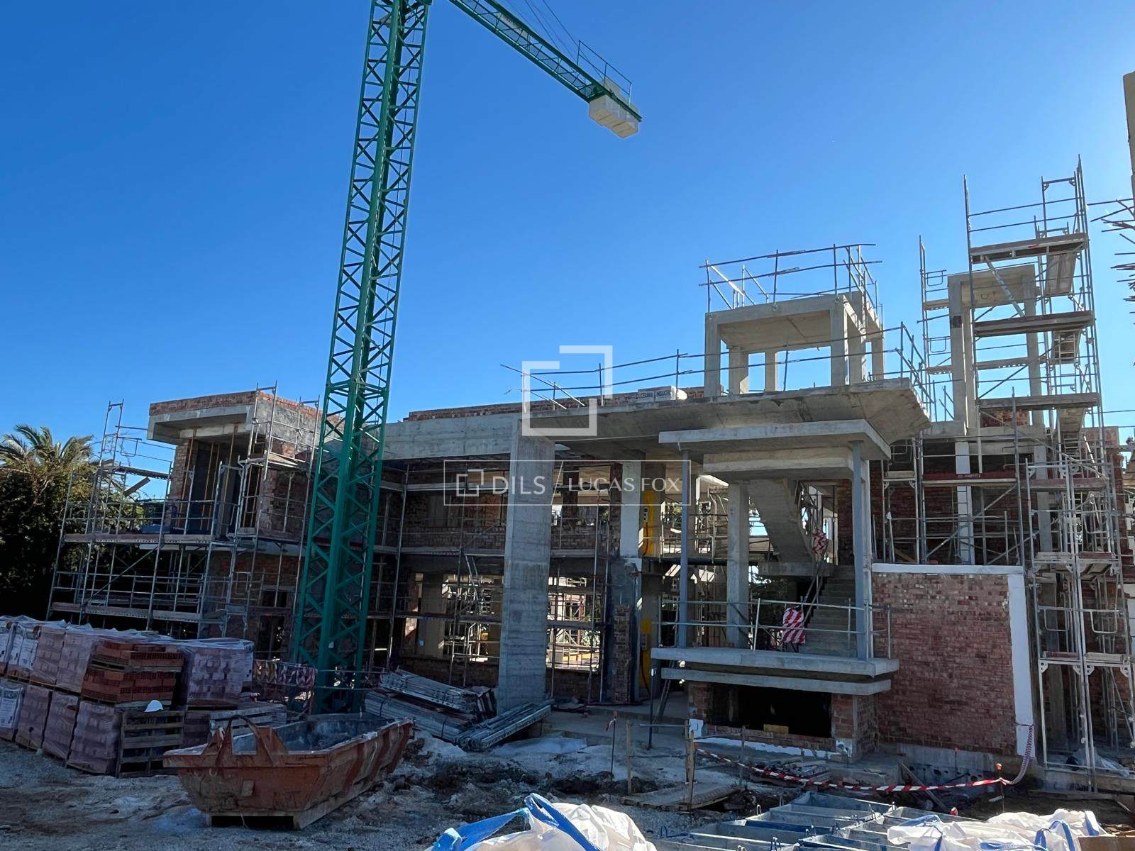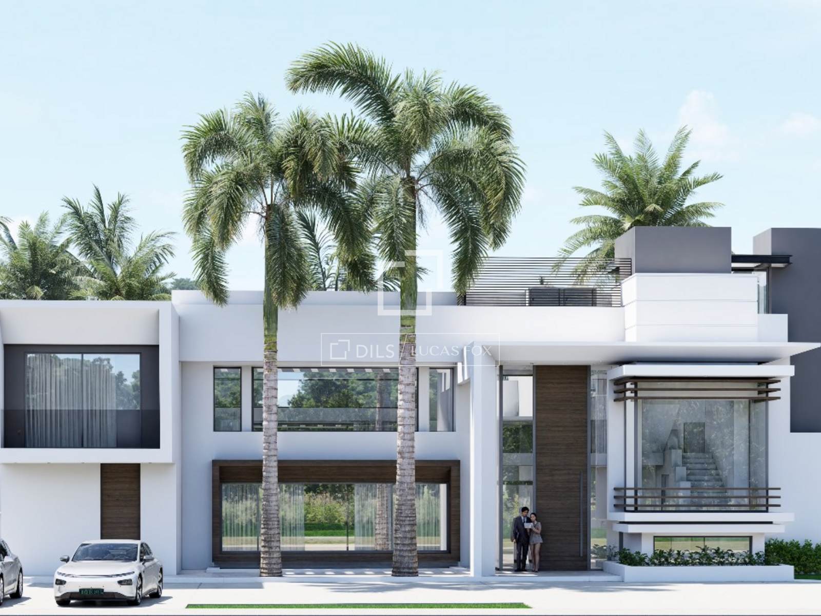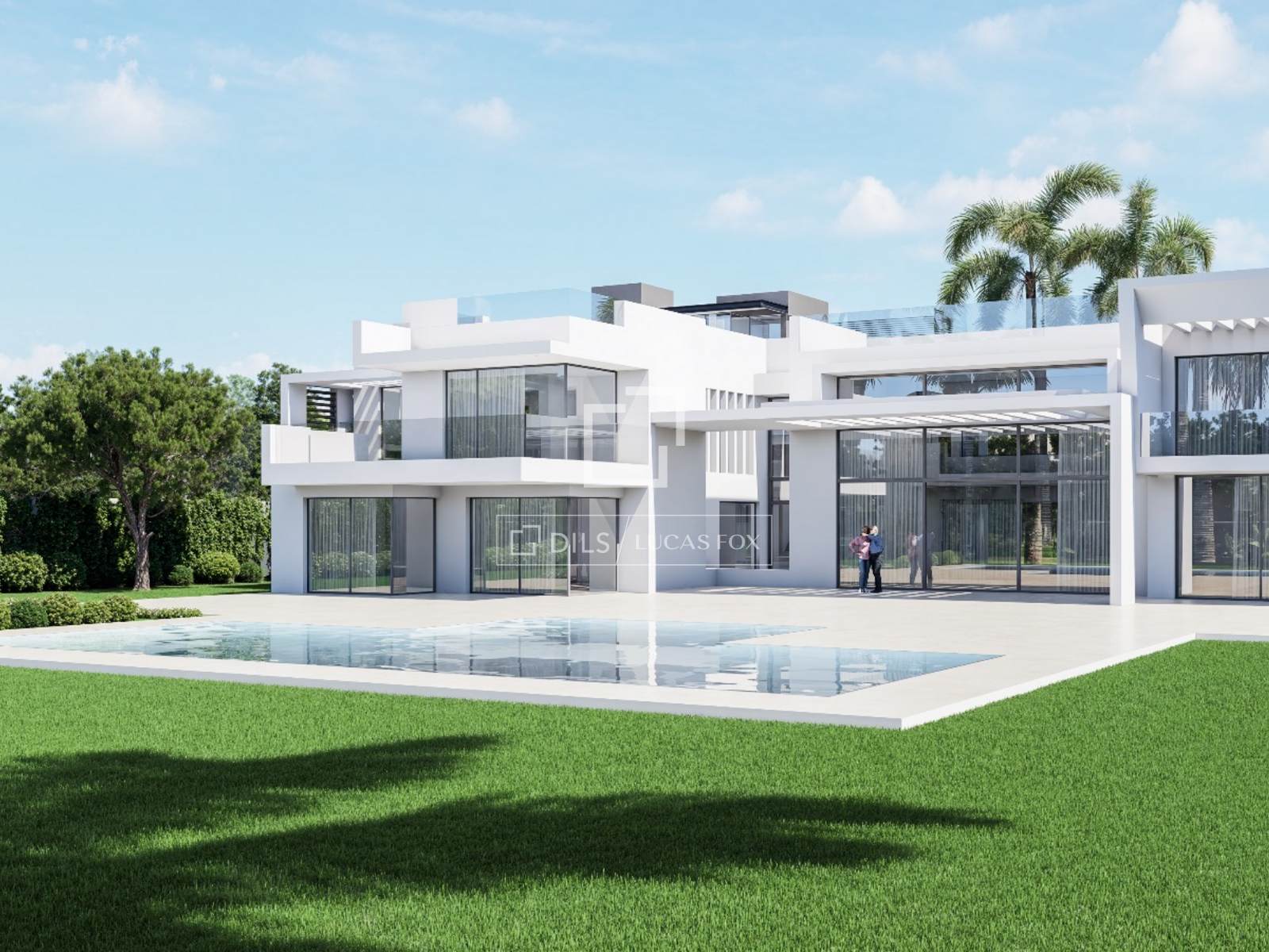 Exclusive villa under construction in Guadalmina Baja, with several floors connected by an elevator, an infinity pool, a garage for 10 vehicles, and premium finishes. Minutes from San Pedro, golf courses, and the Laude International School.