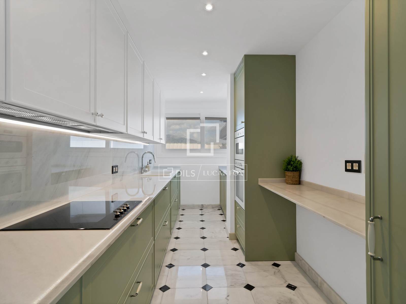 Separate kitchen, completely renovated and equipped, with a modern layout and a large work area.