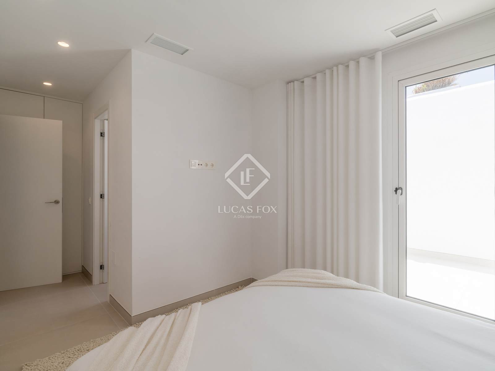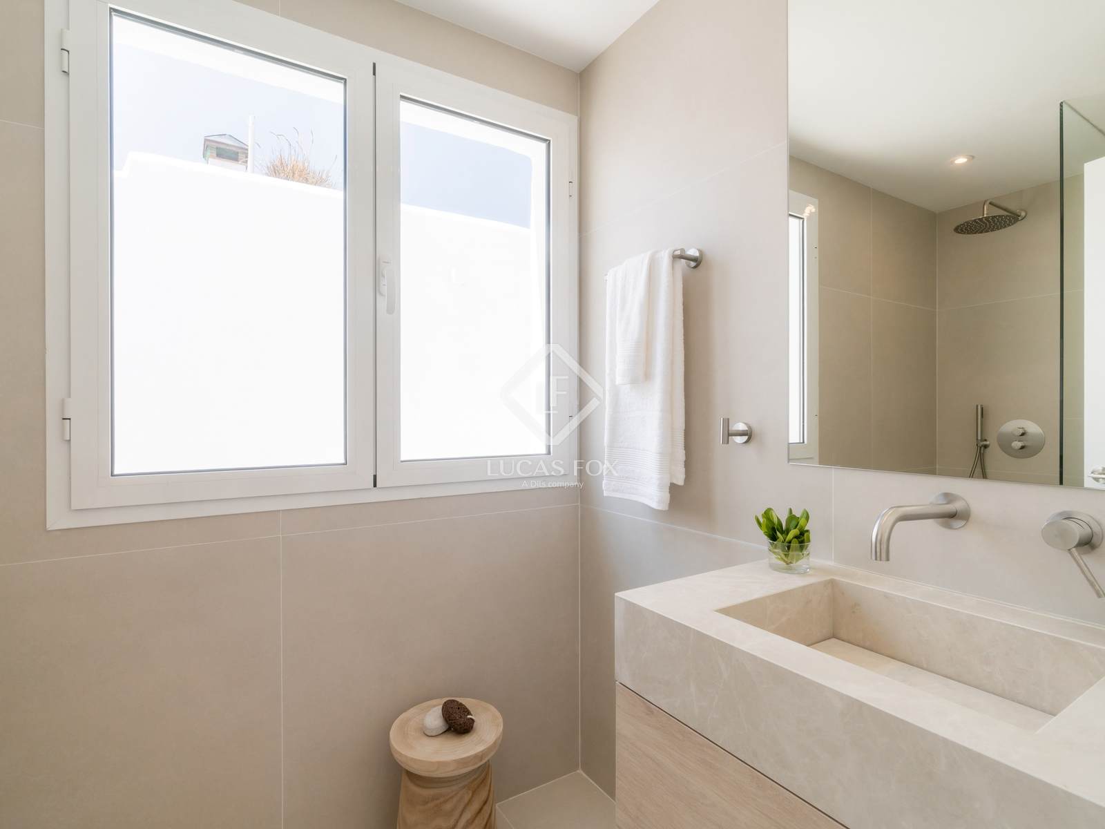 The highlight of this home awaits upstairs: a magnificent main suite occupying the entire top floor. Complete with a stylish en-suite bathroom, dressing space, and its own private terrace, this sanctuary extends to a spectacular rooftop patio. Here, we find a jacuzzi and built-in barbecue, offering the ultimate setting to unwind, entertain guests, or admire panoramic views of the sea and surrounding landscape.