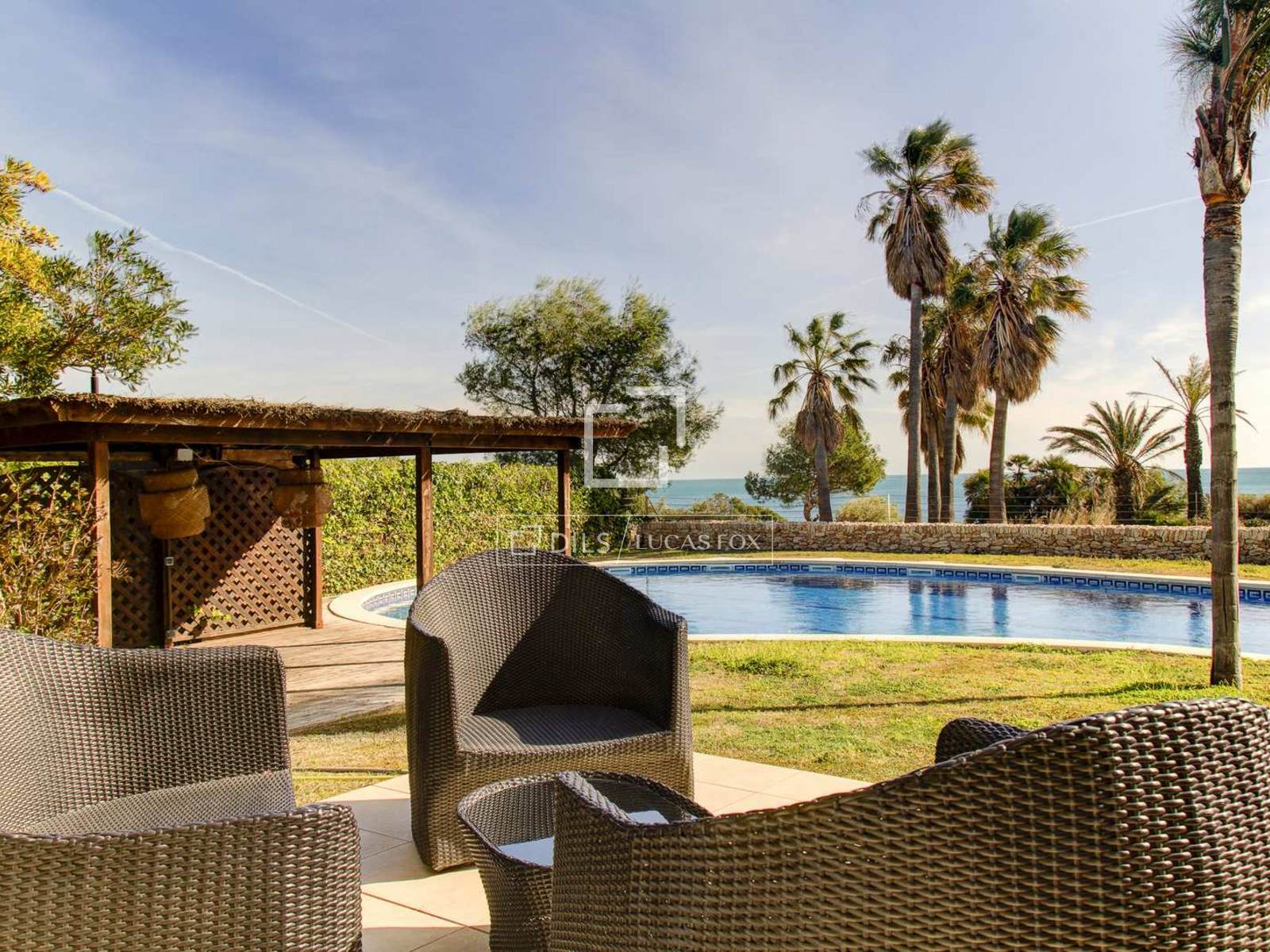 Fantastic villa of 565 m² located in the Les Tres Cales area, facing the sea and next to Cala Vidre, a few metres from other beaches and only 10 minutes from the centre of L'Ametlla de Mar, with all its services within reach. The house is situated on a plot of 996 m² that includes a front garden which is open to the sea with a large swimming pool surrounded by a lawn, a large terrace and a pergola and barbecue area. In addition, it has direct access to the ring road and the beach. There is another garden at the back, where the main entrance is located from the street.