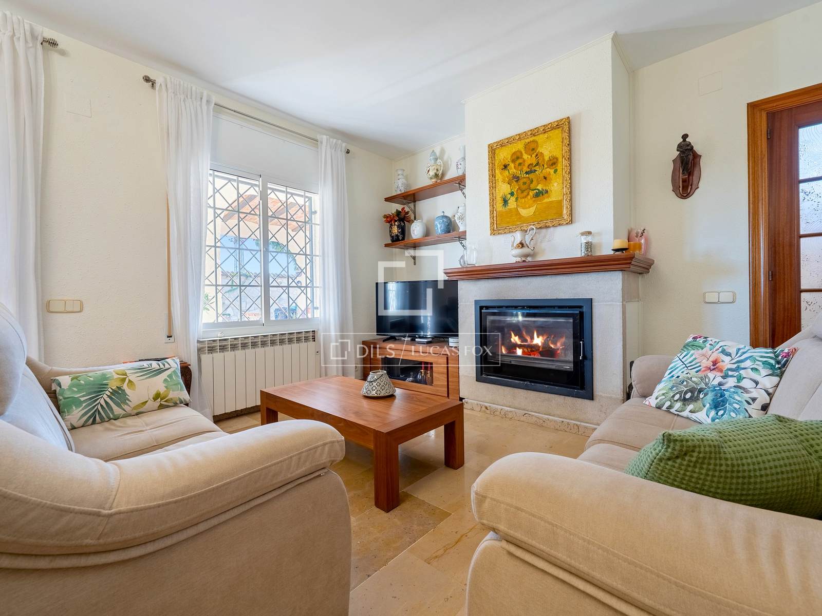 Inside, the property offers spacious and bright rooms with large windows that open directly onto the porch and garden. The living-dining room features a fireplace, providing warmth and comfort year-round, and also offers direct access to the terraces, reinforcing that pleasant connection with the exterior.
