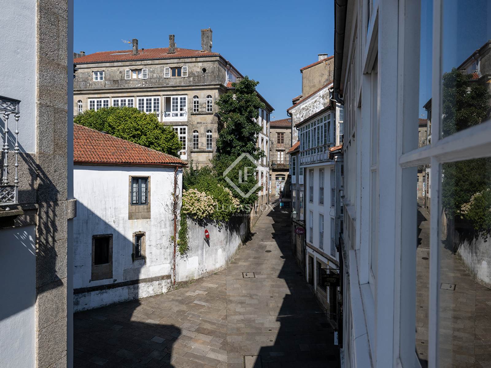 Steeped in history, this third floor apartment is found in one of the typical narrow streets of the old town of Santiago, Galicia's capital and destination of the well-known pilgrimage. It has been renovated to a high standard and looks out onto the cathedral from its gallery at the front.