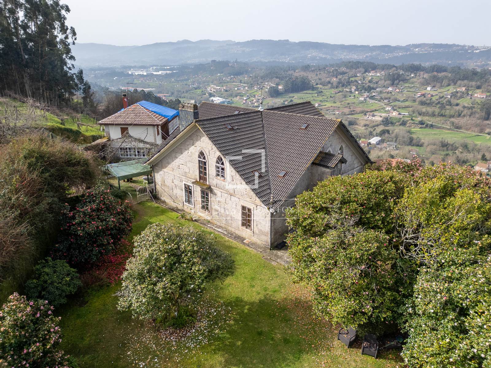In the hilltop valley of Louredo-Mos, we find this stunning estate offering 15 hectares of private agricultural land, four natural springs, and a short driving distance to the city centre of Vigo and the industrial area of O Porriño, in the region of Pontevedra.