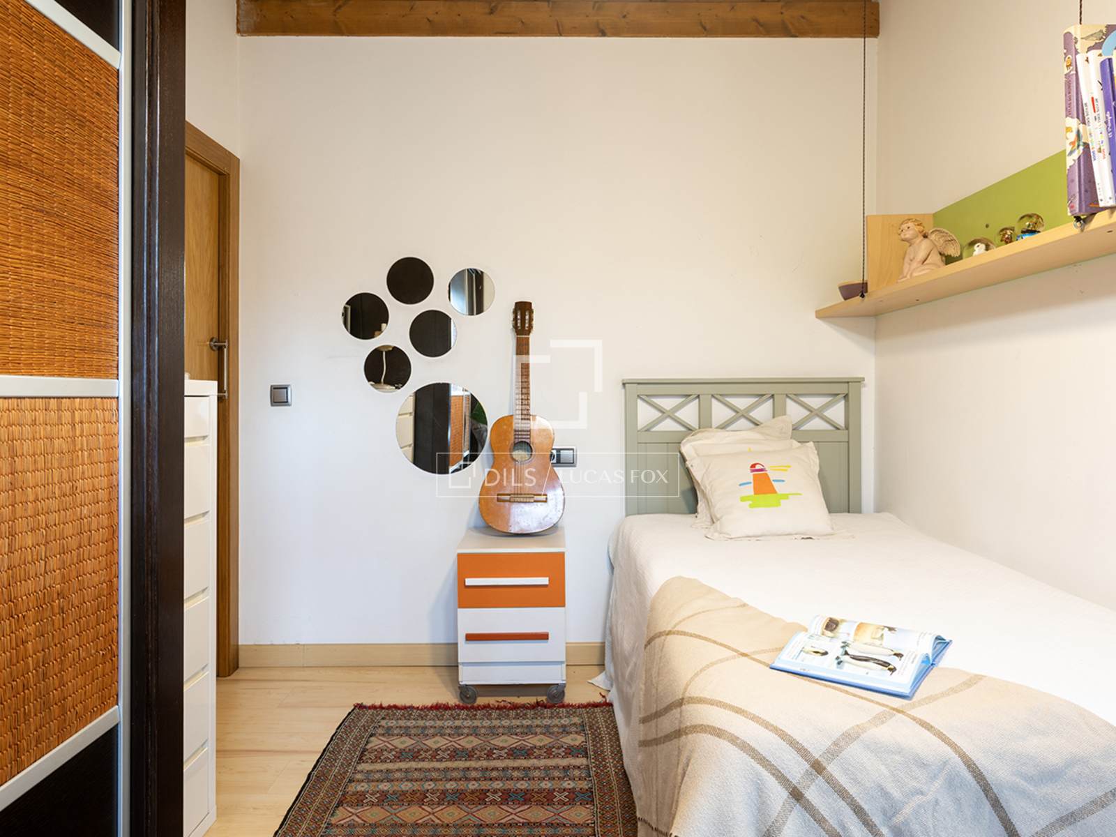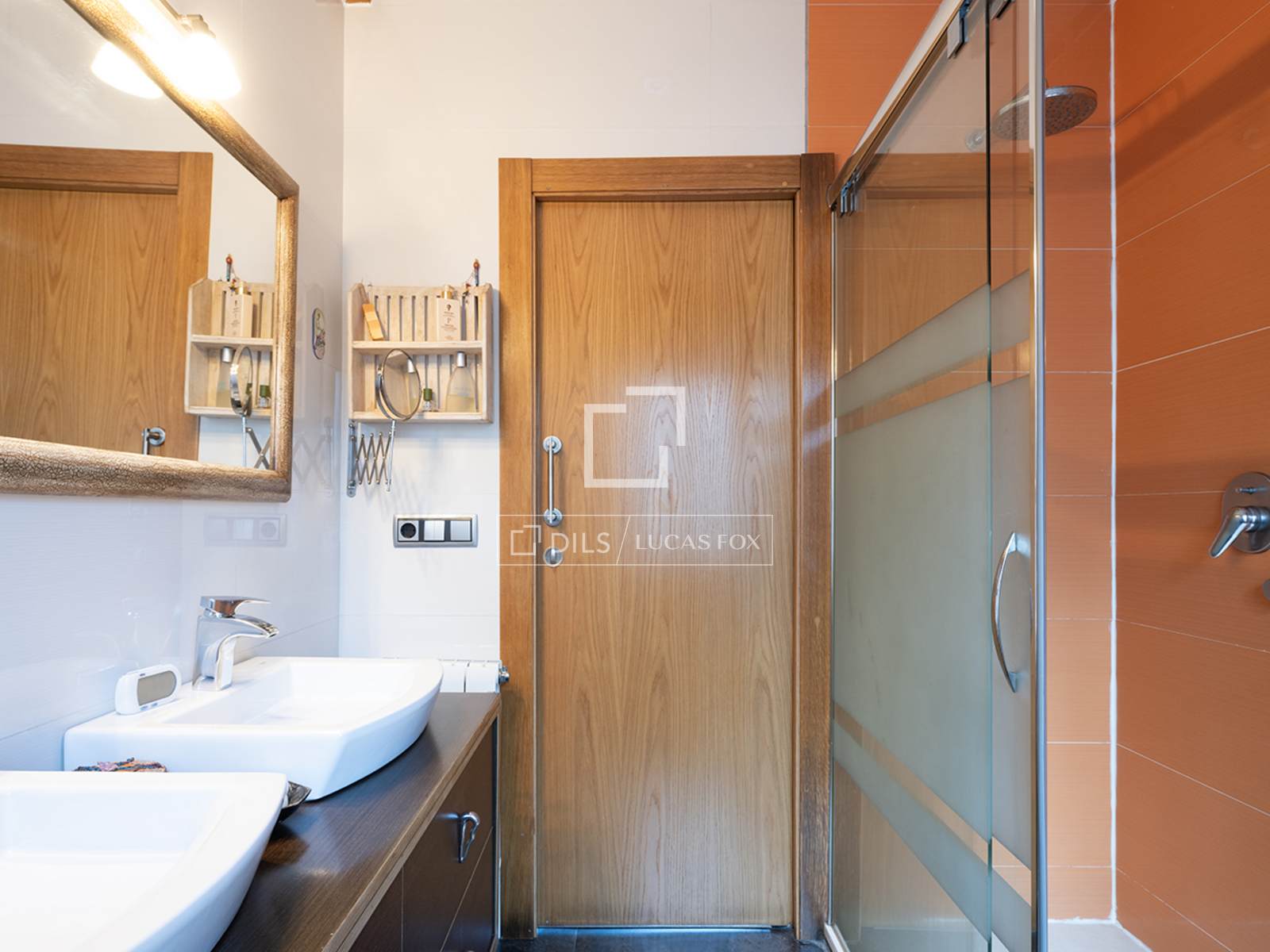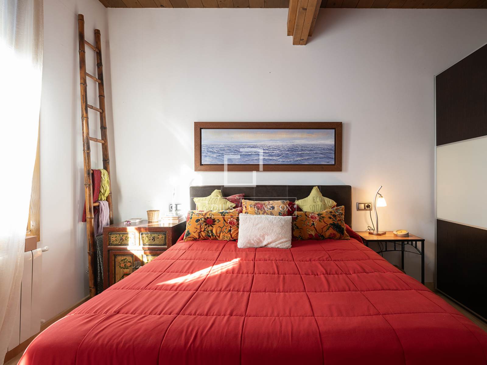 An external staircase also leads to the main floor, where we can go up to the first floor. Here we arrive at the sleeping area. This floor has two bedrooms and a shared bathroom. There is also a main bedroom with an en-suite bathroom and a space with a Velux-style window used as an office or reading area.